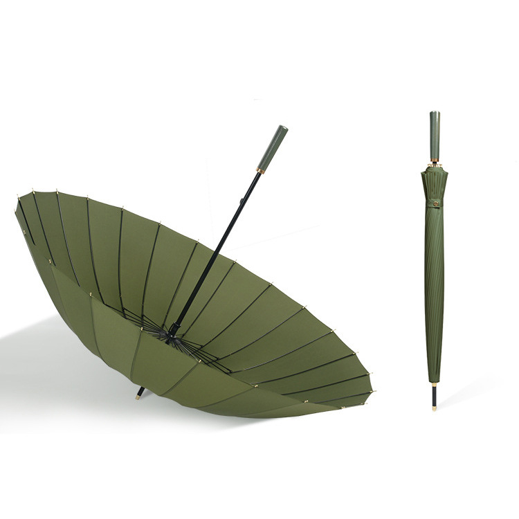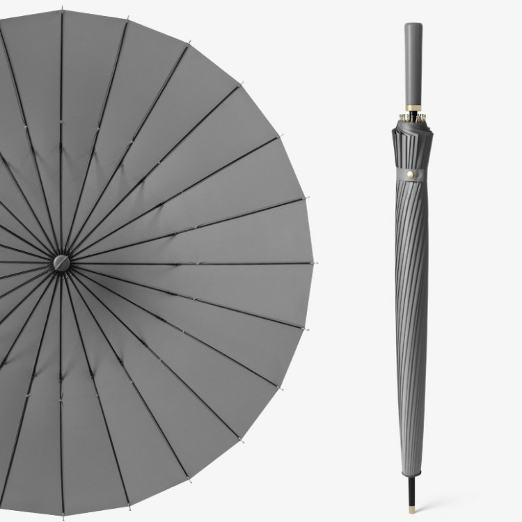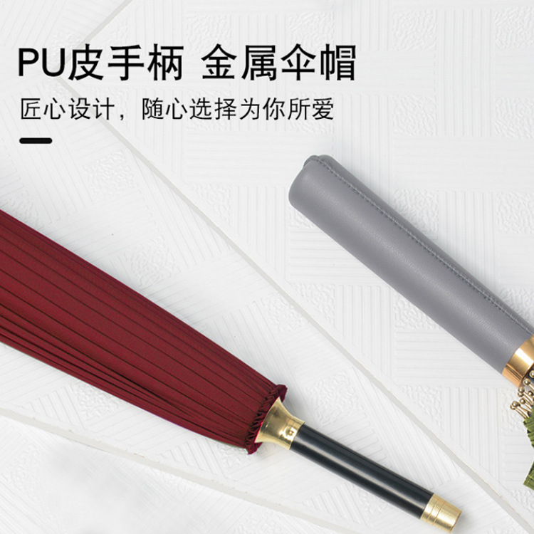 24骨皮柄直杆伞长柄高尔夫伞加大抗风纯色男女商务伞广告礼品雨伞