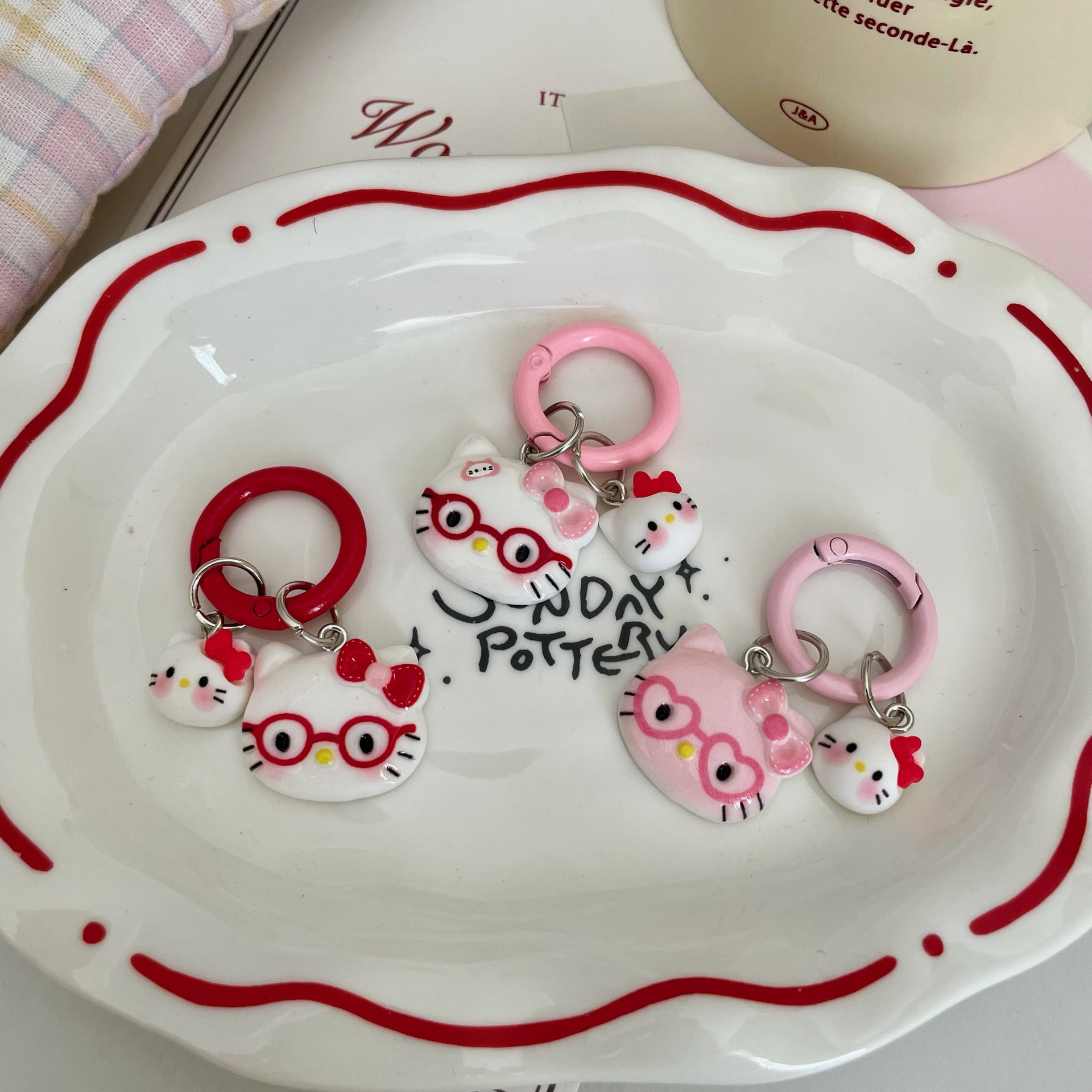 可爱眼镜小小猫圆圈扣少女kitty猫挂件包包钥匙扣挂饰头饰配饰