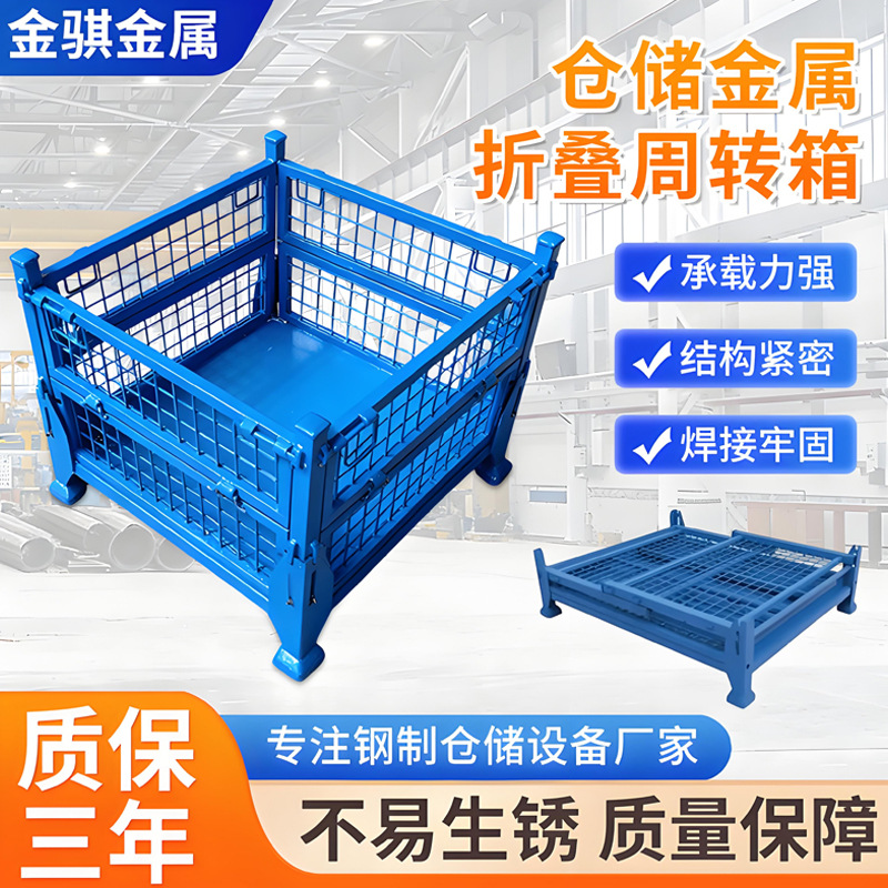 金属周转箱定 制折叠重型网格箱加厚物流铁板箱工厂用金属物料箱