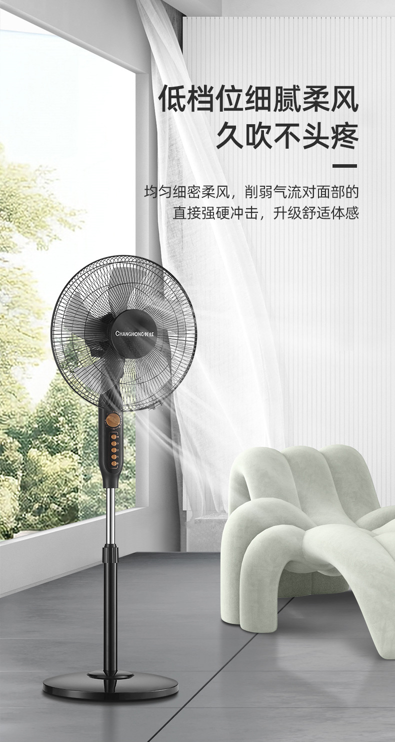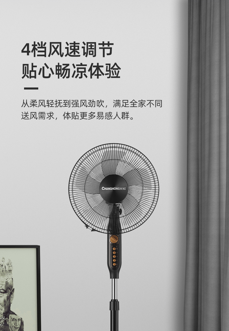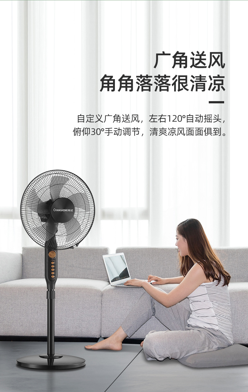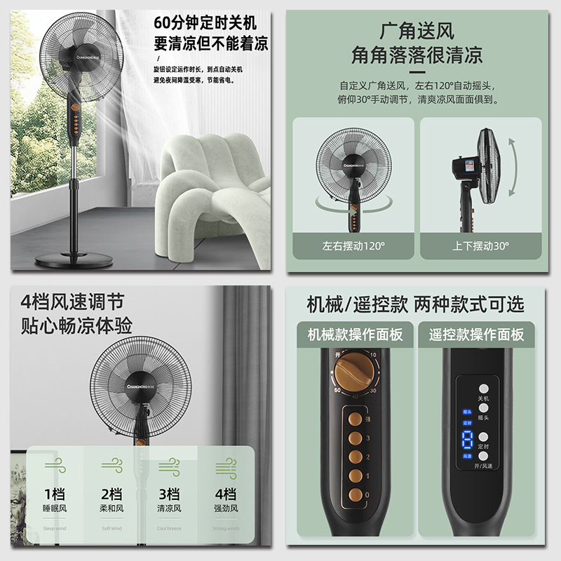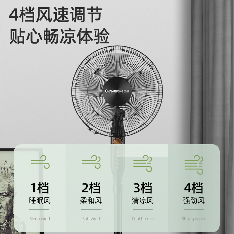 长虹电风扇家用16寸大风力风扇办公室台立式轻音静摇头落地扇批发