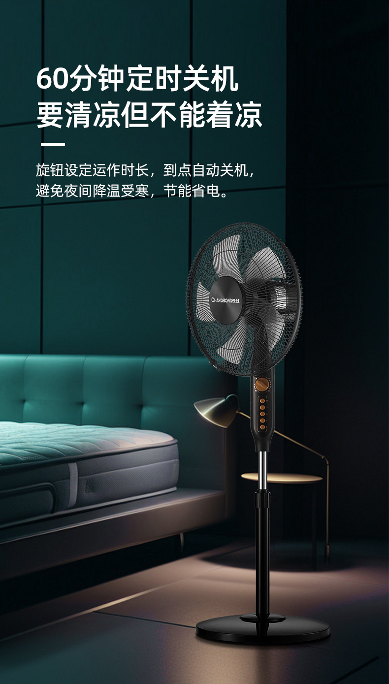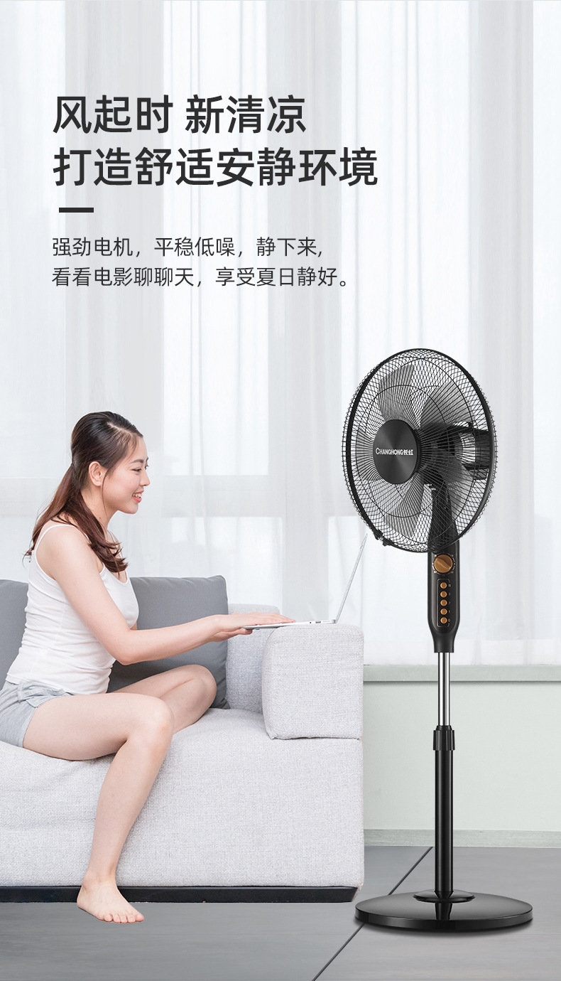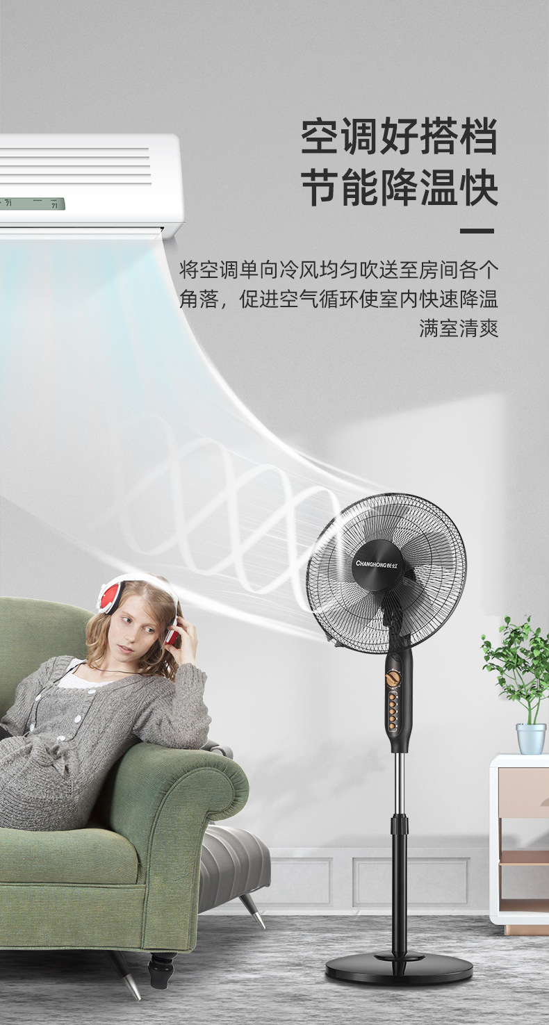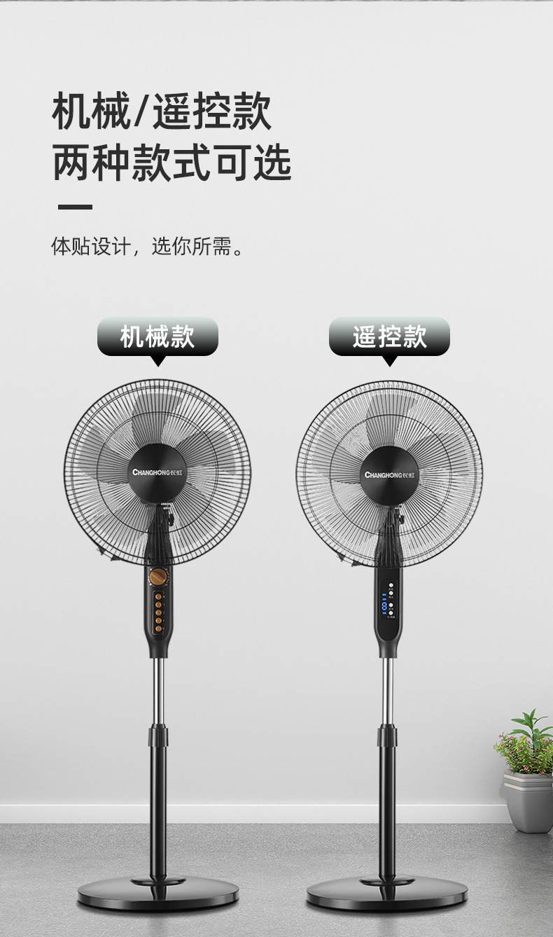 长虹电风扇家用16寸大风力风扇办公室台立式轻音静摇头落地扇批发