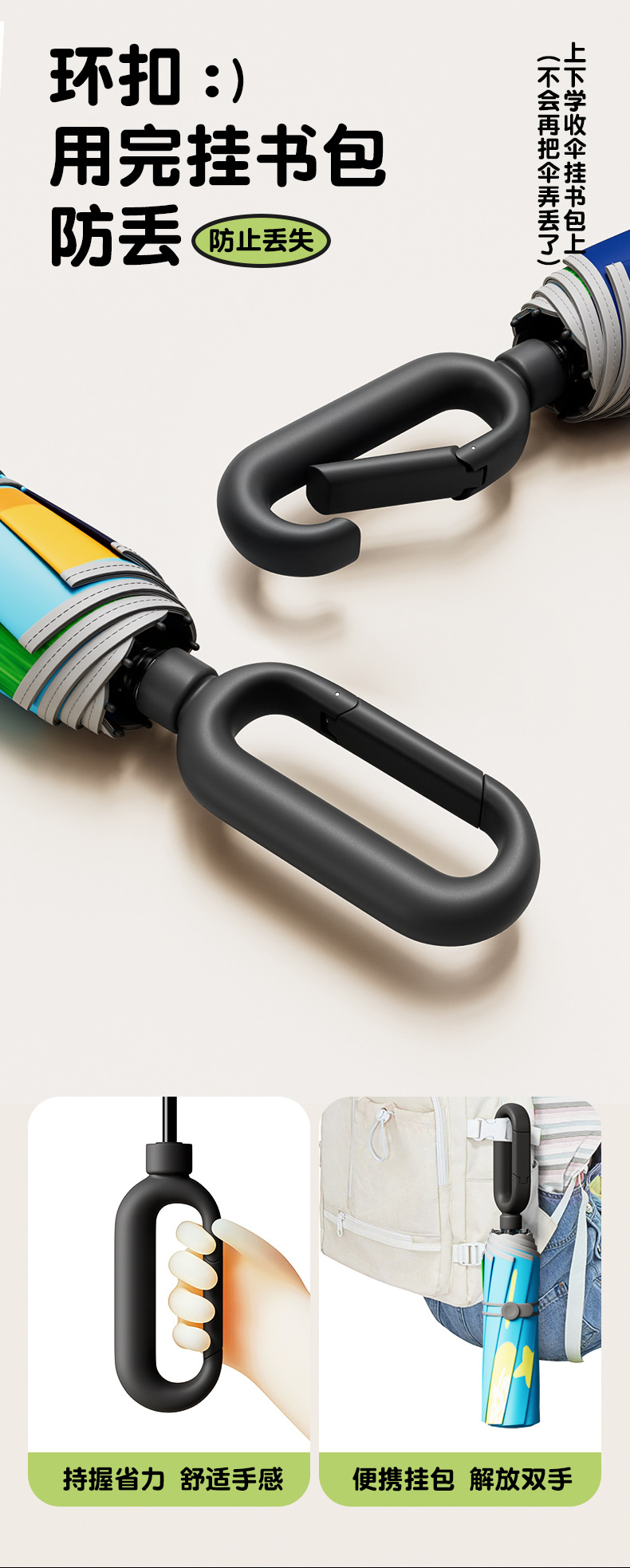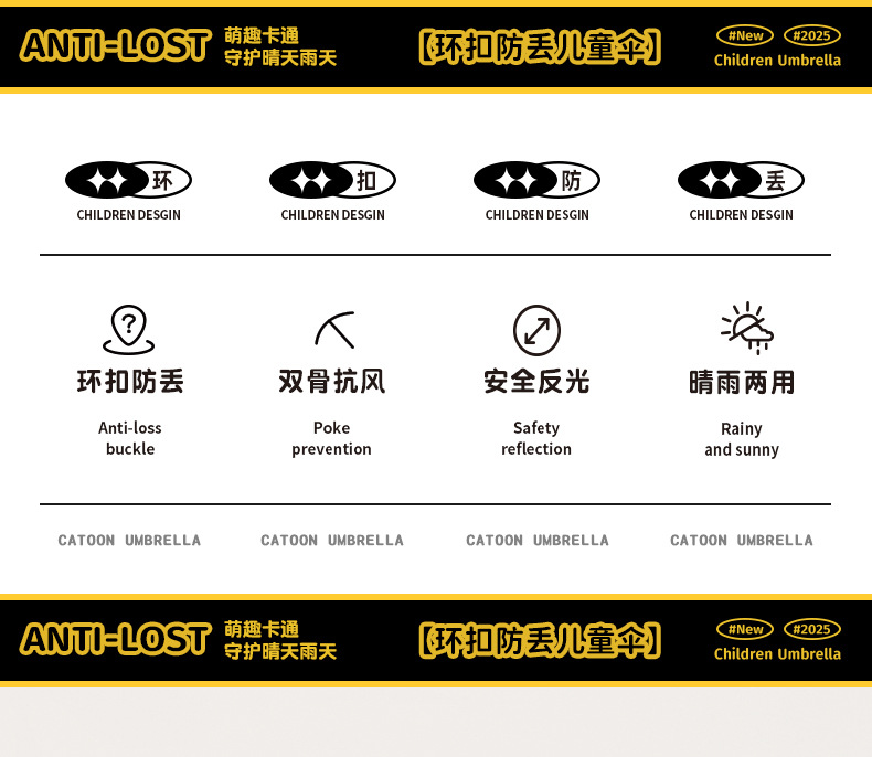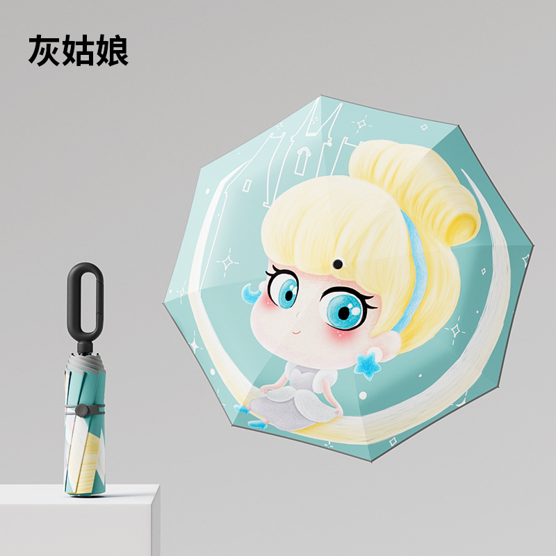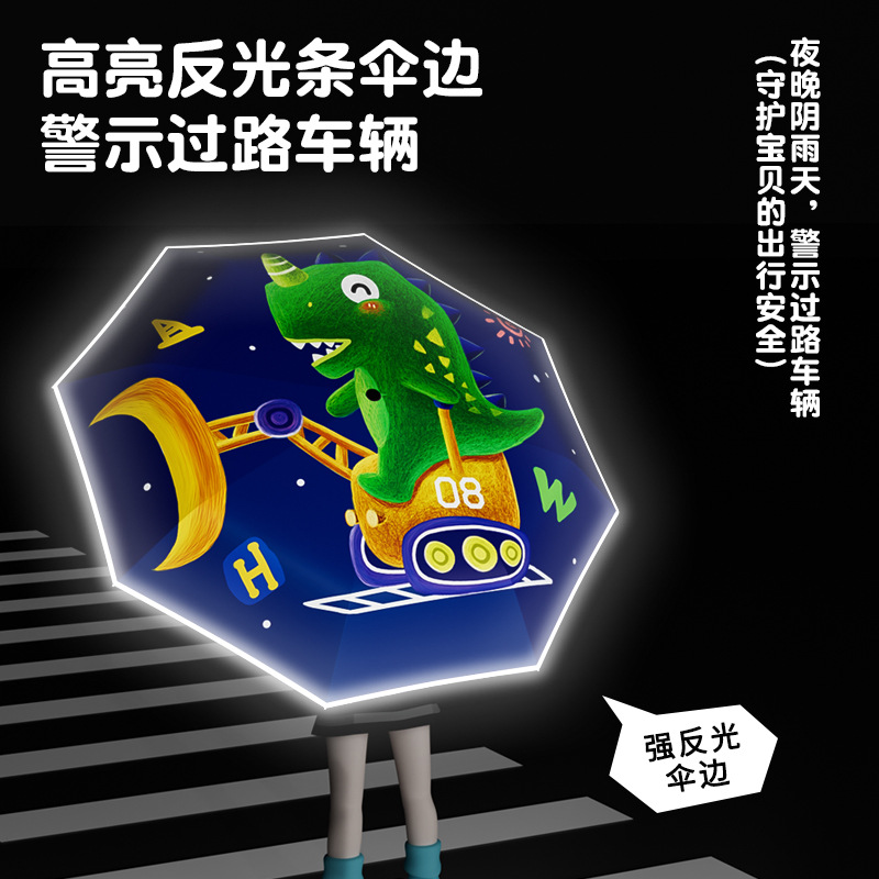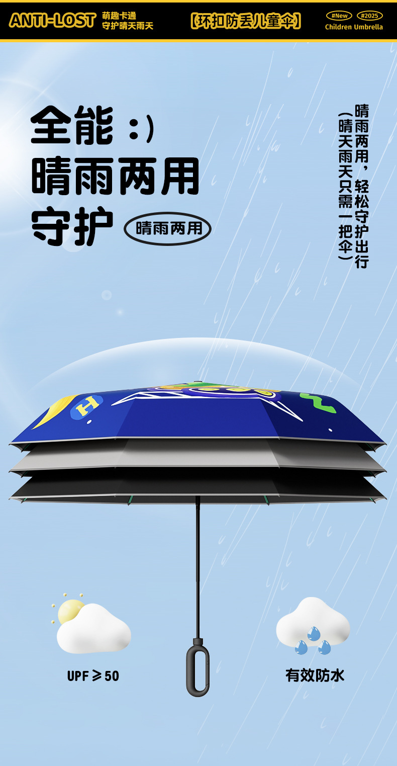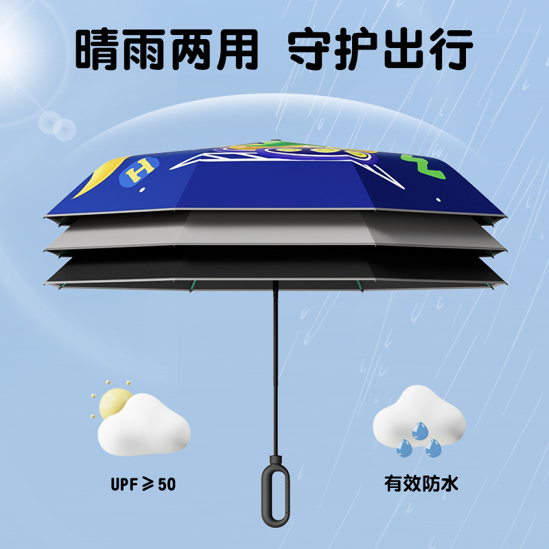儿童环扣雨伞8骨圆角防戳设计男女童小学生卡通晴雨两用折叠伞