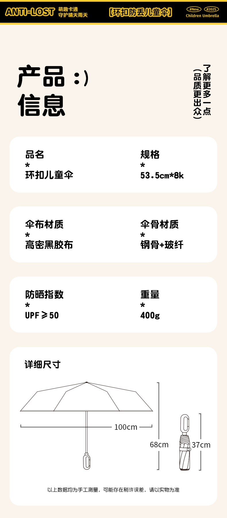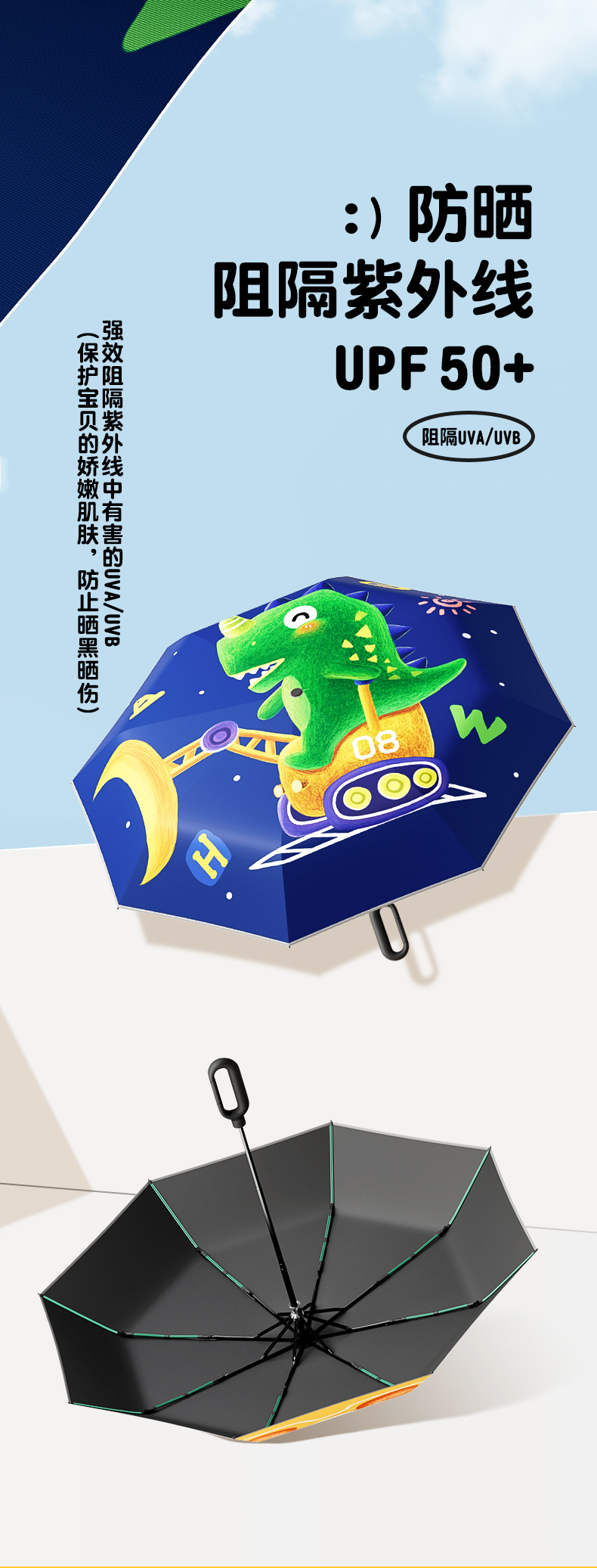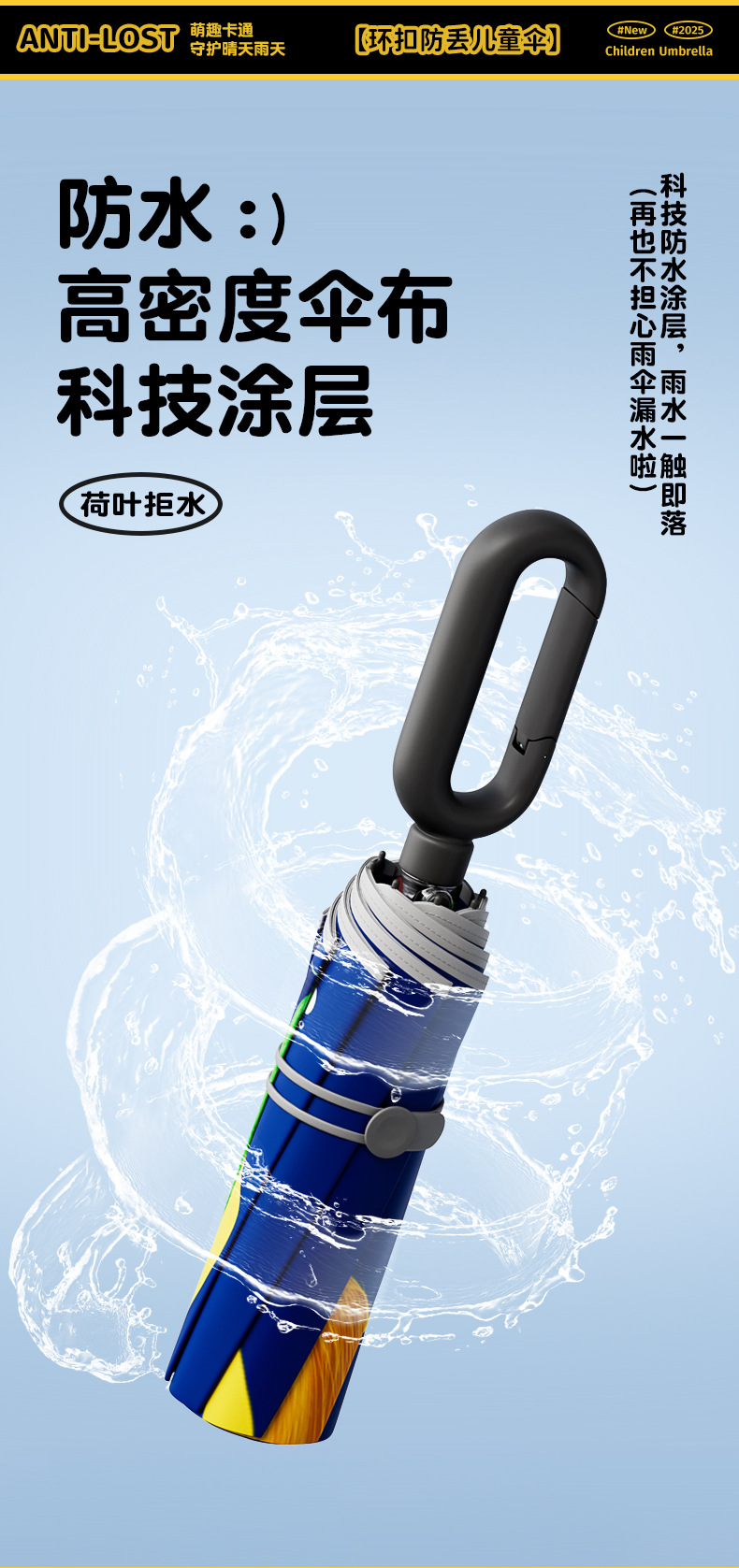 儿童环扣雨伞8骨圆角防戳设计男女童小学生卡通晴雨两用折叠伞