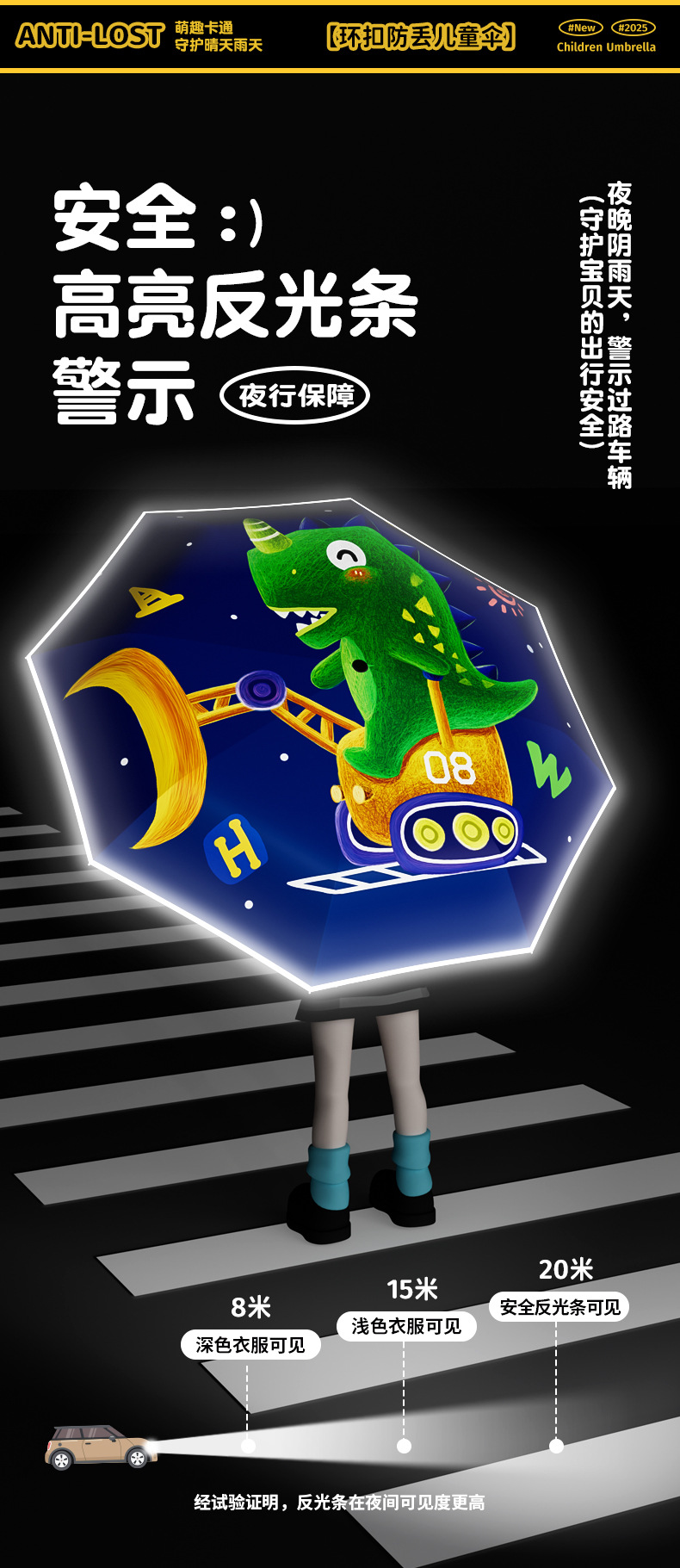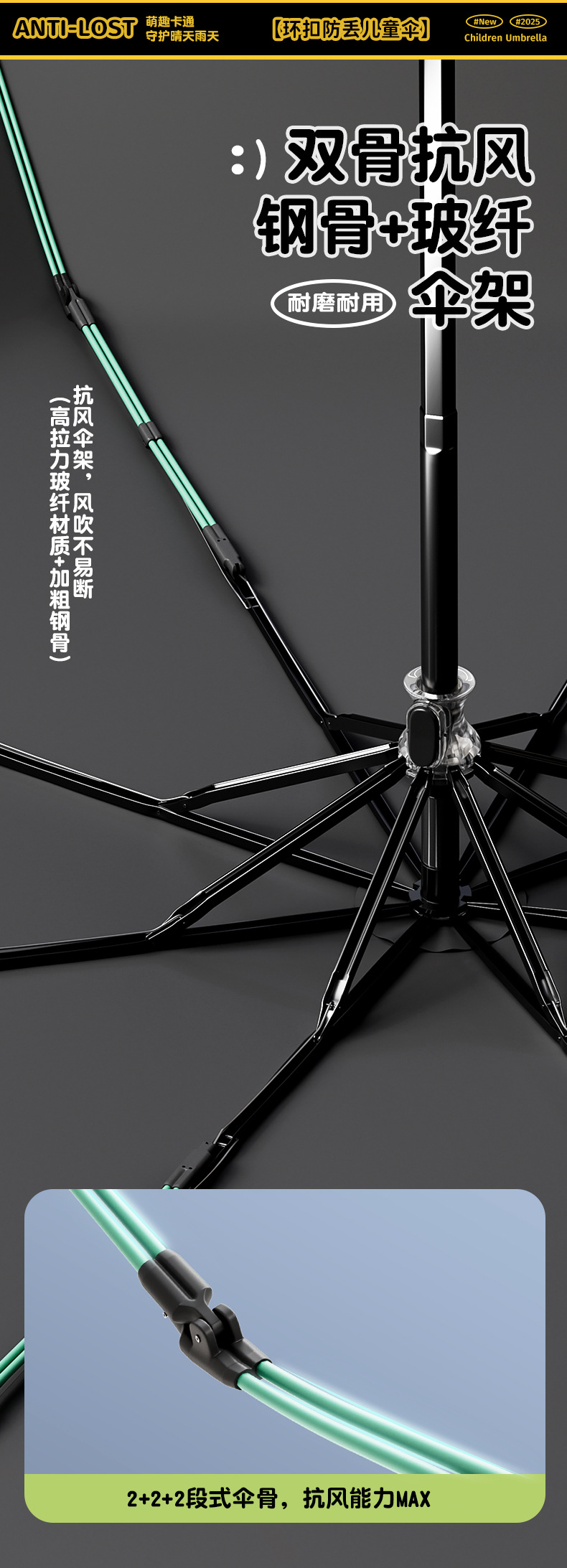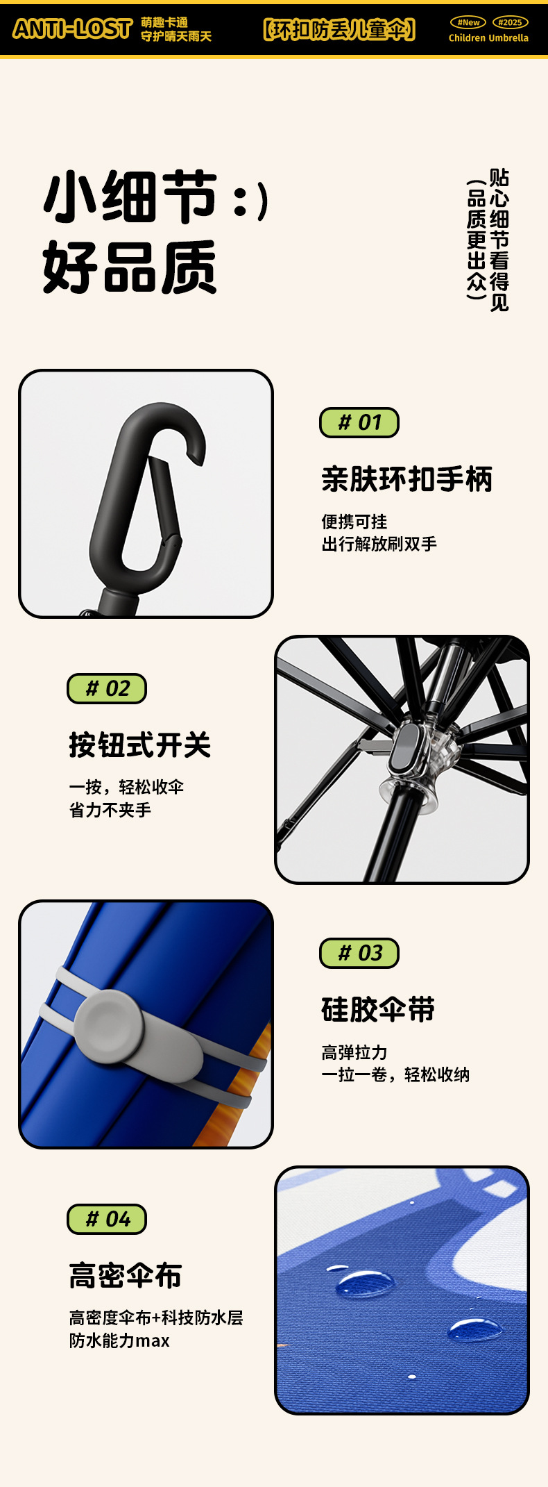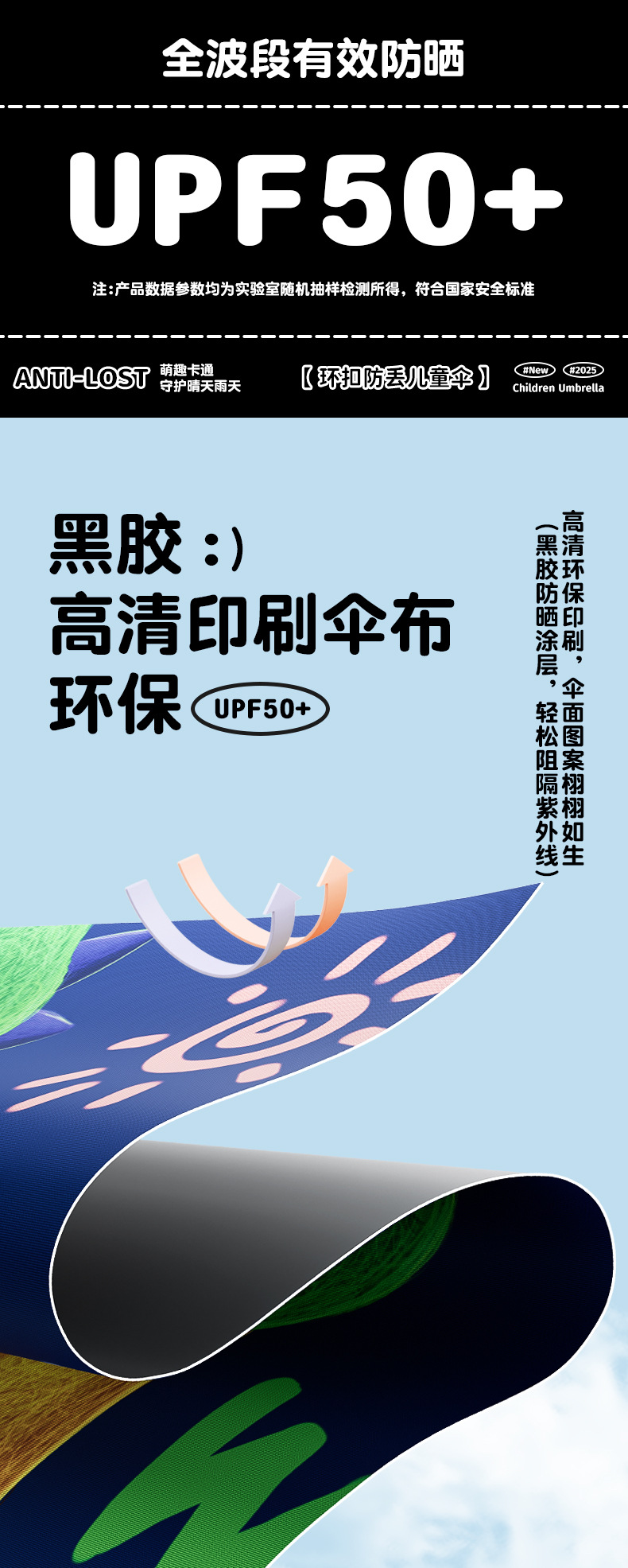 儿童环扣雨伞8骨圆角防戳设计男女童小学生卡通晴雨两用折叠伞
