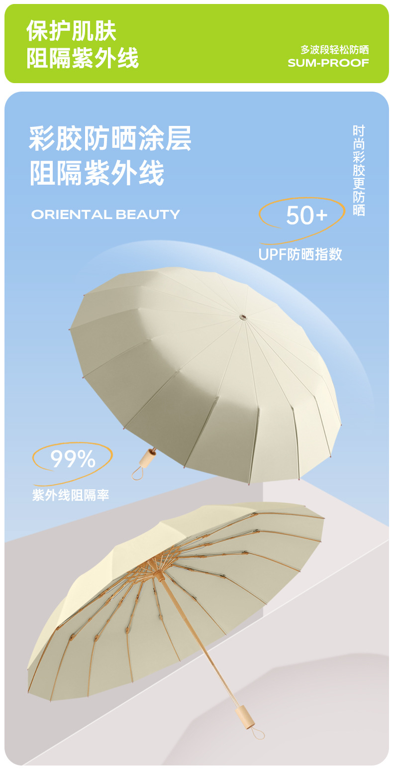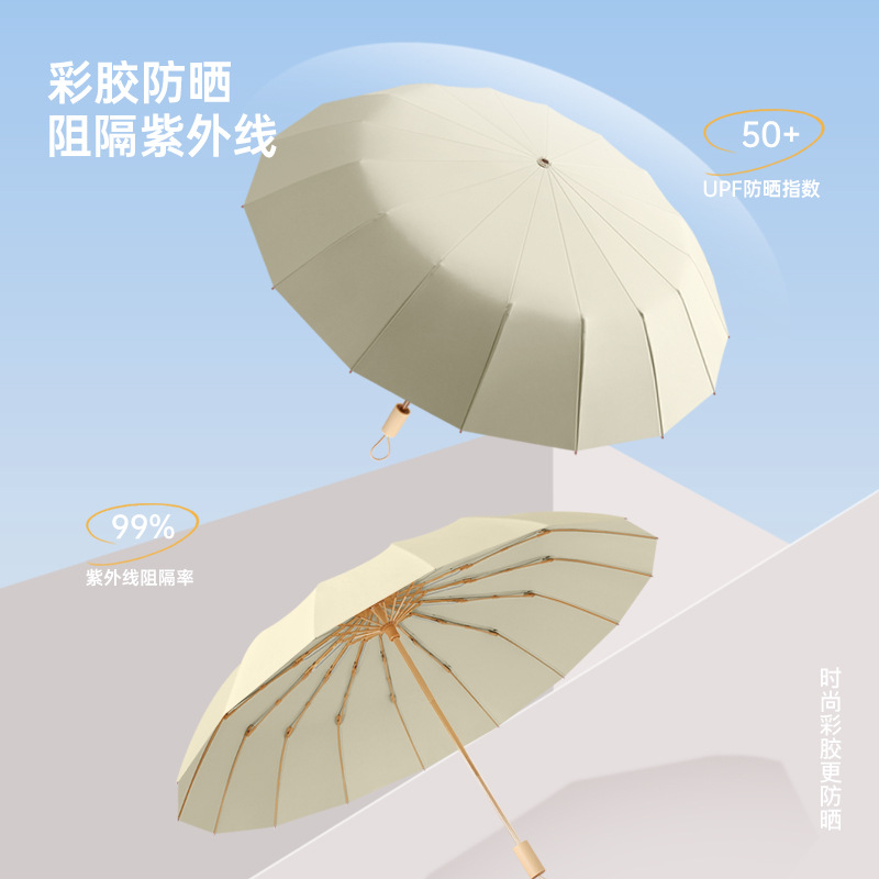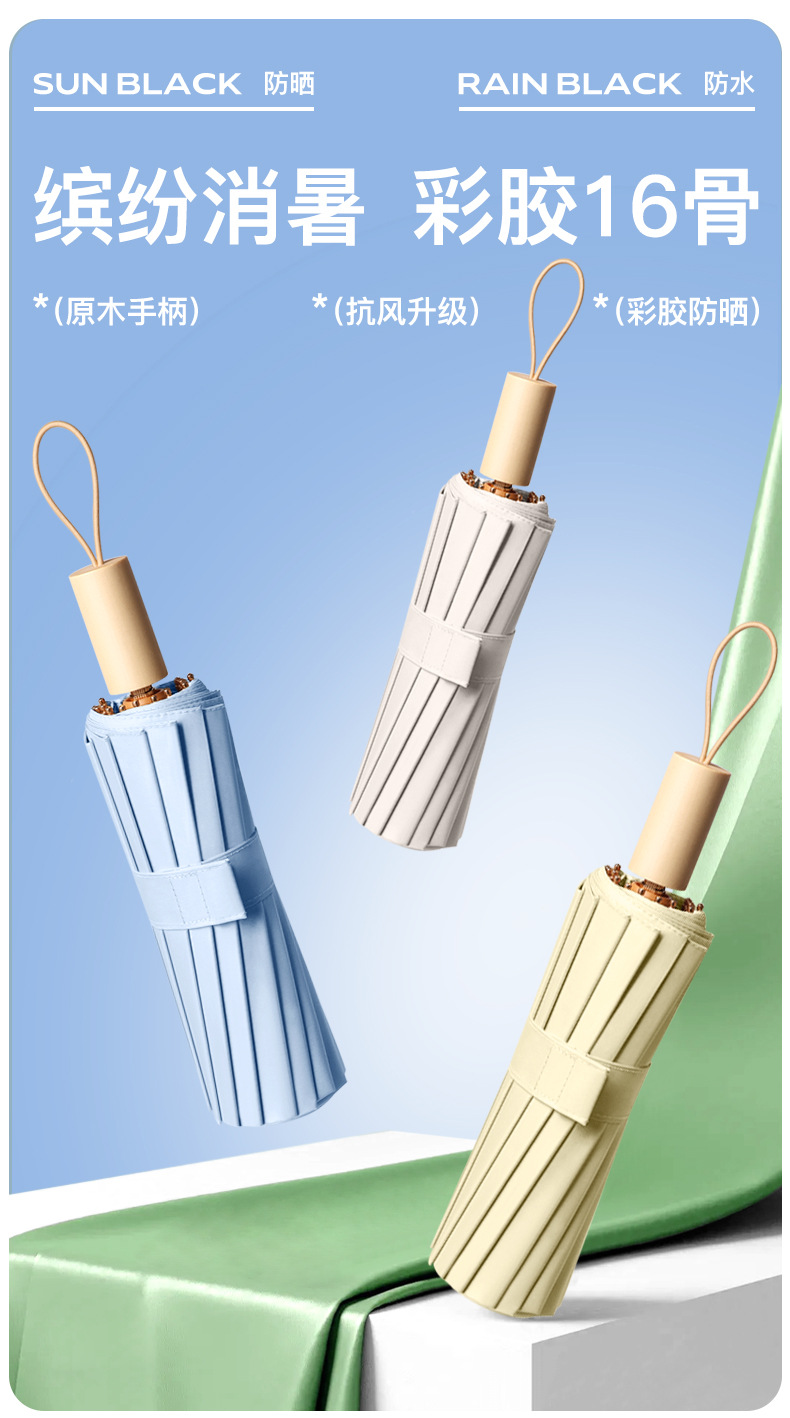 16骨三折防晒太阳伞彩胶防紫外线晴雨两用遮阳伞女士小巧高颜值