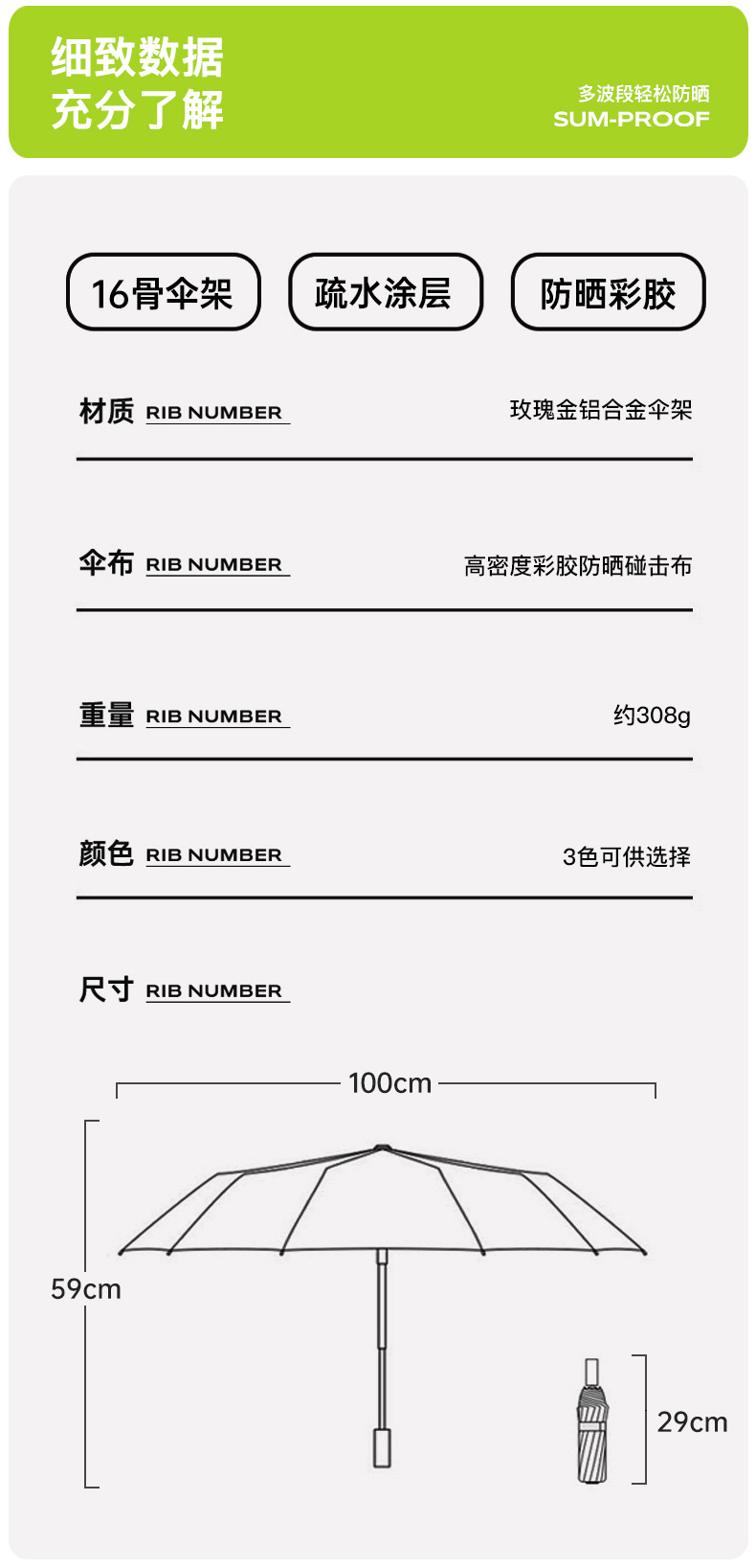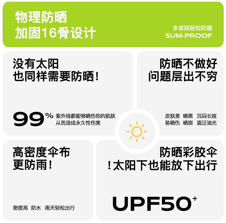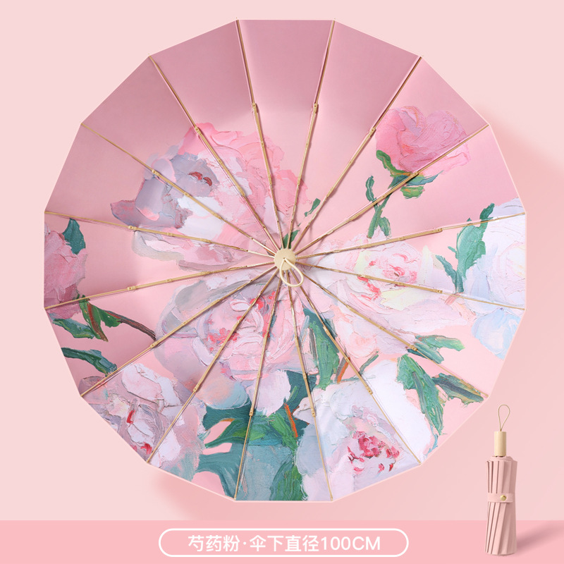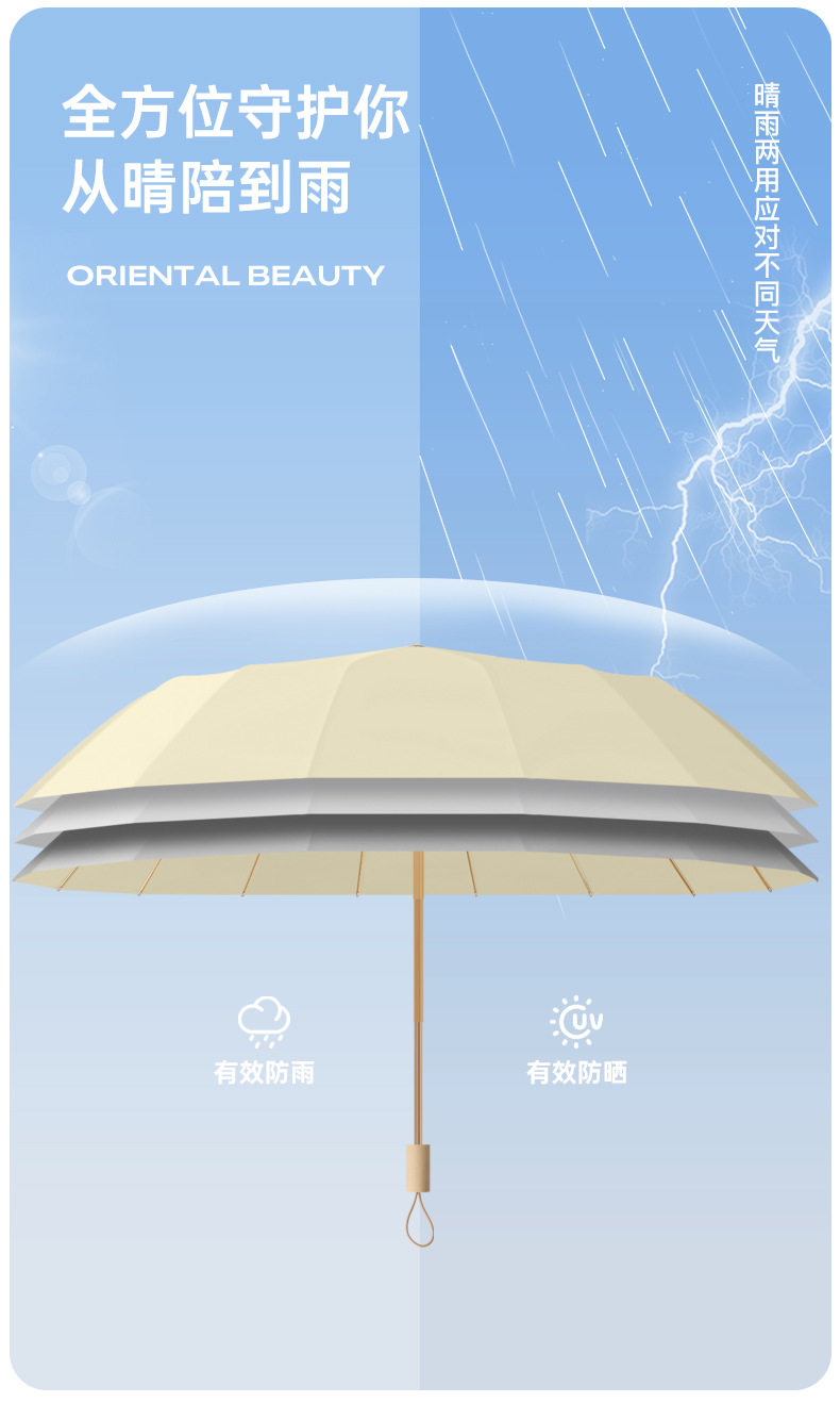 16骨三折防晒太阳伞彩胶防紫外线晴雨两用遮阳伞女士小巧高颜值