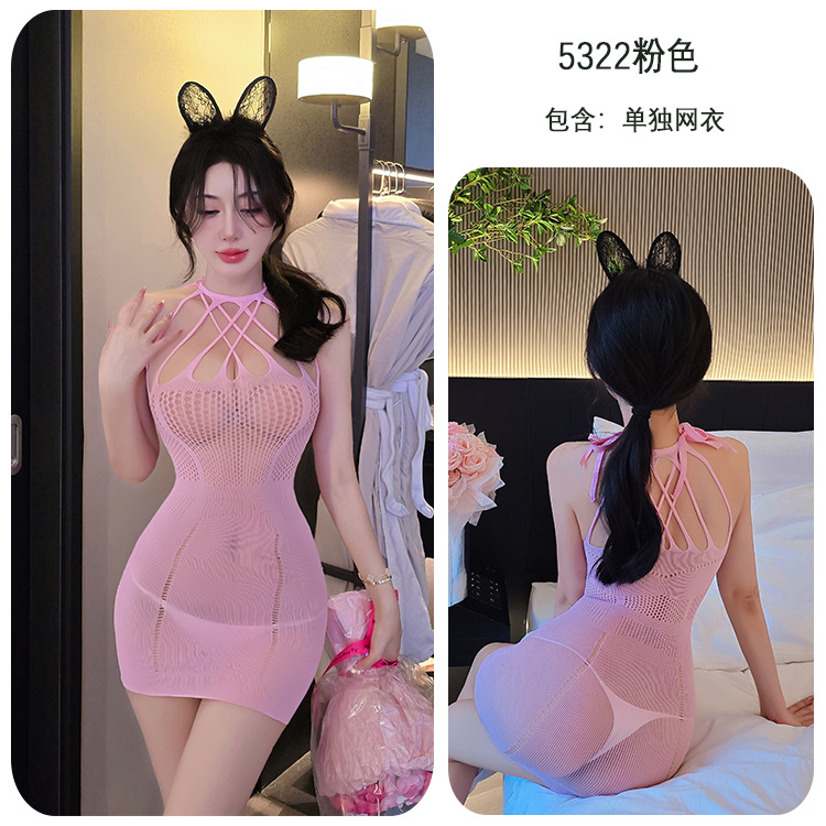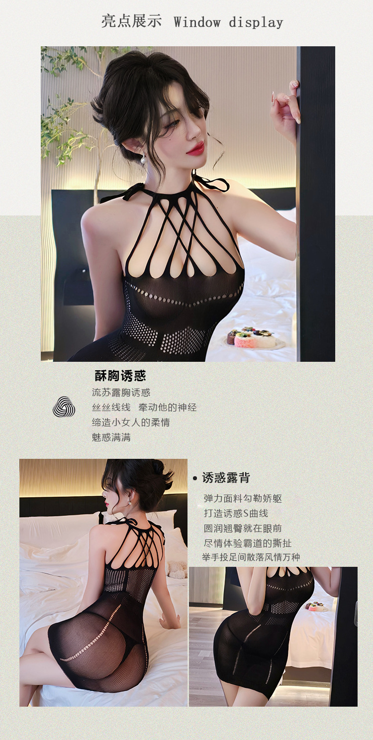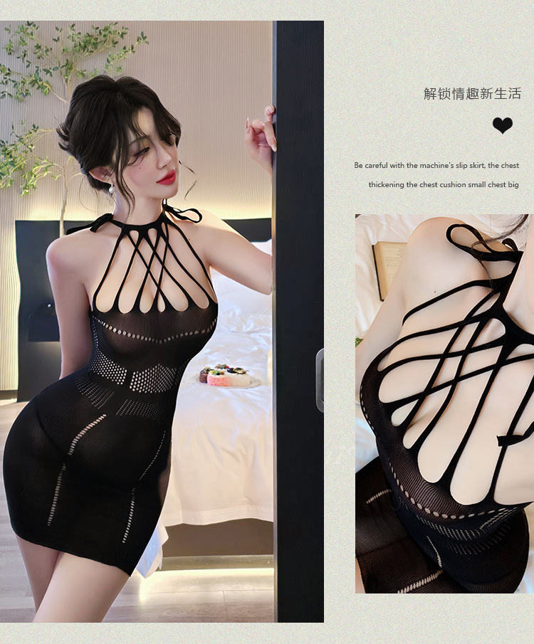 长夜漫漫情趣内衣挂脖镂空透视网眼包臀裙露胸性感纯欲诱惑女5322