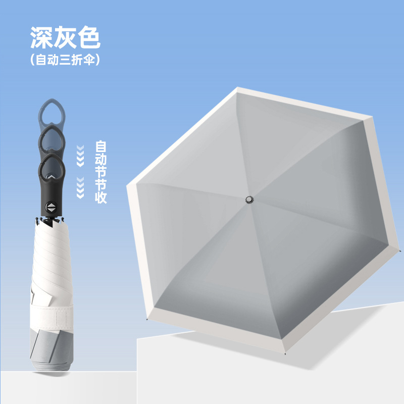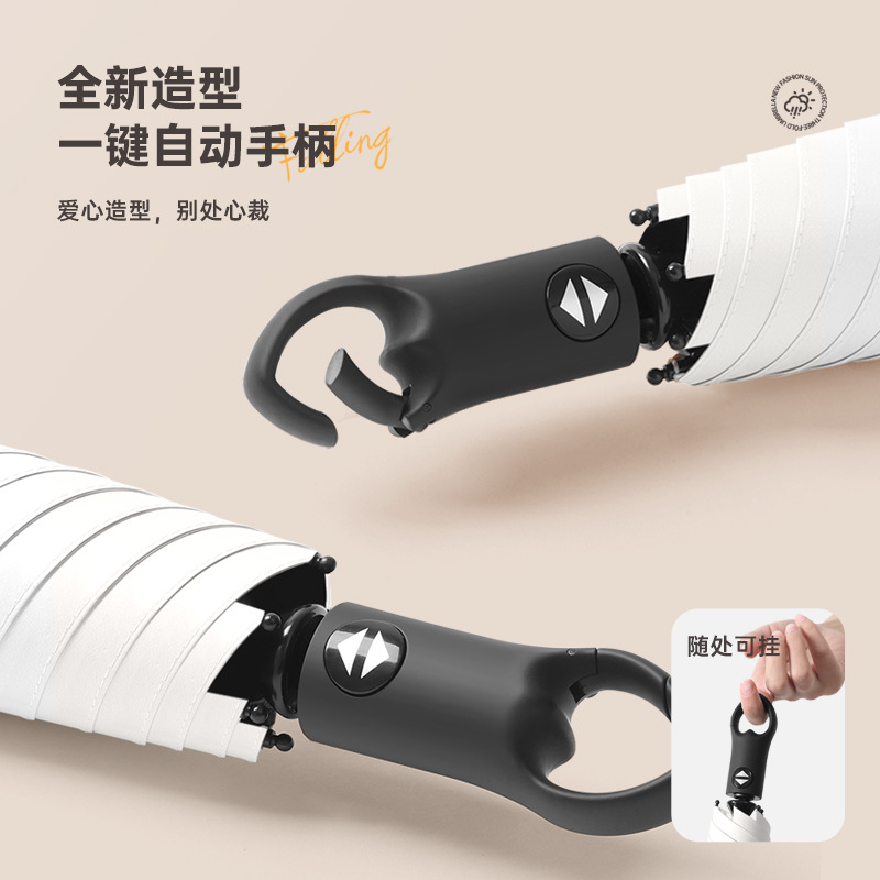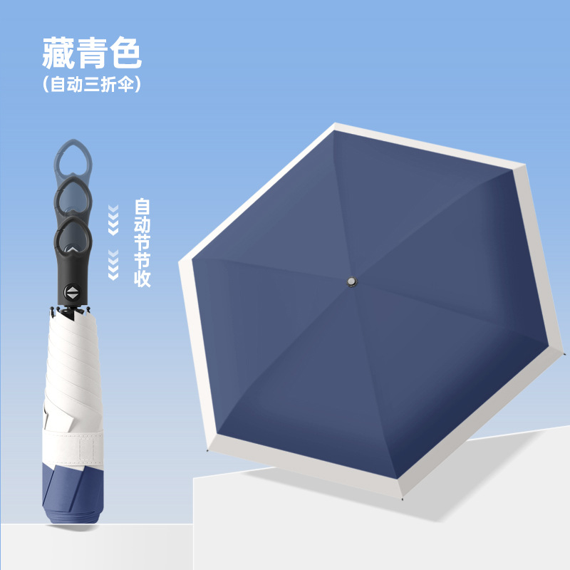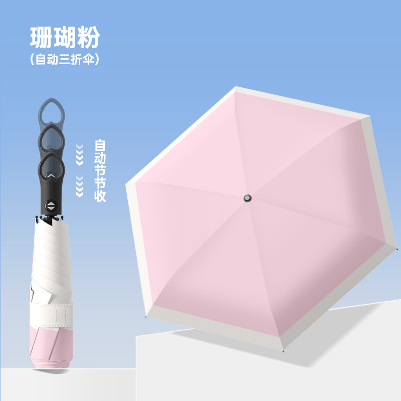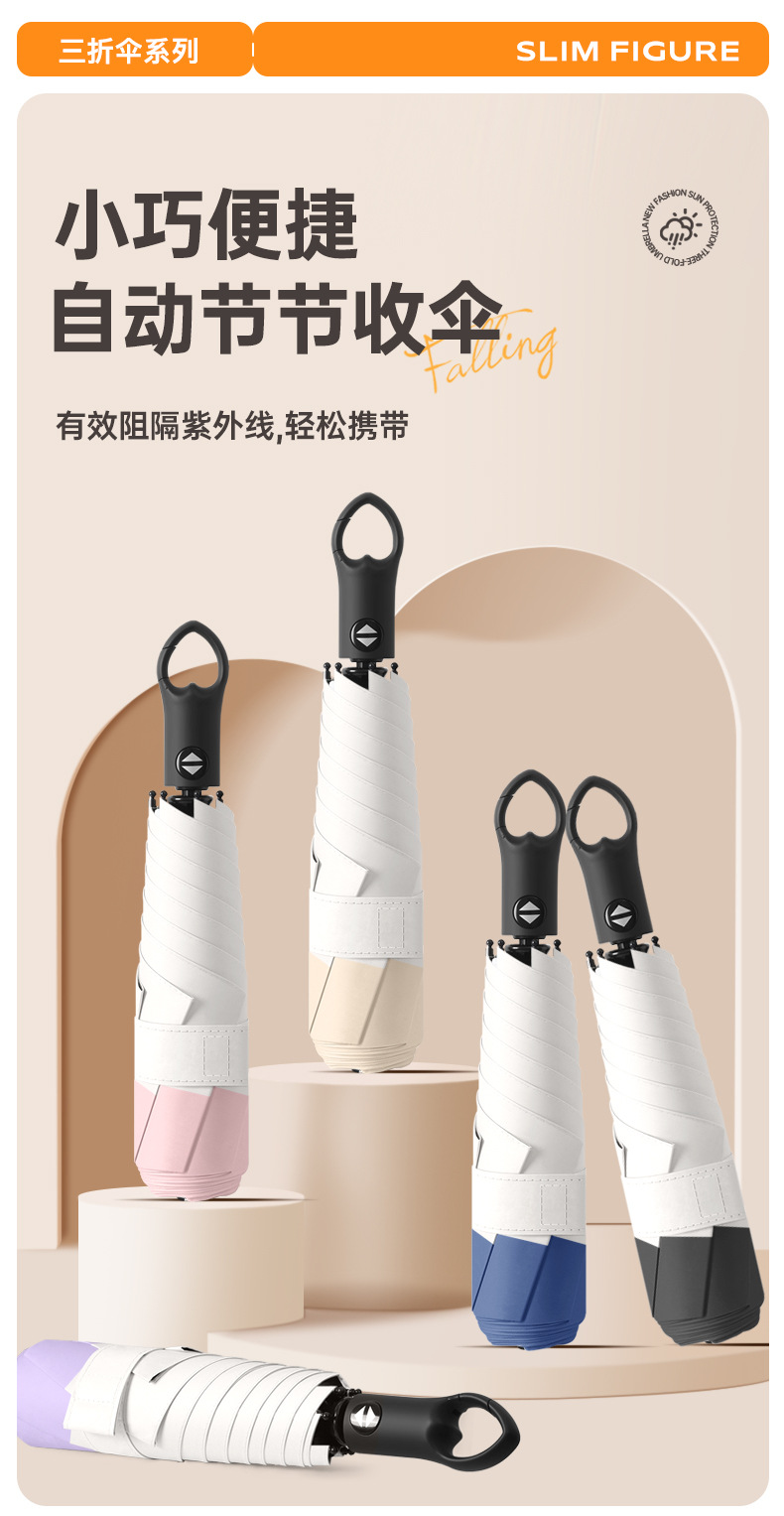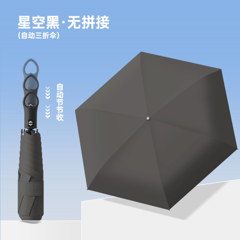 全自动三折节节收6骨晴雨伞环扣黑胶防紫外线遮阳防晒太阳伞广告