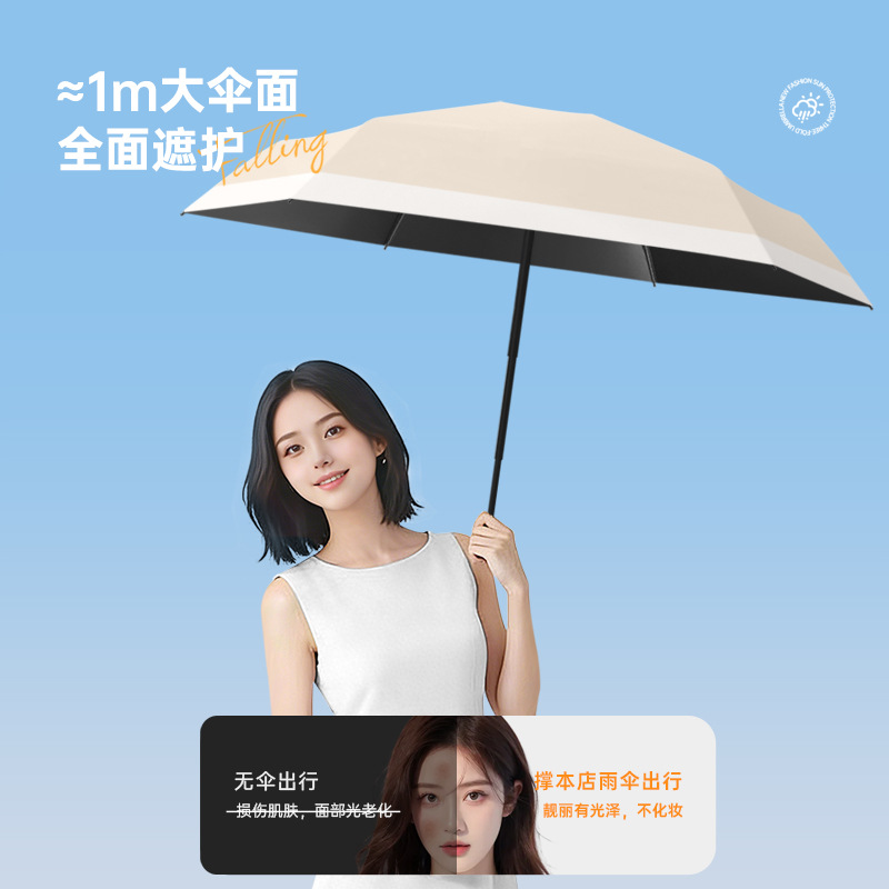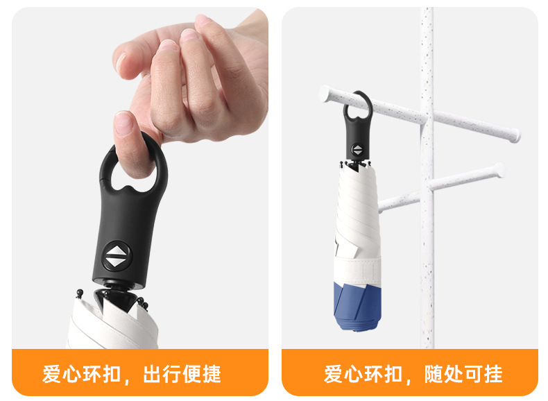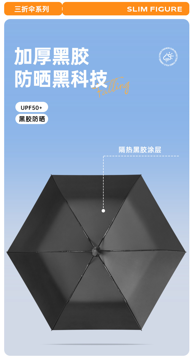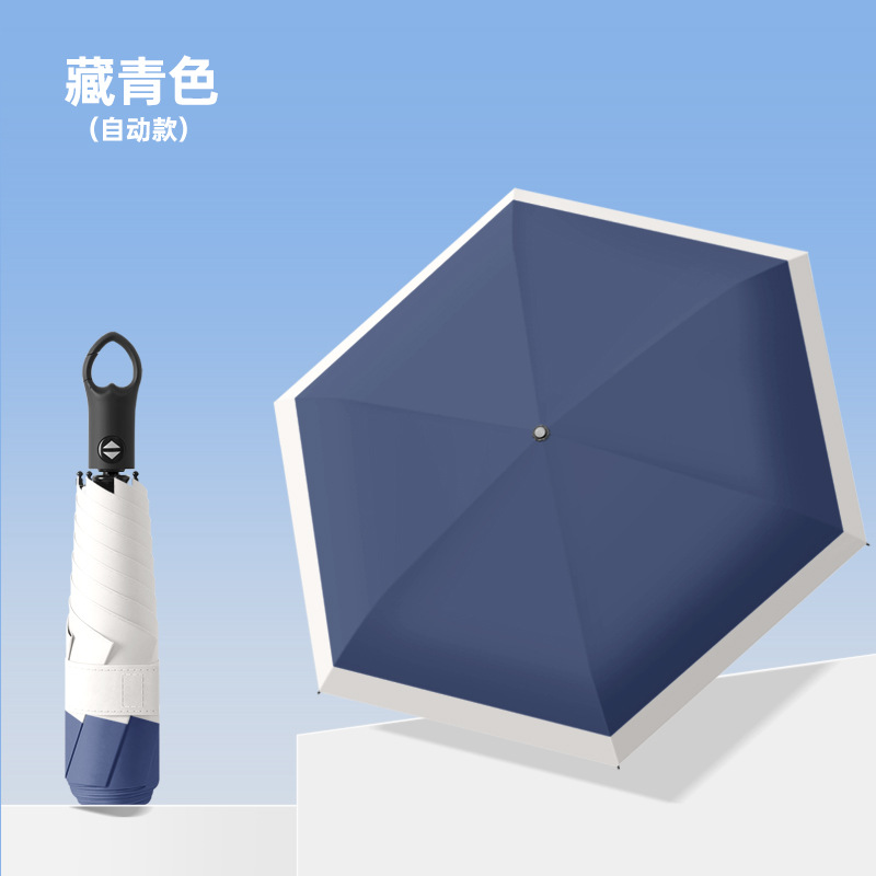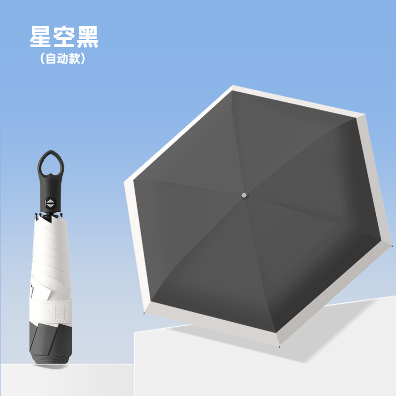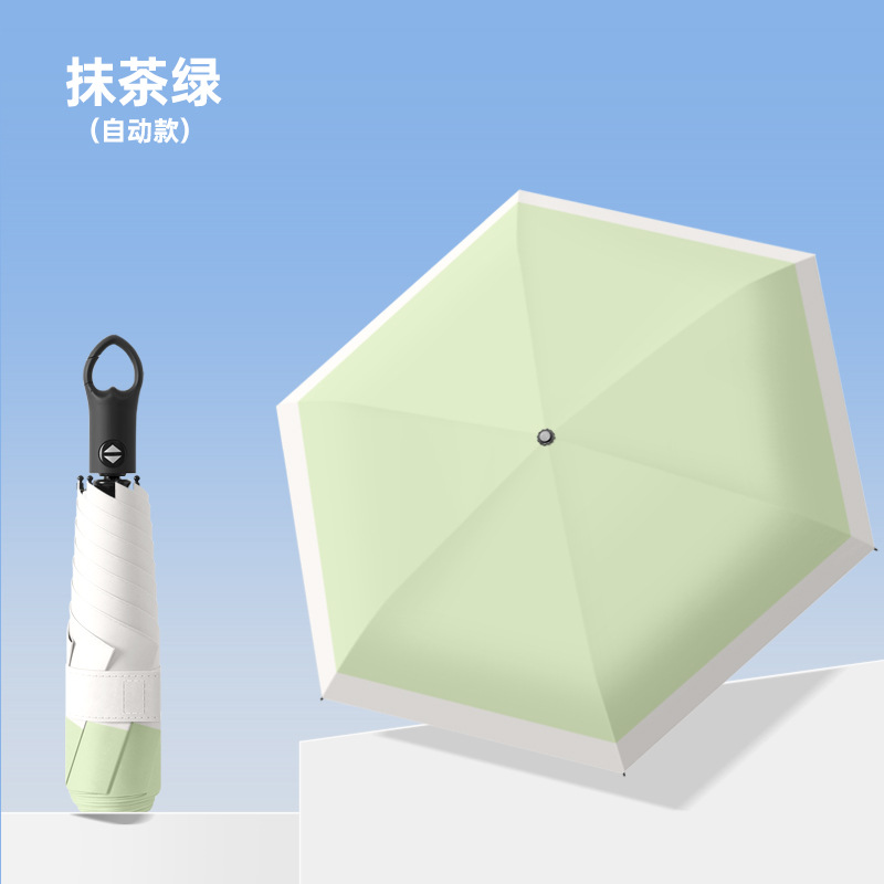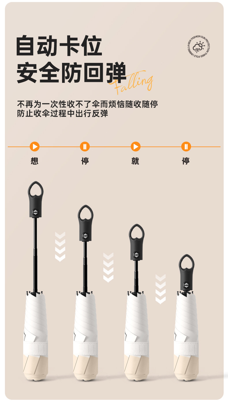 全自动三折节节收6骨晴雨伞环扣黑胶防紫外线遮阳防晒太阳伞广告