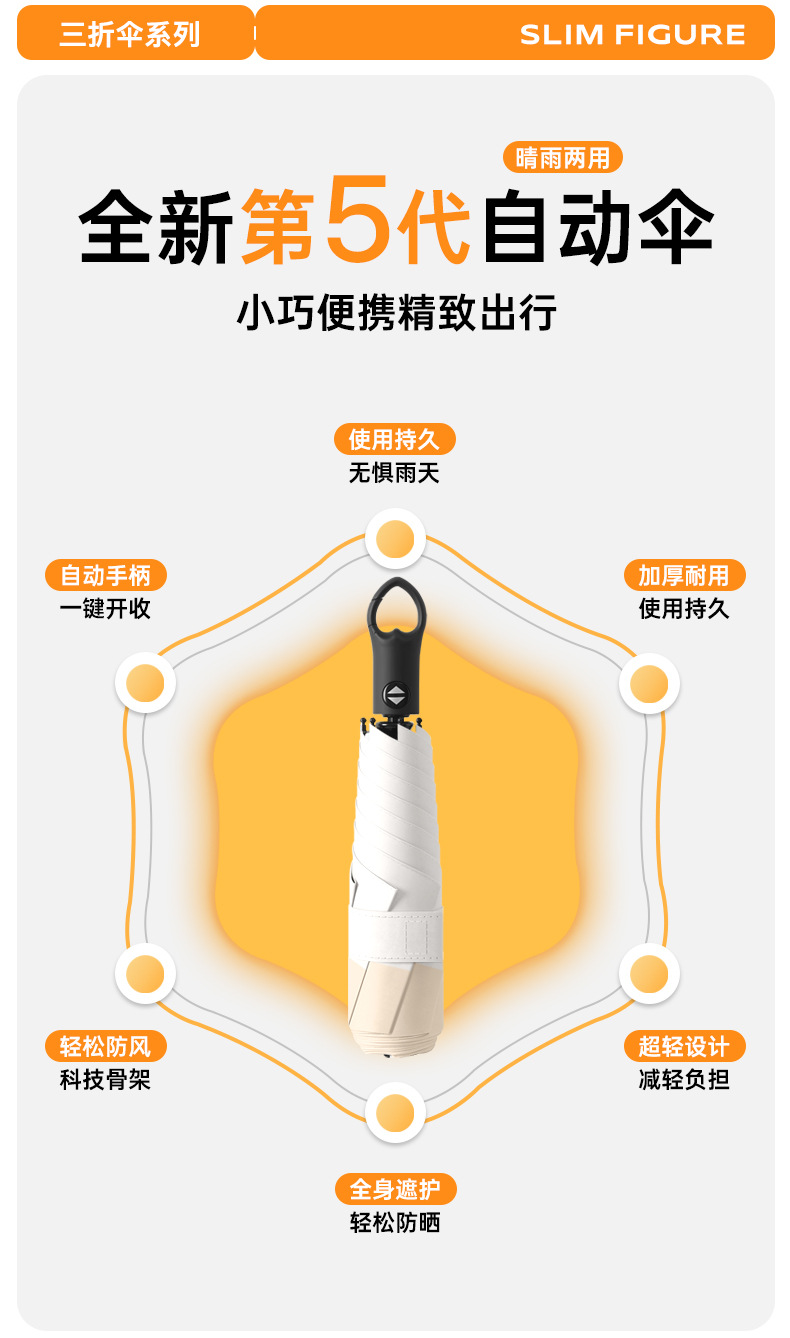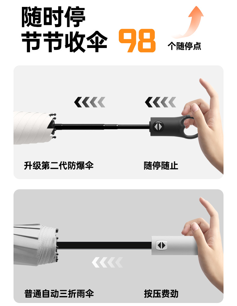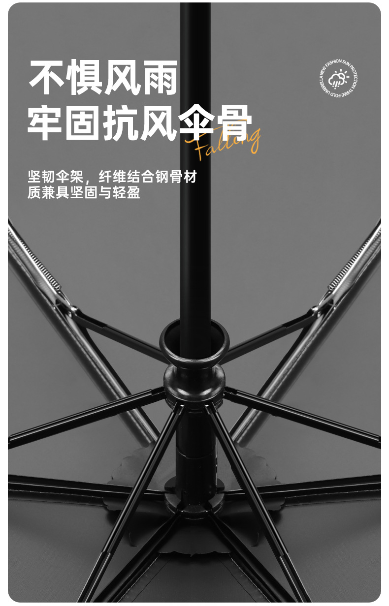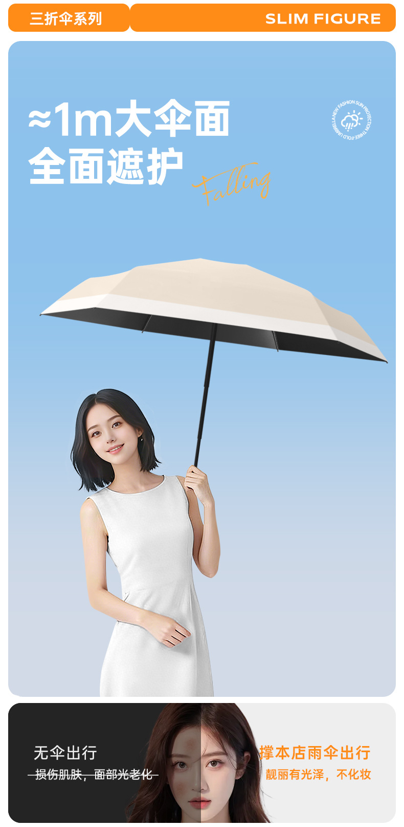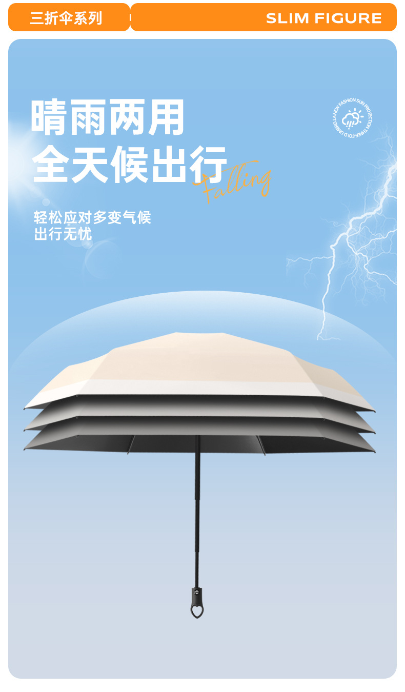 全自动三折节节收6骨晴雨伞环扣黑胶防紫外线遮阳防晒太阳伞广告