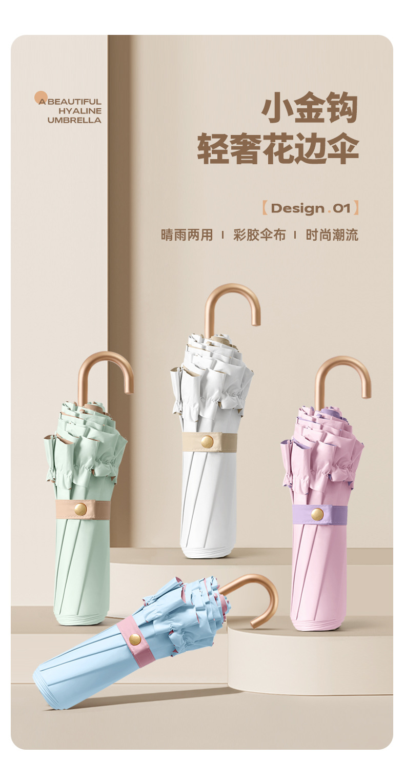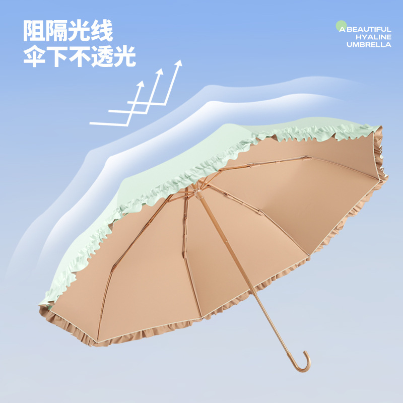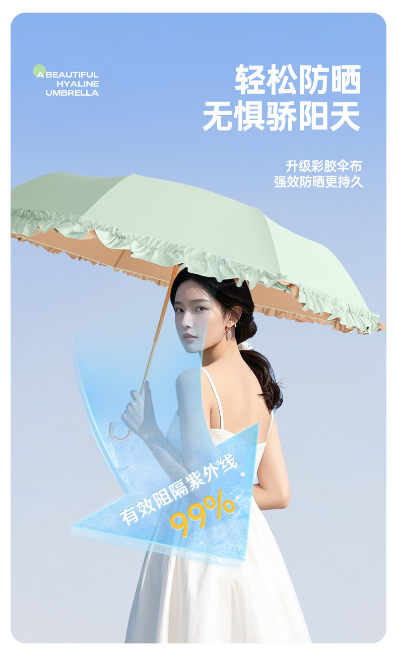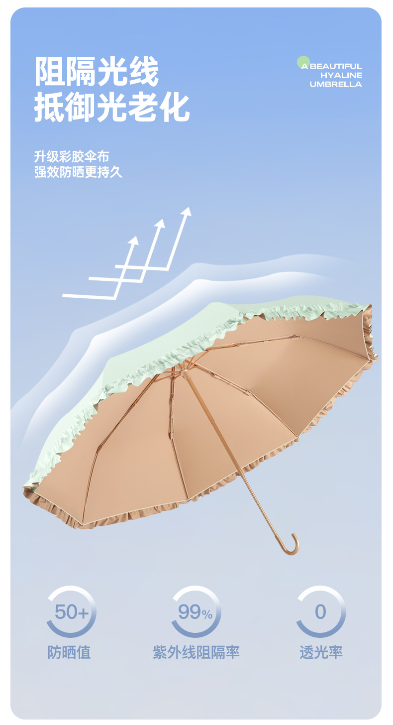 新款彩胶防紫外线折叠伞女士防晒晴雨两用花边太阳伞小巧高颜值伞