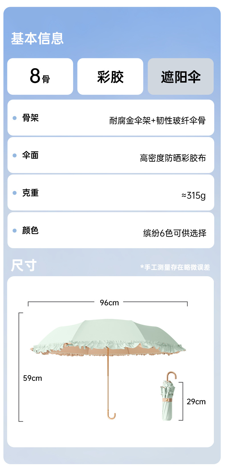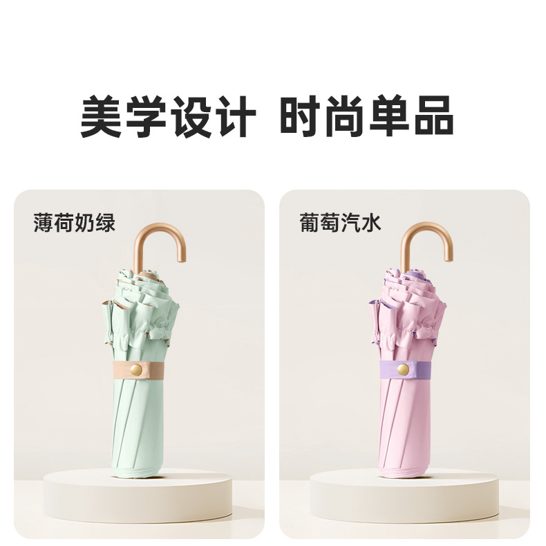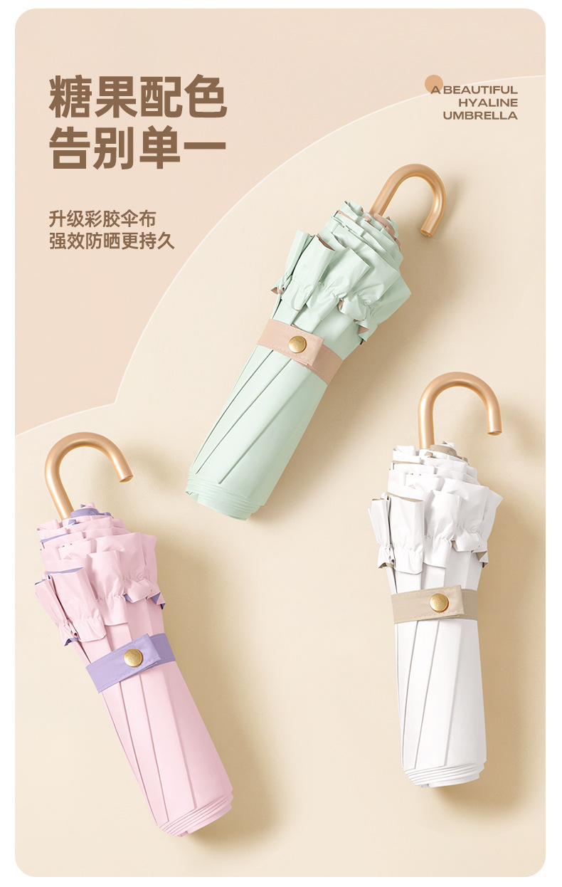 新款彩胶防紫外线折叠伞女士防晒晴雨两用花边太阳伞小巧高颜值伞