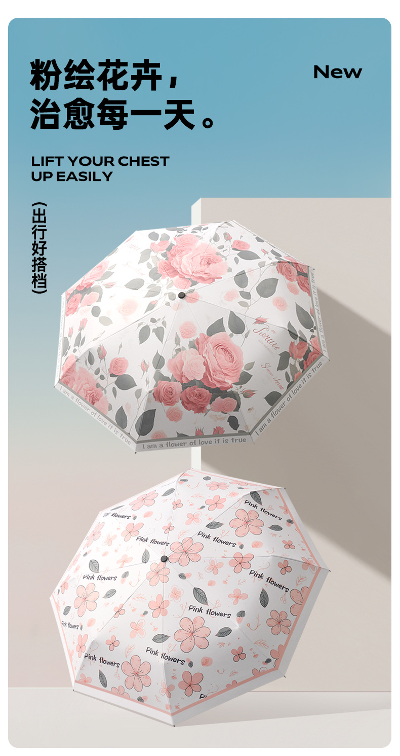 8骨手开彩绘遮阳伞黑胶防晒晴雨两用定 制太阳伞女生防紫外线雨伞