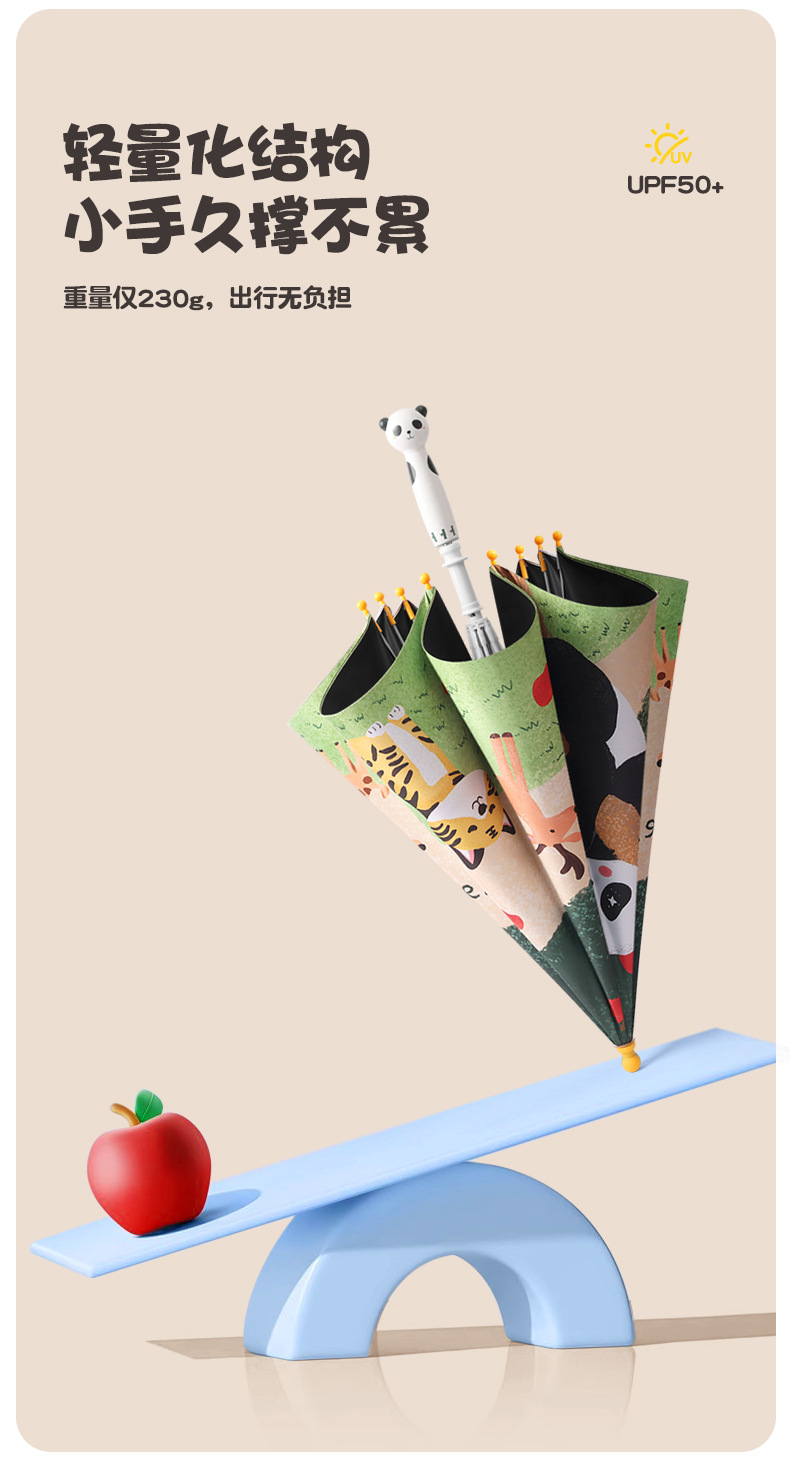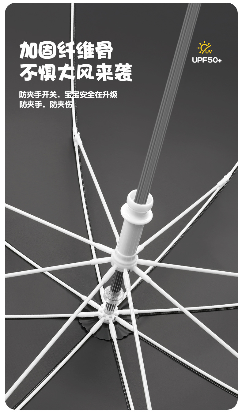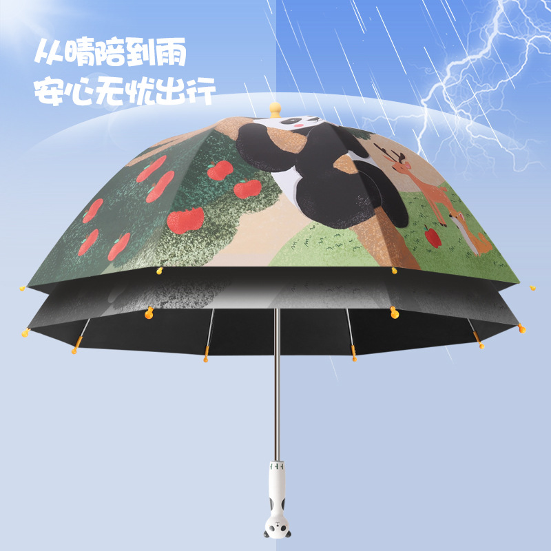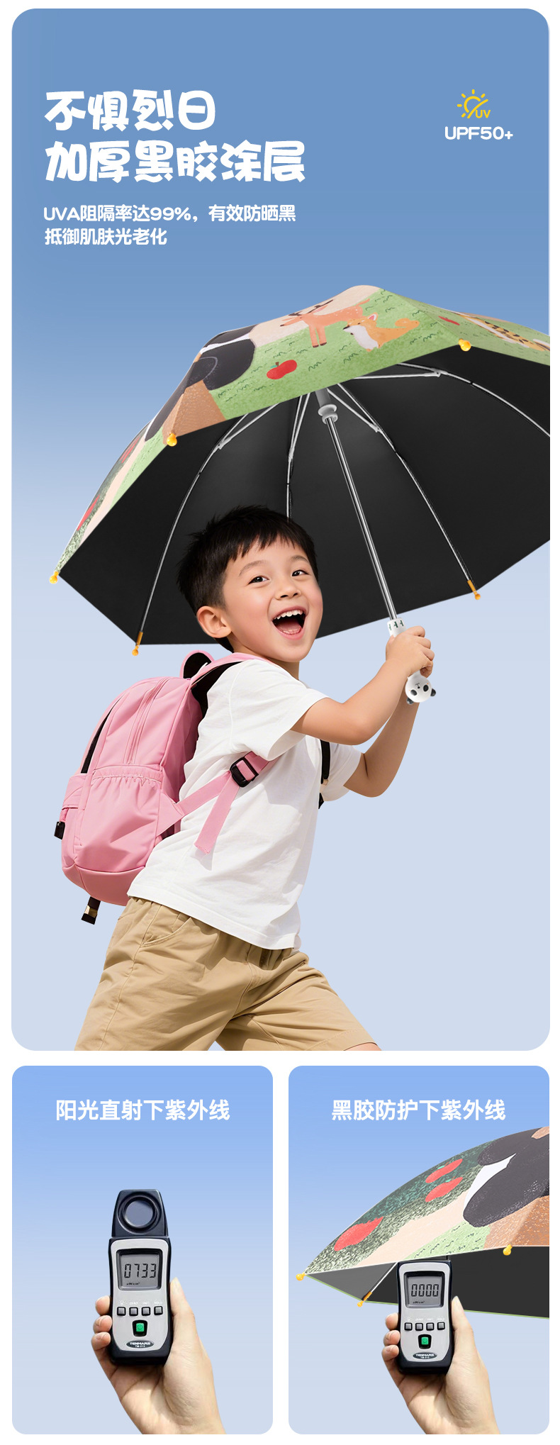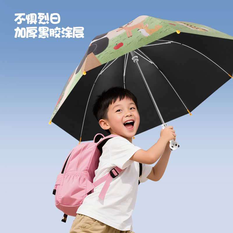 新款晴雨两用卡通雨伞儿童黑胶防晒拱形遮阳伞幼儿园轻便伞直杆