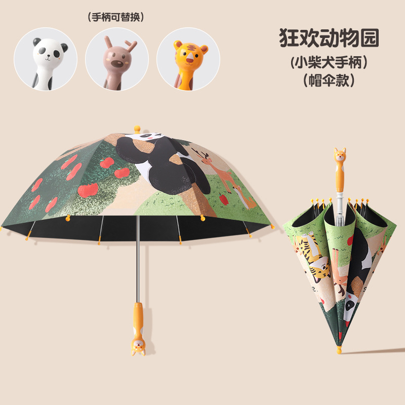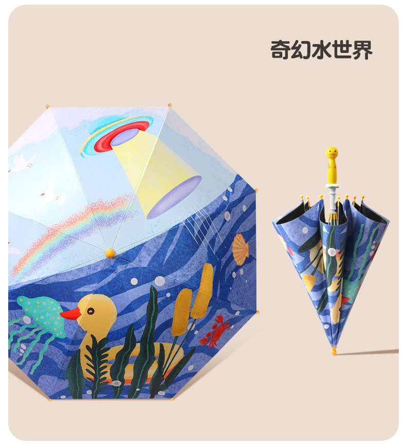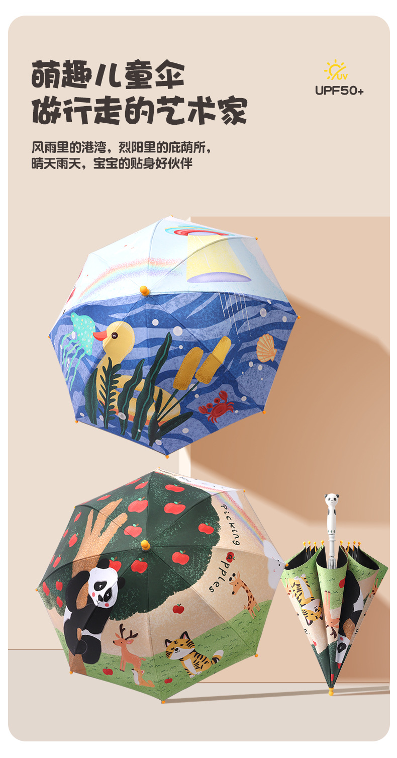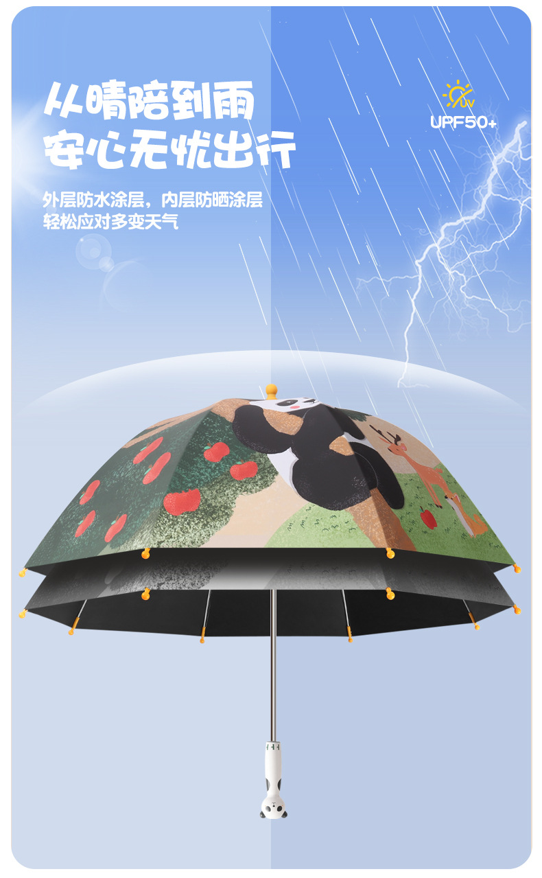 新款晴雨两用卡通雨伞儿童黑胶防晒拱形遮阳伞幼儿园轻便伞直杆