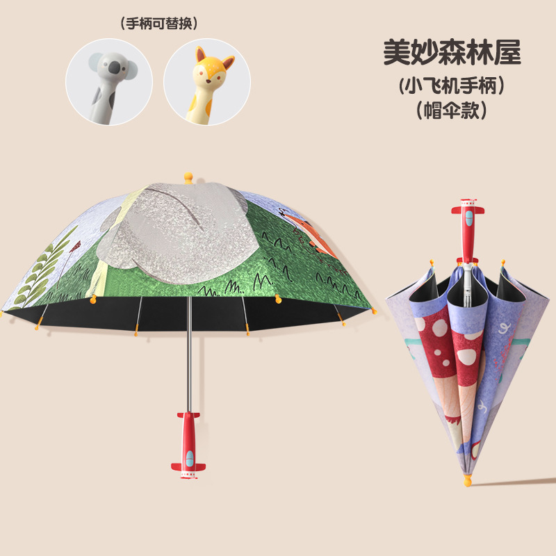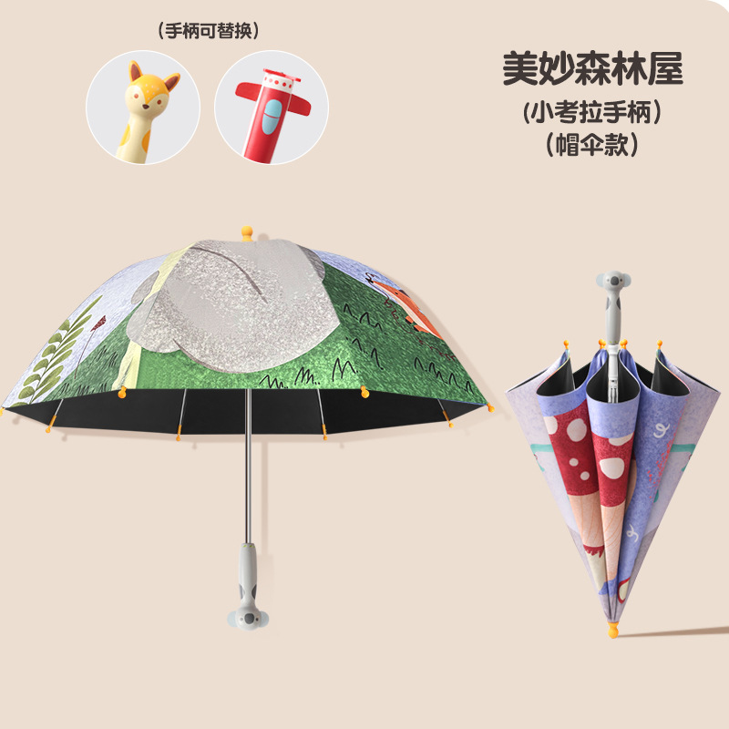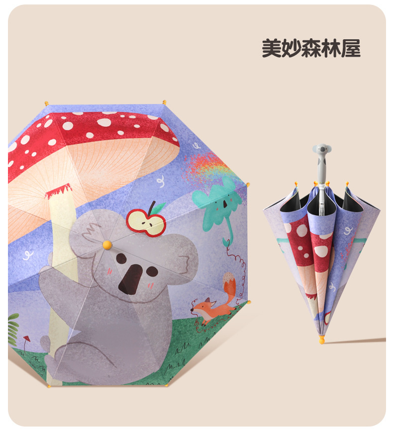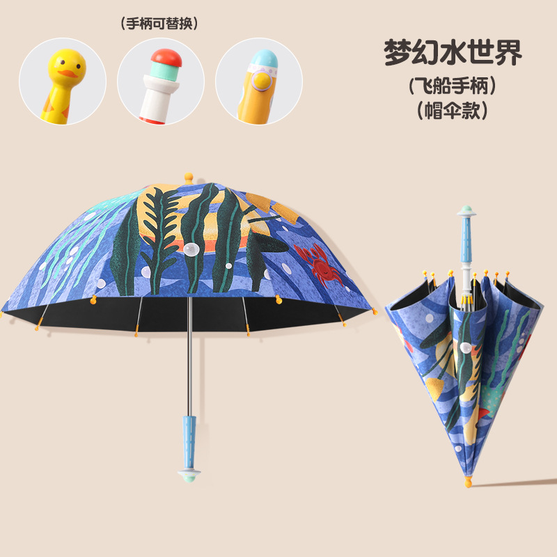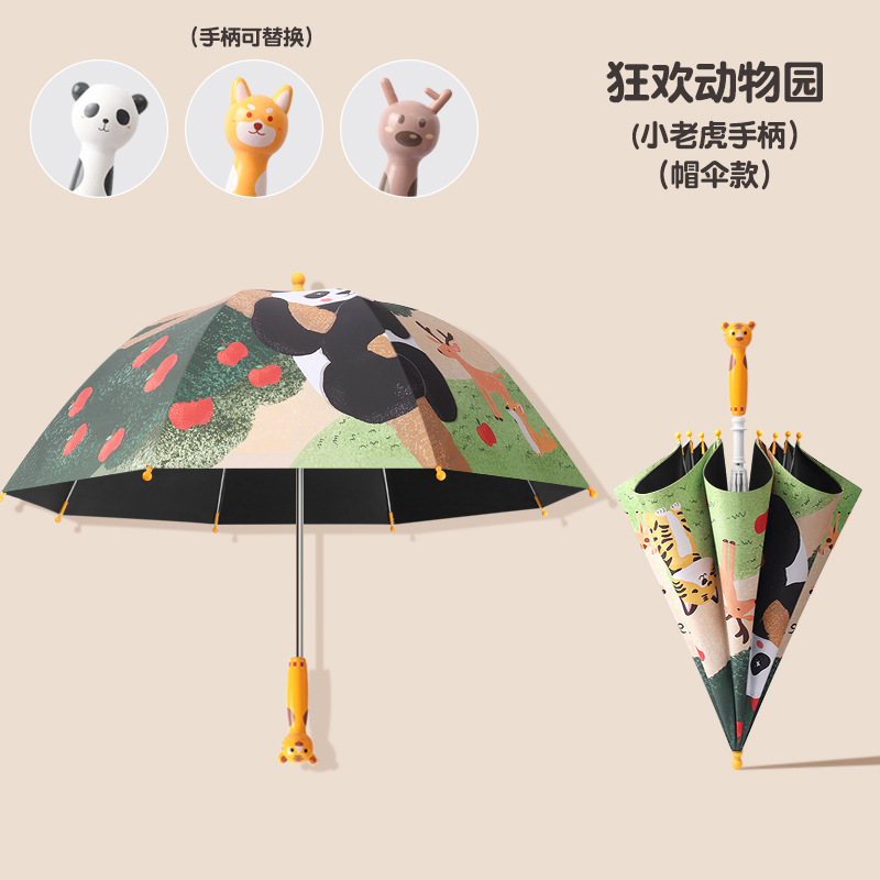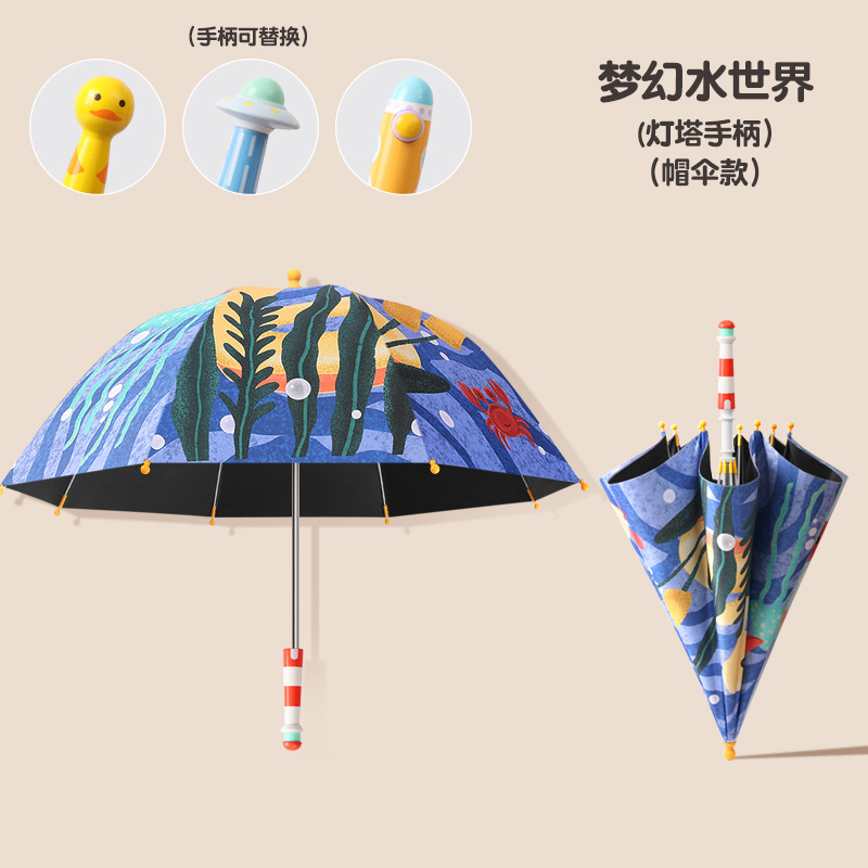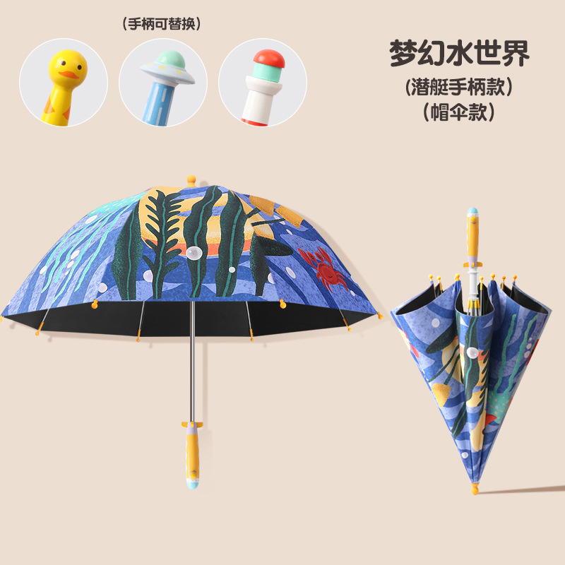 新款晴雨两用卡通雨伞儿童黑胶防晒拱形遮阳伞幼儿园轻便伞直杆