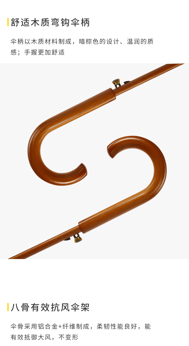 长柄8骨雨伞弯柄自动伞加固简约小清新木柄广告伞可定制高尔夫伞