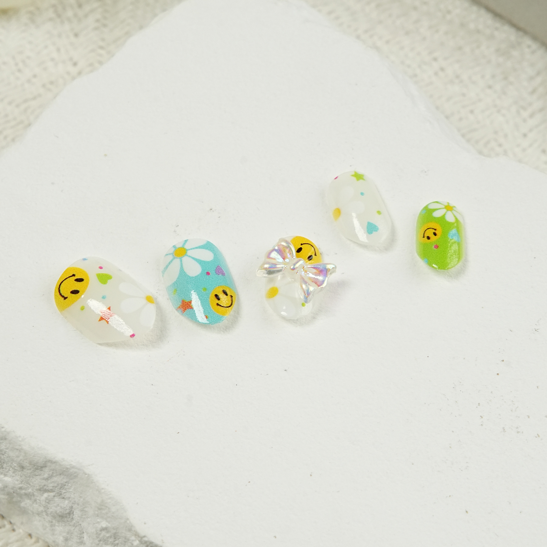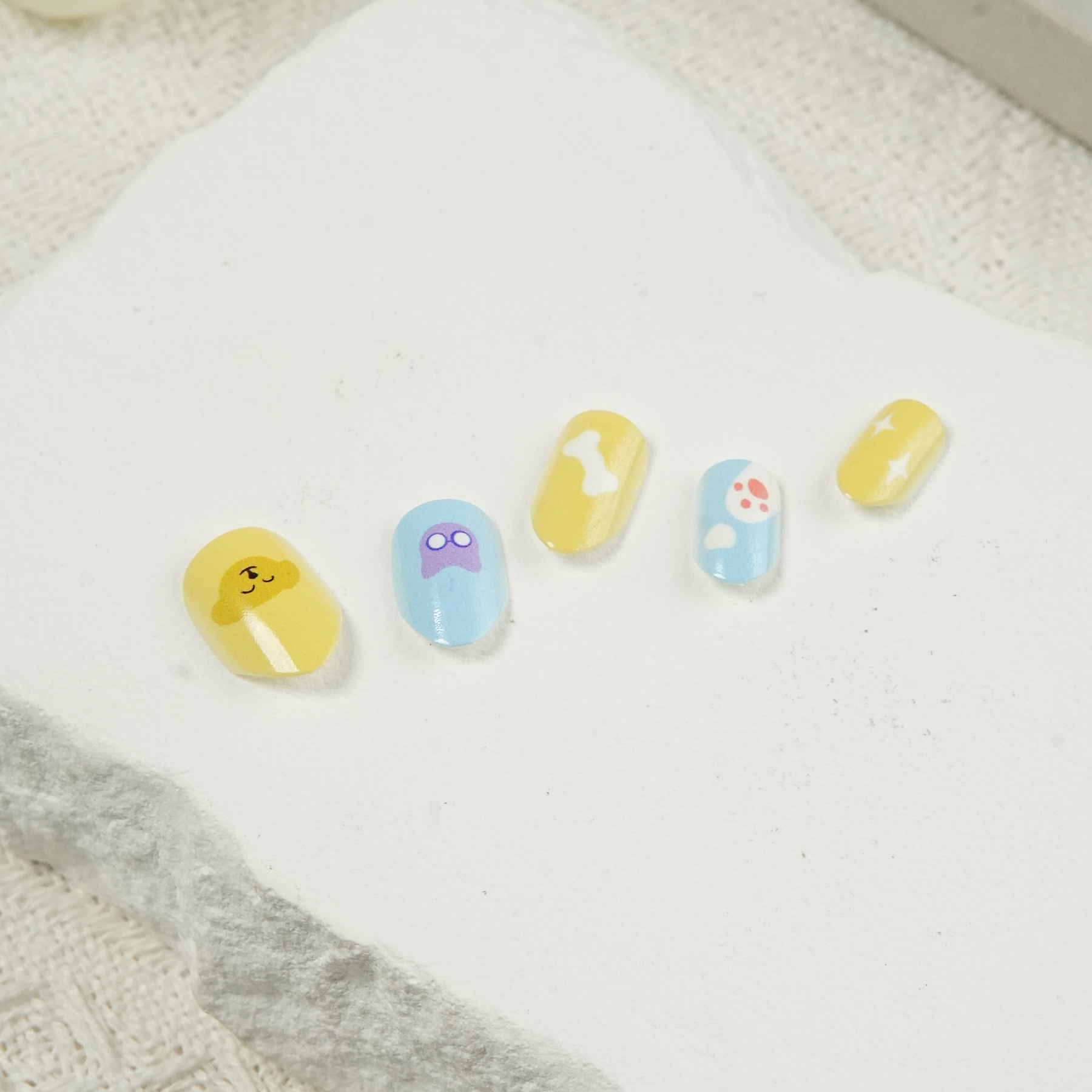 现货可爱花朵儿童甲背胶穿戴甲自粘胶杏仁儿童黄色欧美商超可售