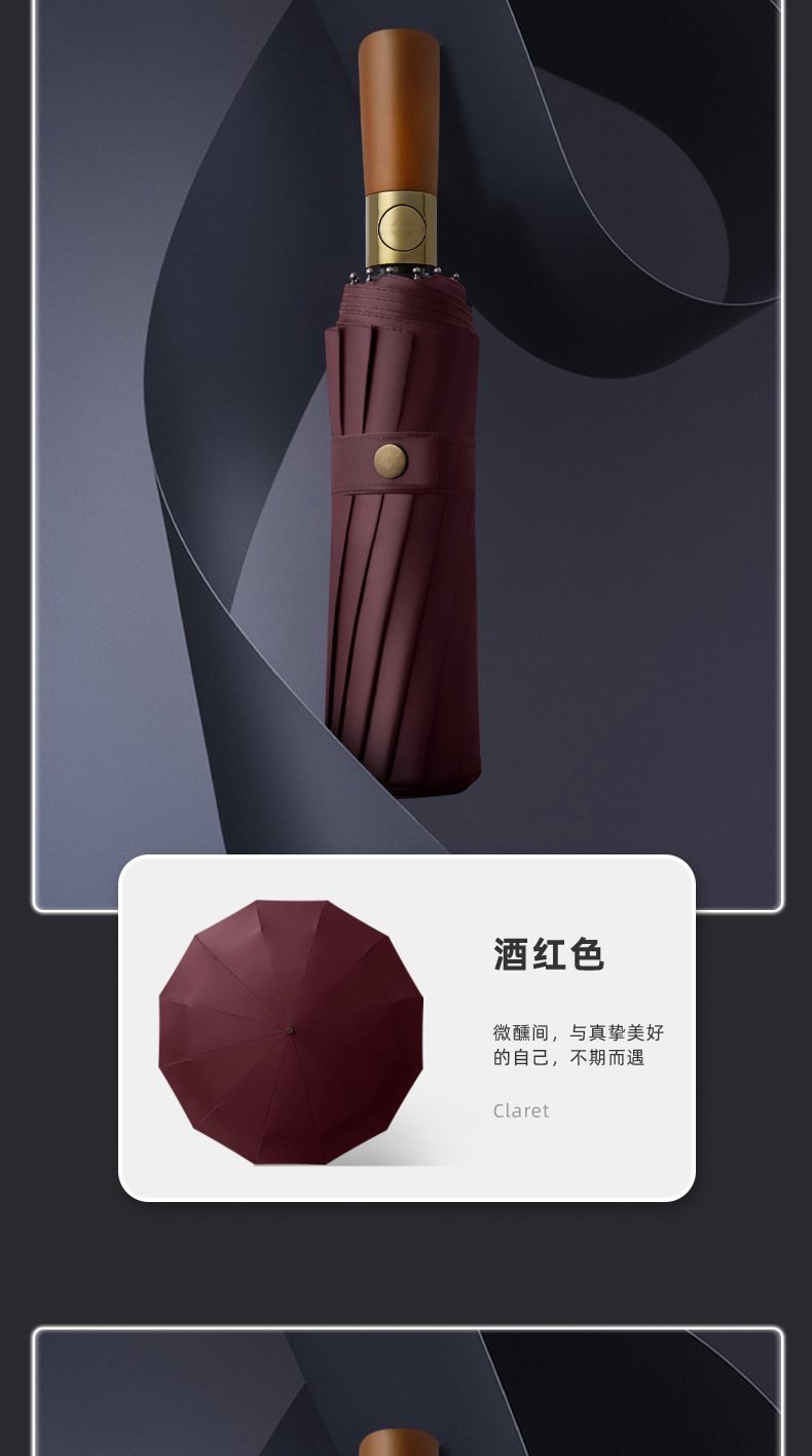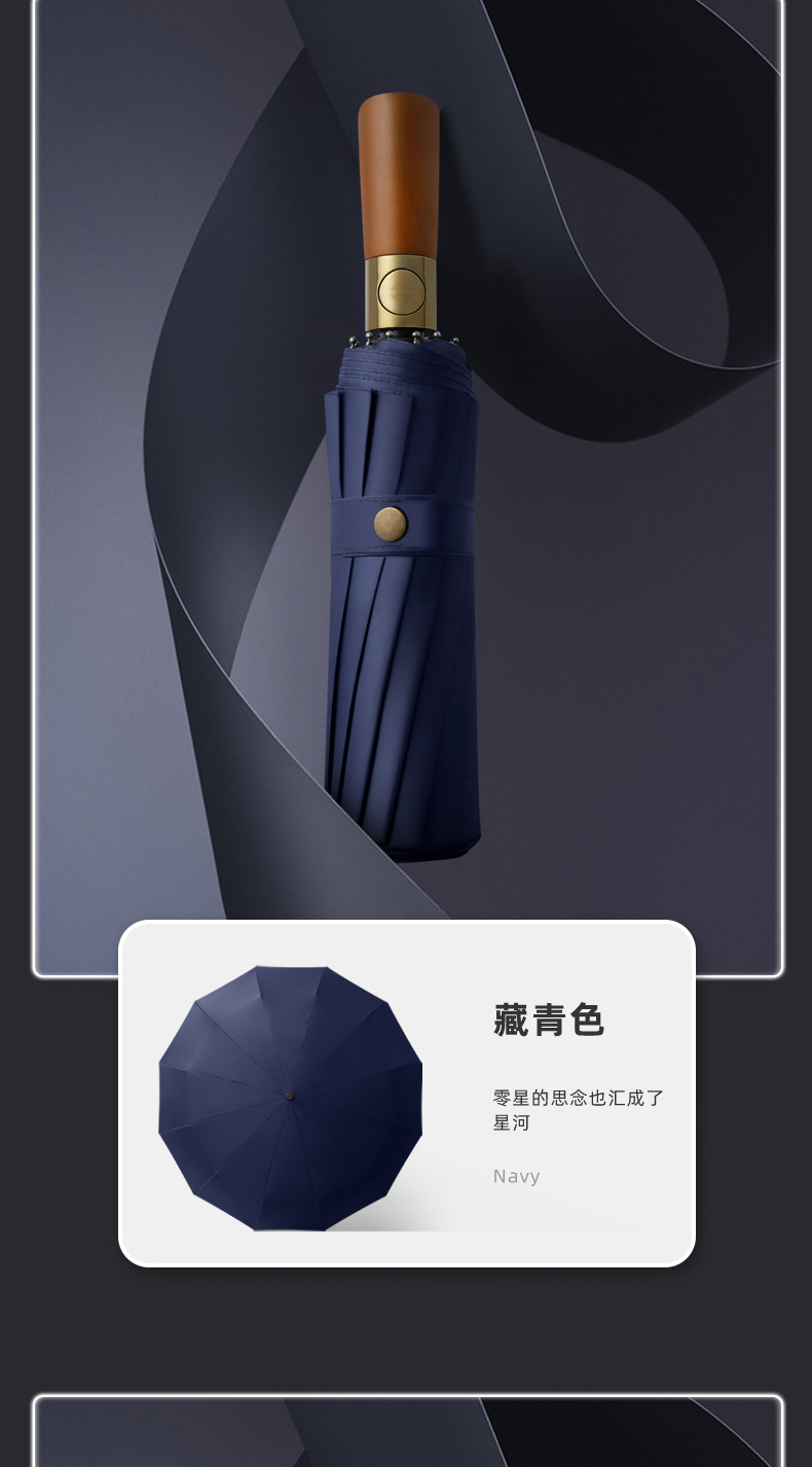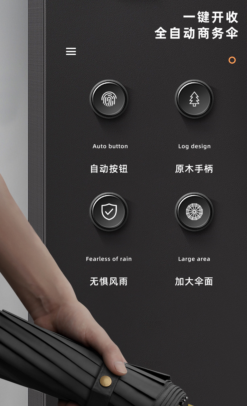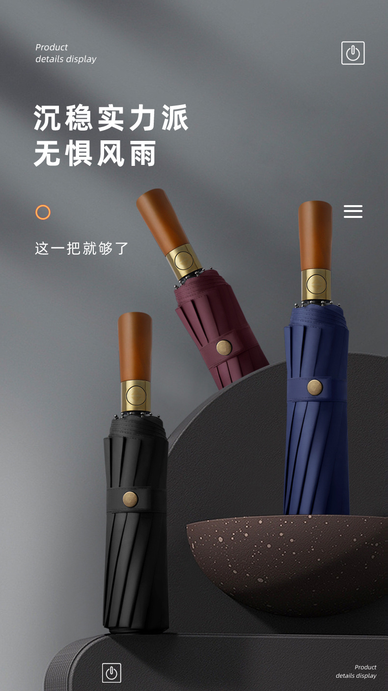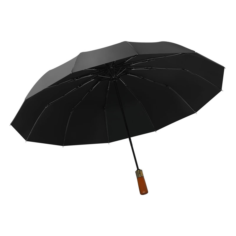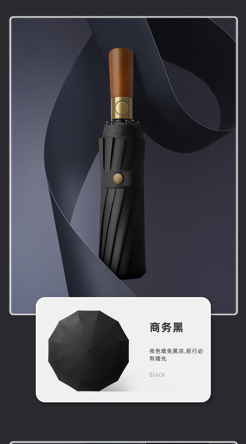 自动12骨伞原木手柄晴雨伞男士商务折叠伞印刷logo雨伞加印广告伞