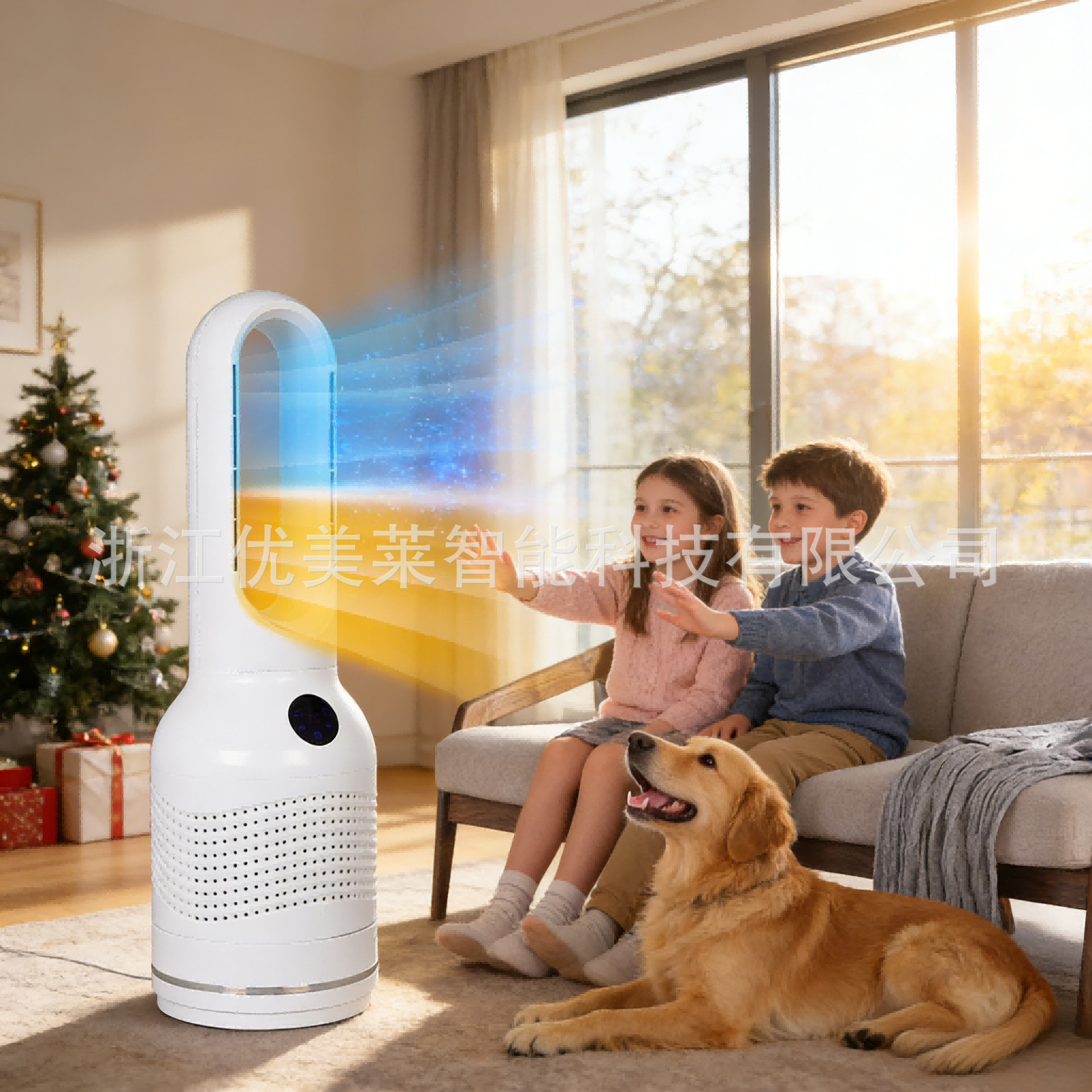 新款家用便携落地静音电风扇立式冷暖净化三合一速热舒适无叶风扇