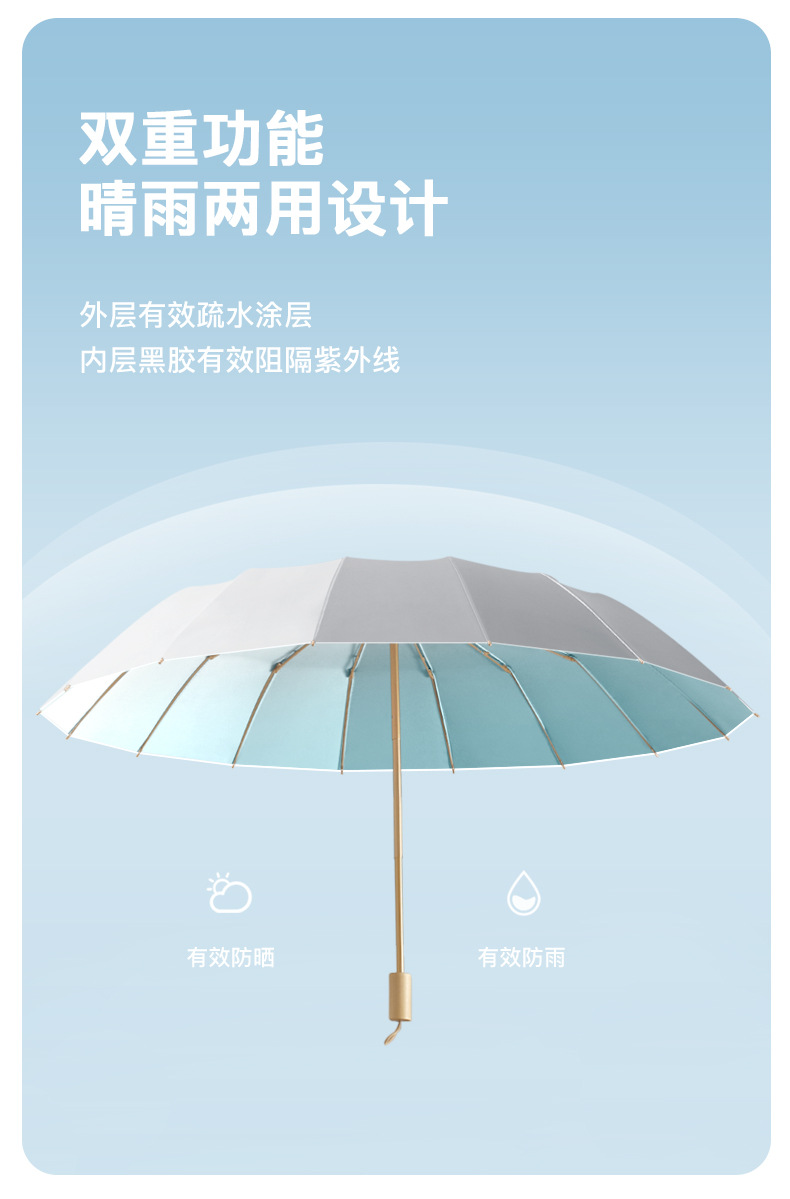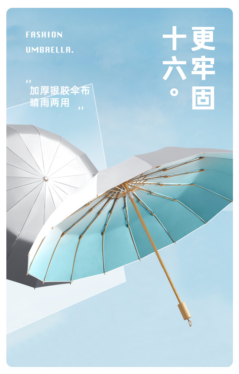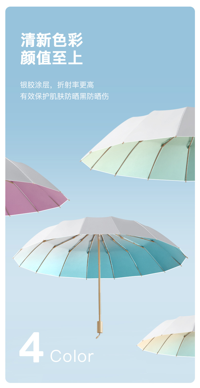 16骨三折遮阳伞钛银防晒伞防紫外线时尚渐变晴雨两用可定制太阳伞