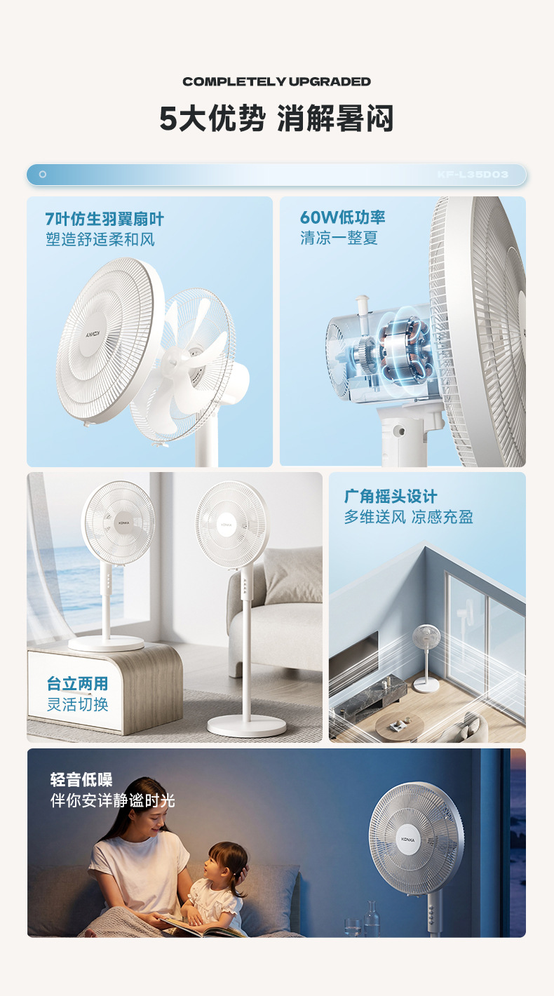 康佳新款电风扇家用大风力静音台式办公室宿舍加厚底盘落地扇批发