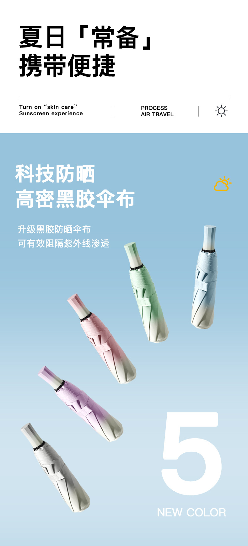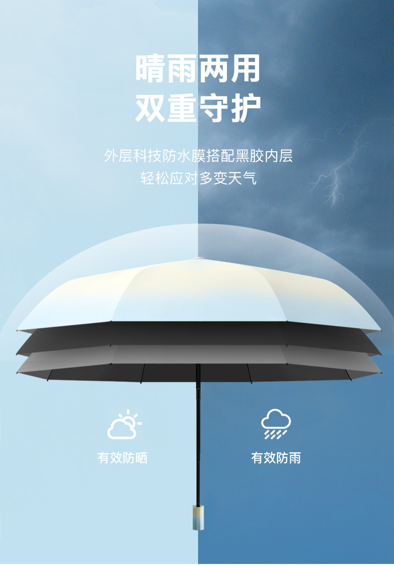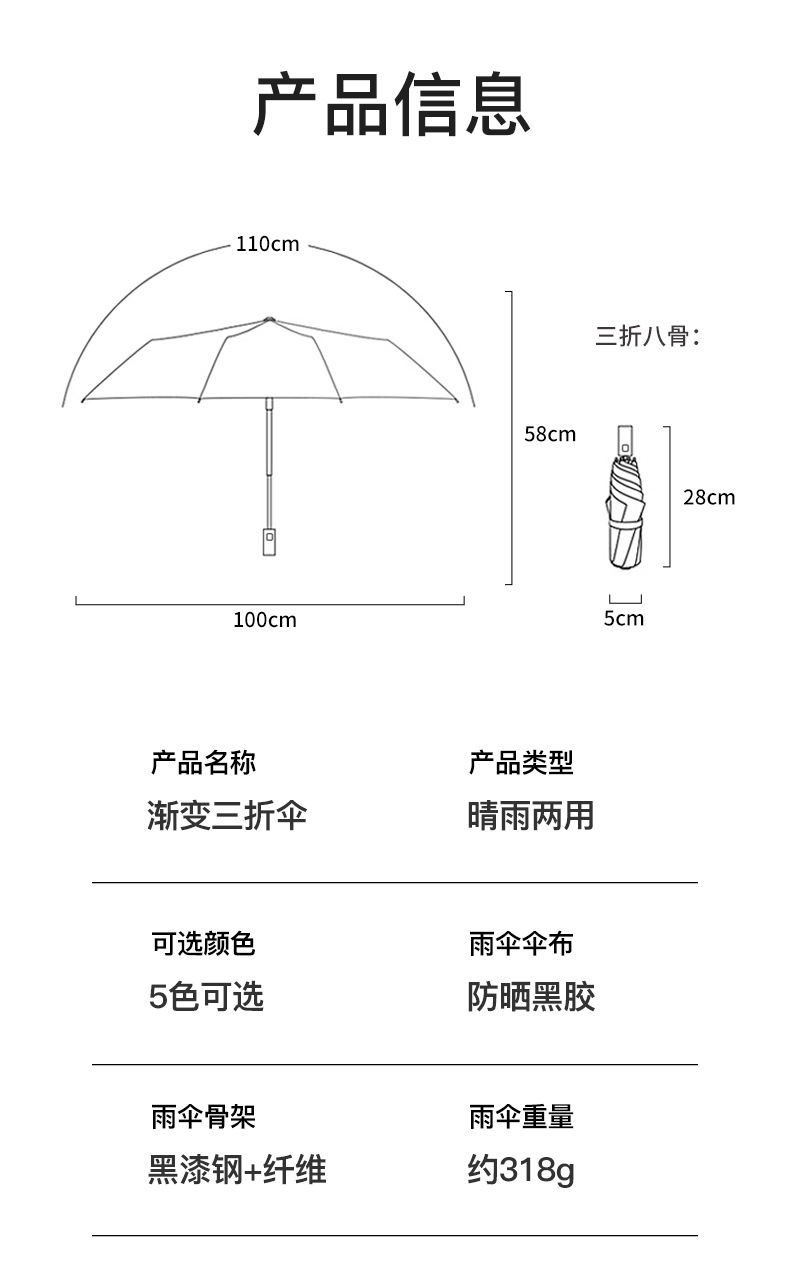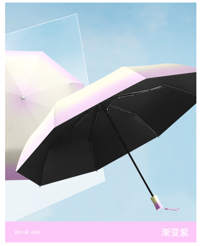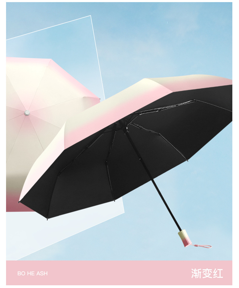 8骨手开渐变雨伞遮阳伞黑胶防晒晴雨两用太阳伞防紫外线大量批发