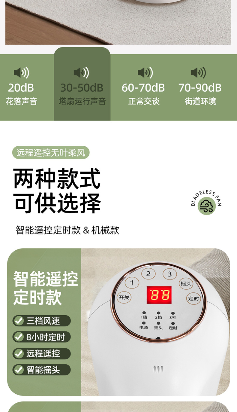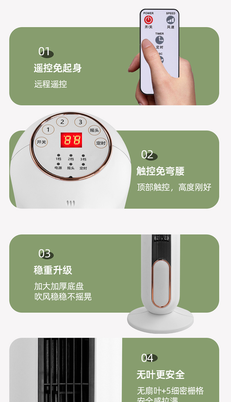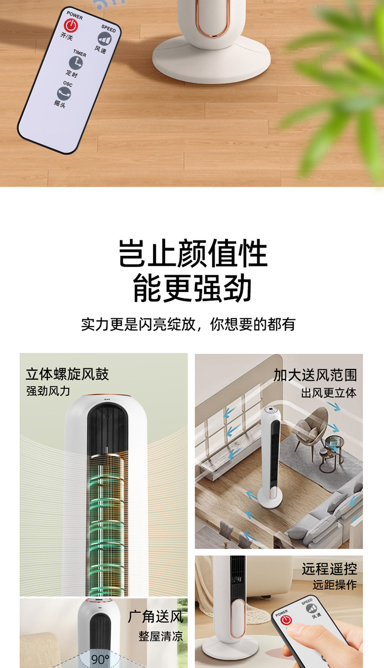 跨境工厂电风扇塔扇家用静音落地扇宿舍遥控定时电扇立式摇头无叶