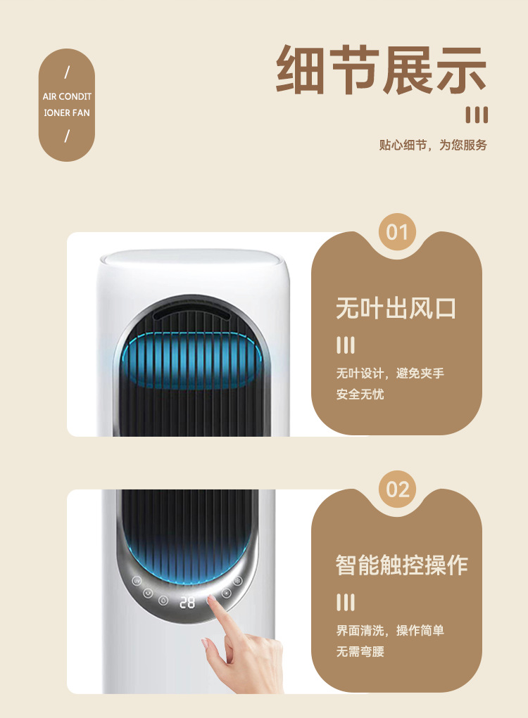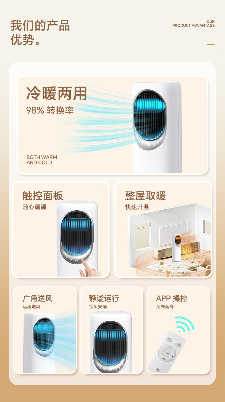 跨境外贸移动小空调5G冷暖两用立式家用5A智能无叶扇暖风机批发