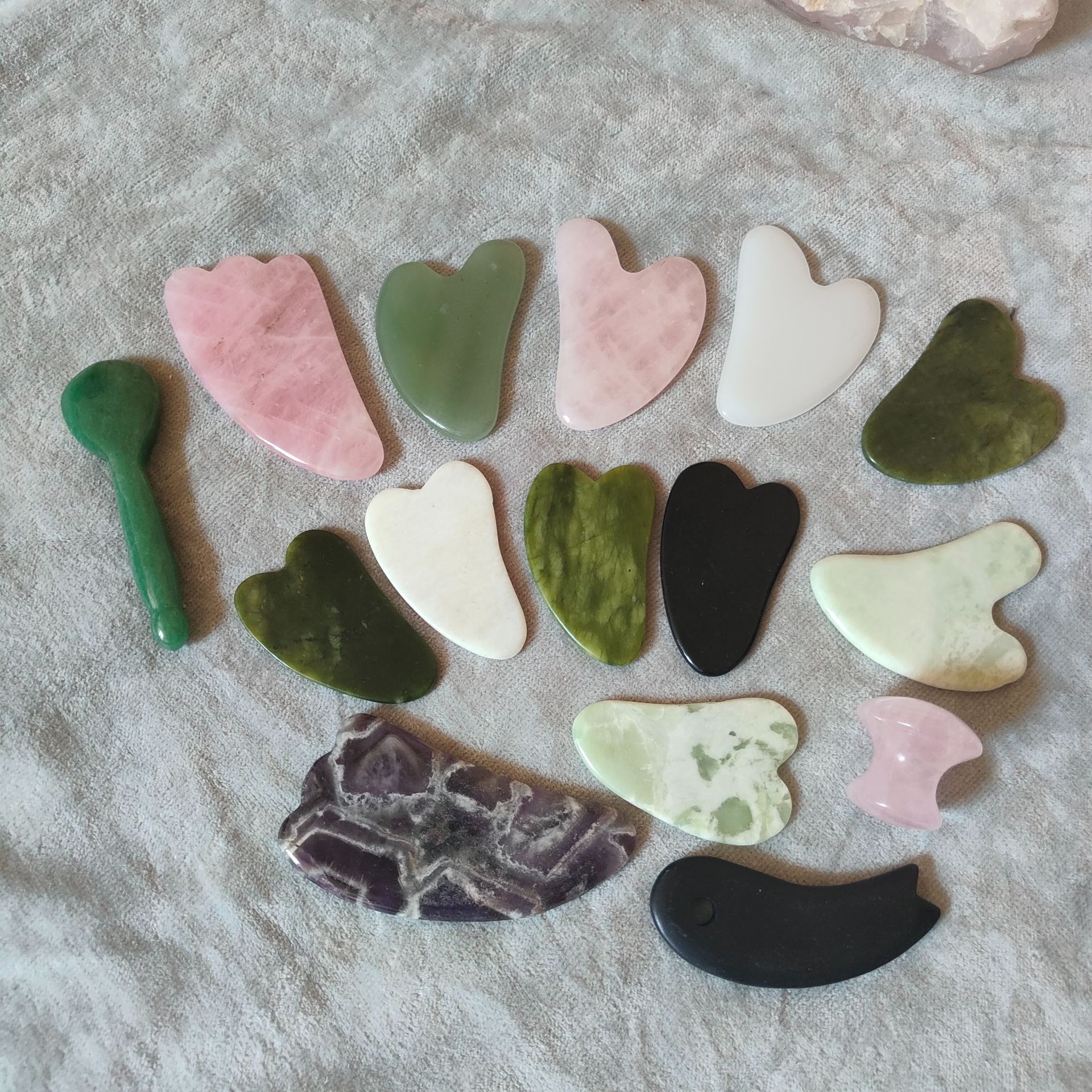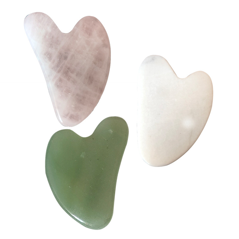 牛角玉石滚轮刮痧板面部专用 脸部按摩器批发 岫玉粉晶手动刮痧仪