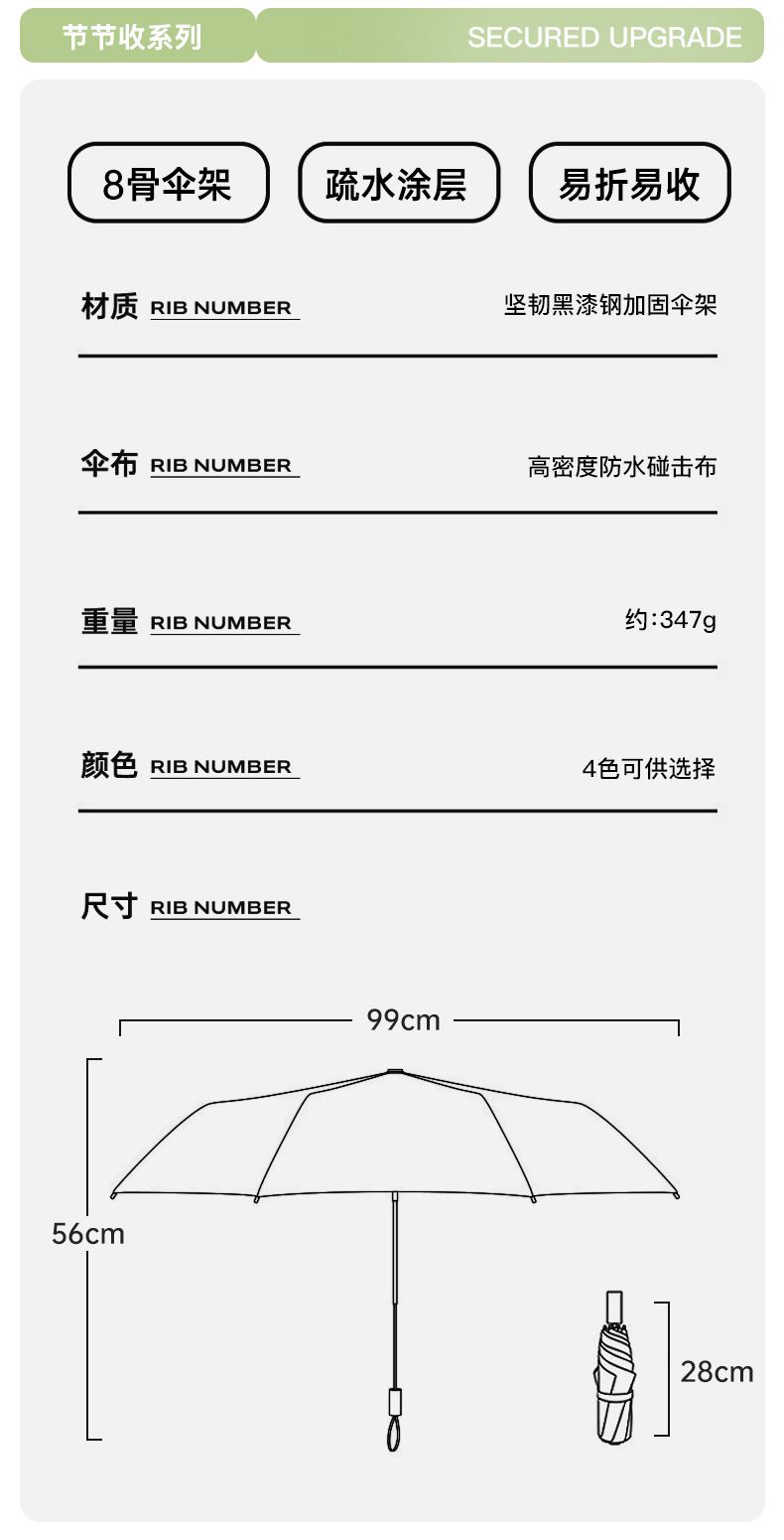 全自动8骨易折叠加固雨伞节节收便携伞女三折创意广告伞批发定制