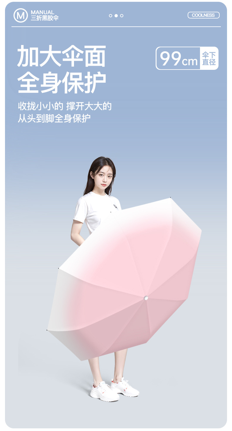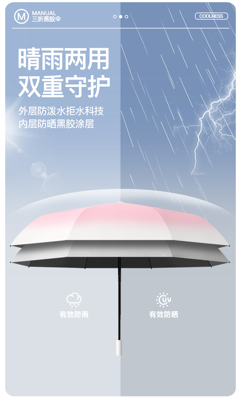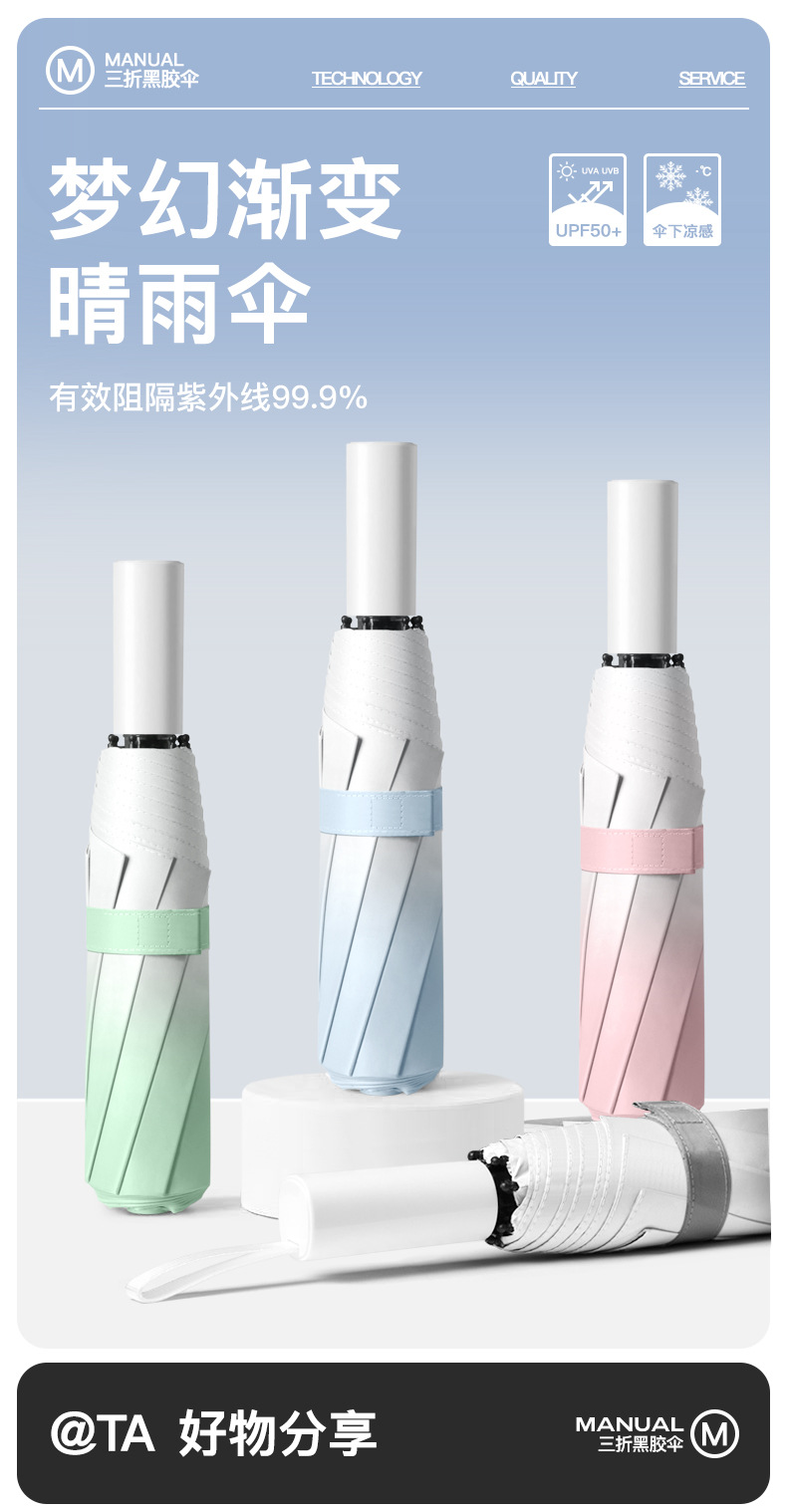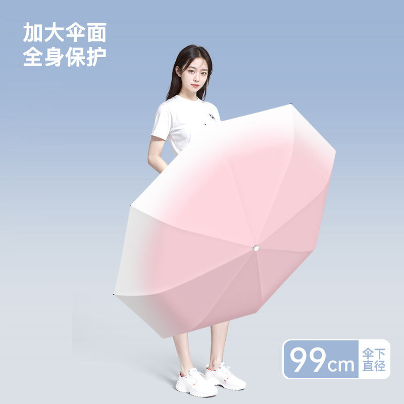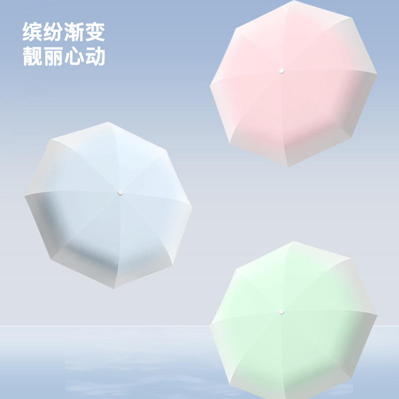 批发渐变手开晴雨三折伞防晒遮阳女士太阳伞黑胶防紫外线雨伞定制