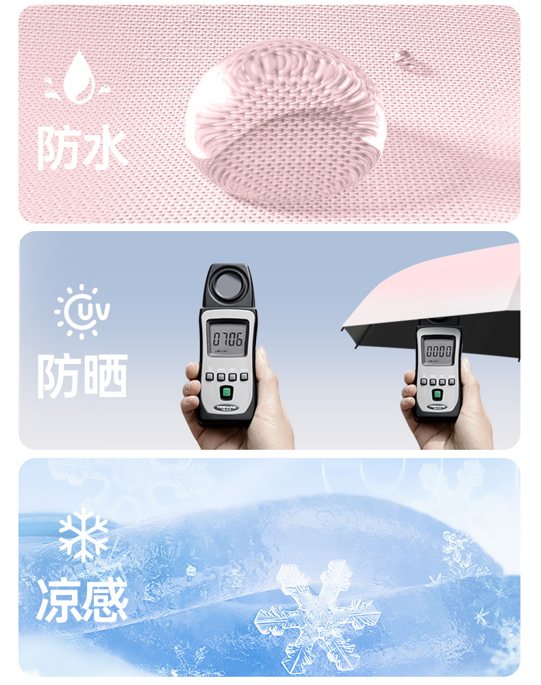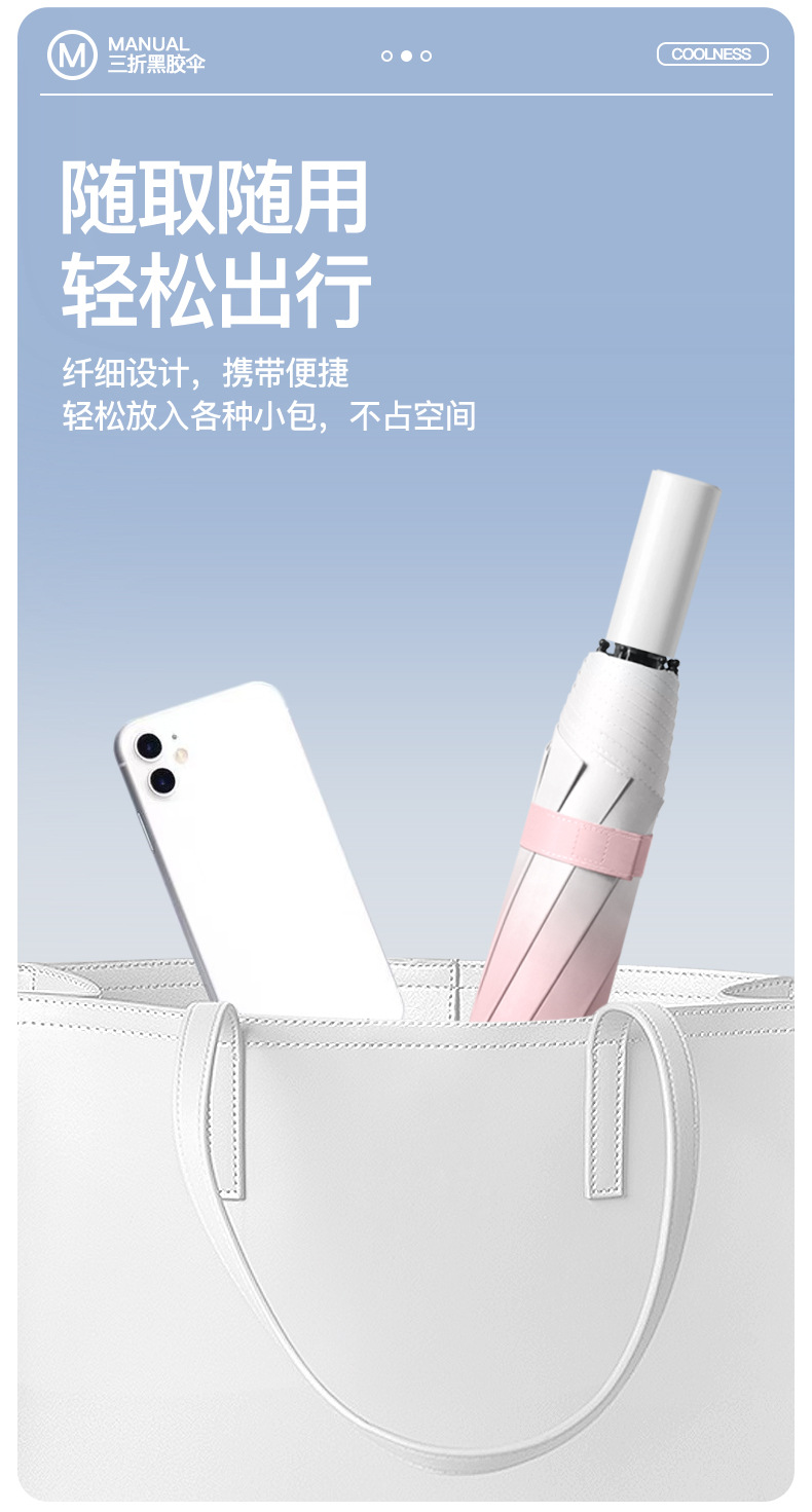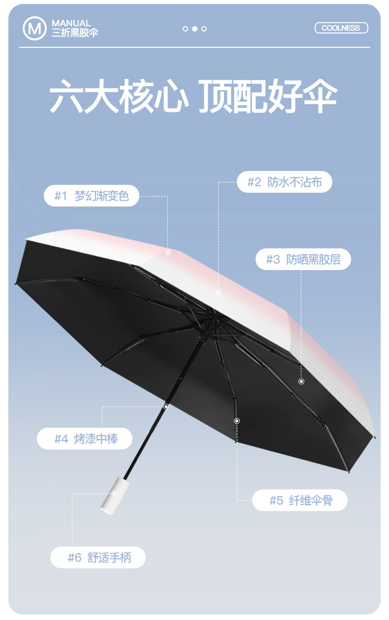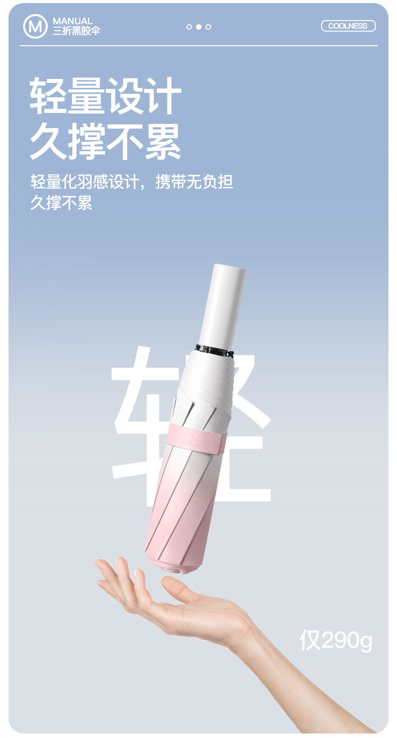 批发渐变手开晴雨三折伞防晒遮阳女士太阳伞黑胶防紫外线雨伞定制
