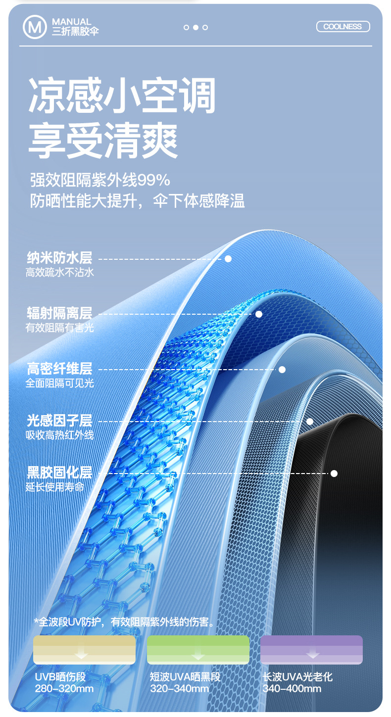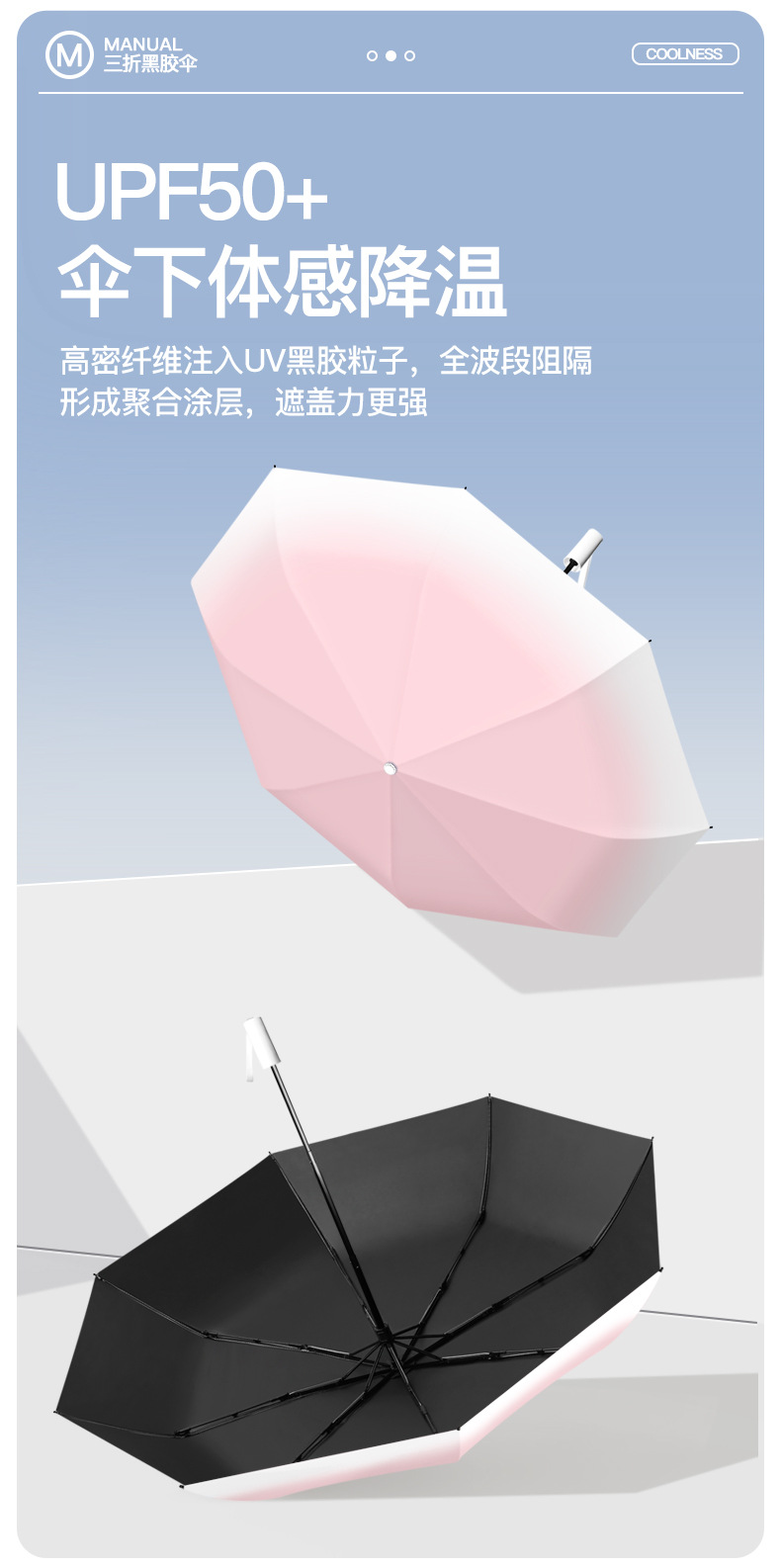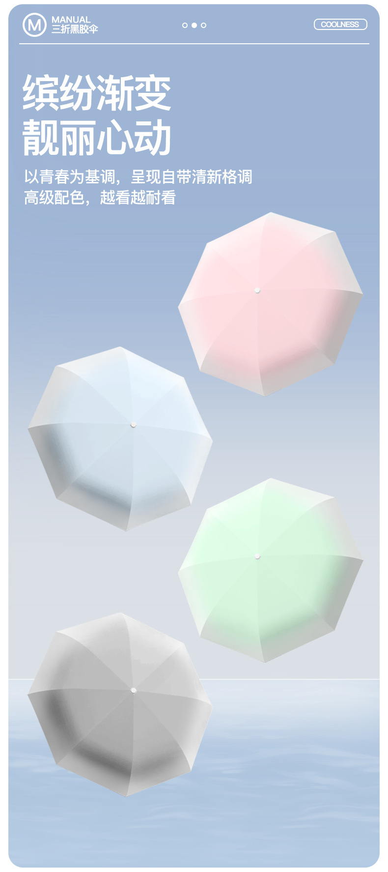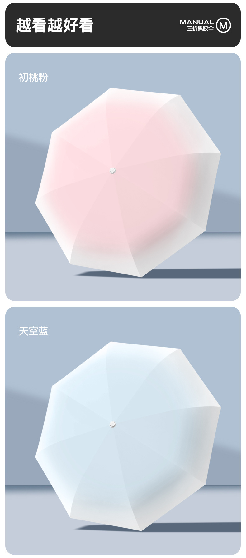 批发渐变手开晴雨三折伞防晒遮阳女士太阳伞黑胶防紫外线雨伞定制