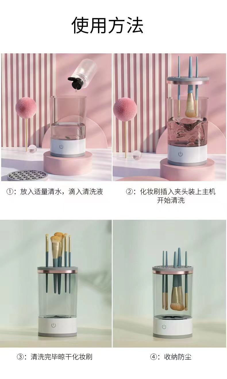 跨境abs材质化妆刷清洗器充电式电动清洁刷子自动洗刷器速干工具
