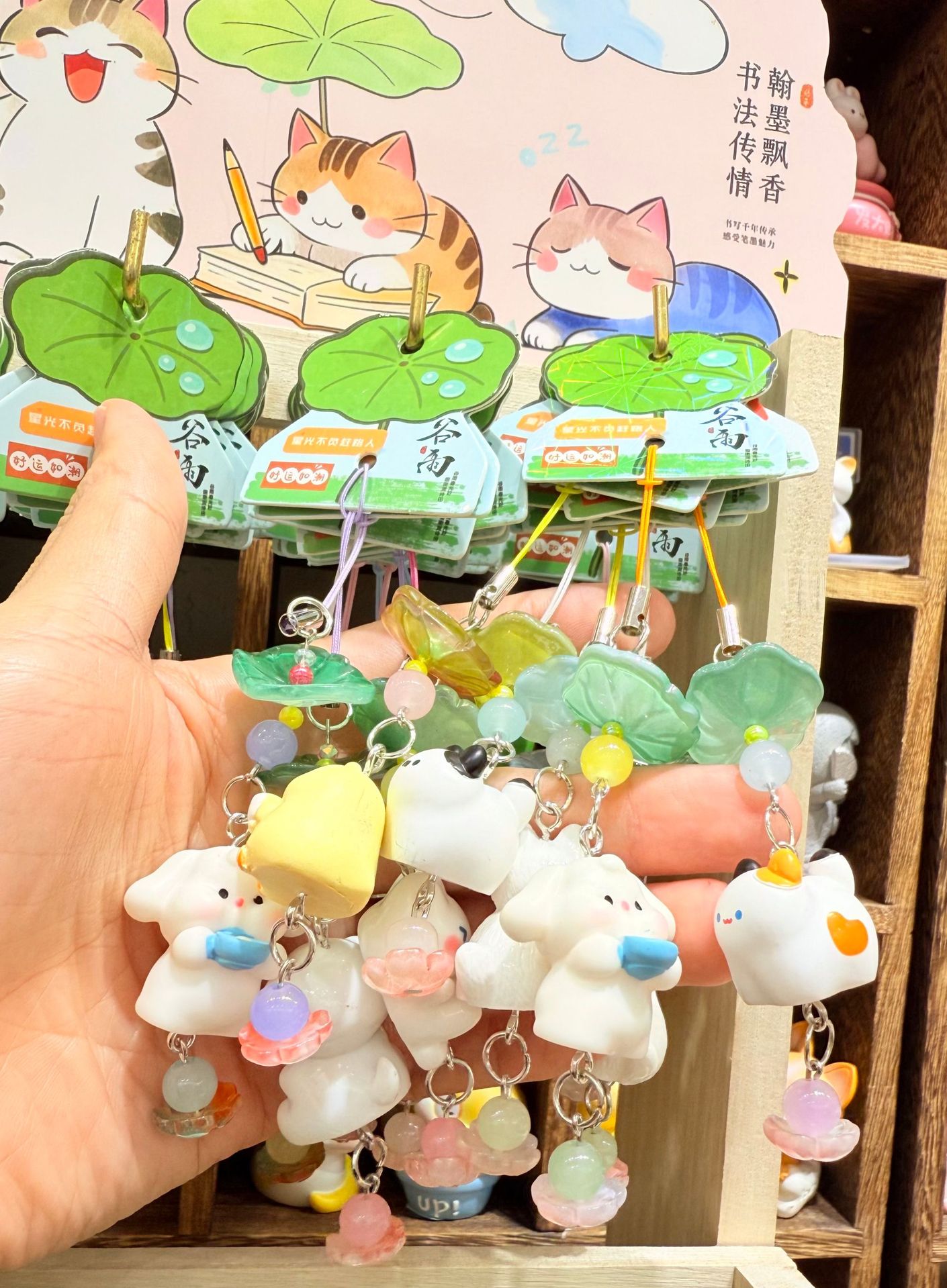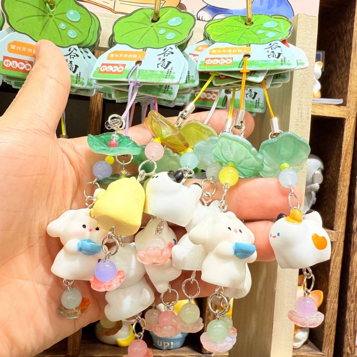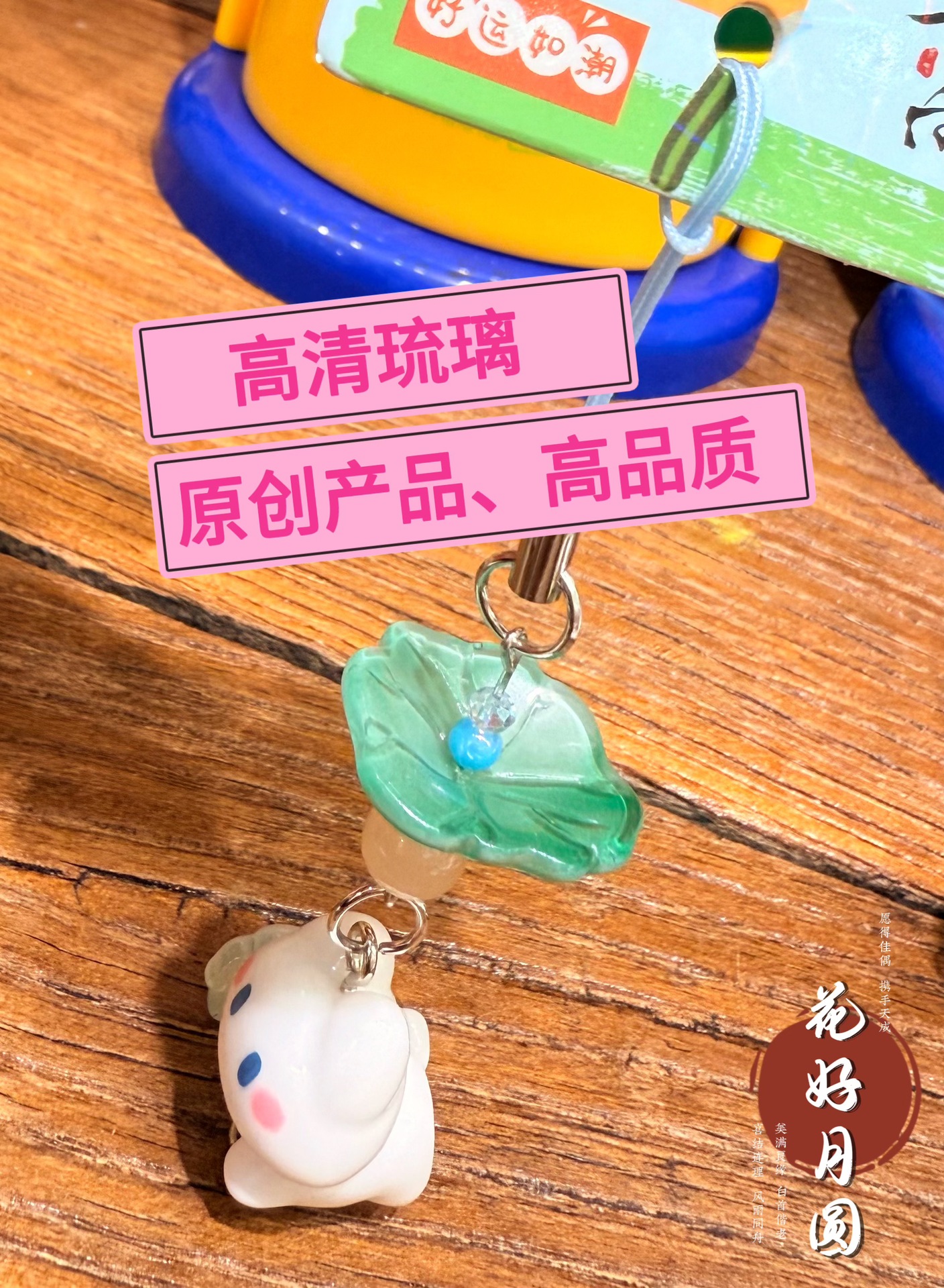 正品包邮原创荷花物语可爱卡通挂件钥匙扣高清琉璃包包挂饰带架子