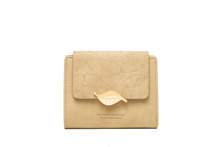 爆款钱包女士短款韩版小清新印花叶子搭扣折叠拉链迷你学生零钱包