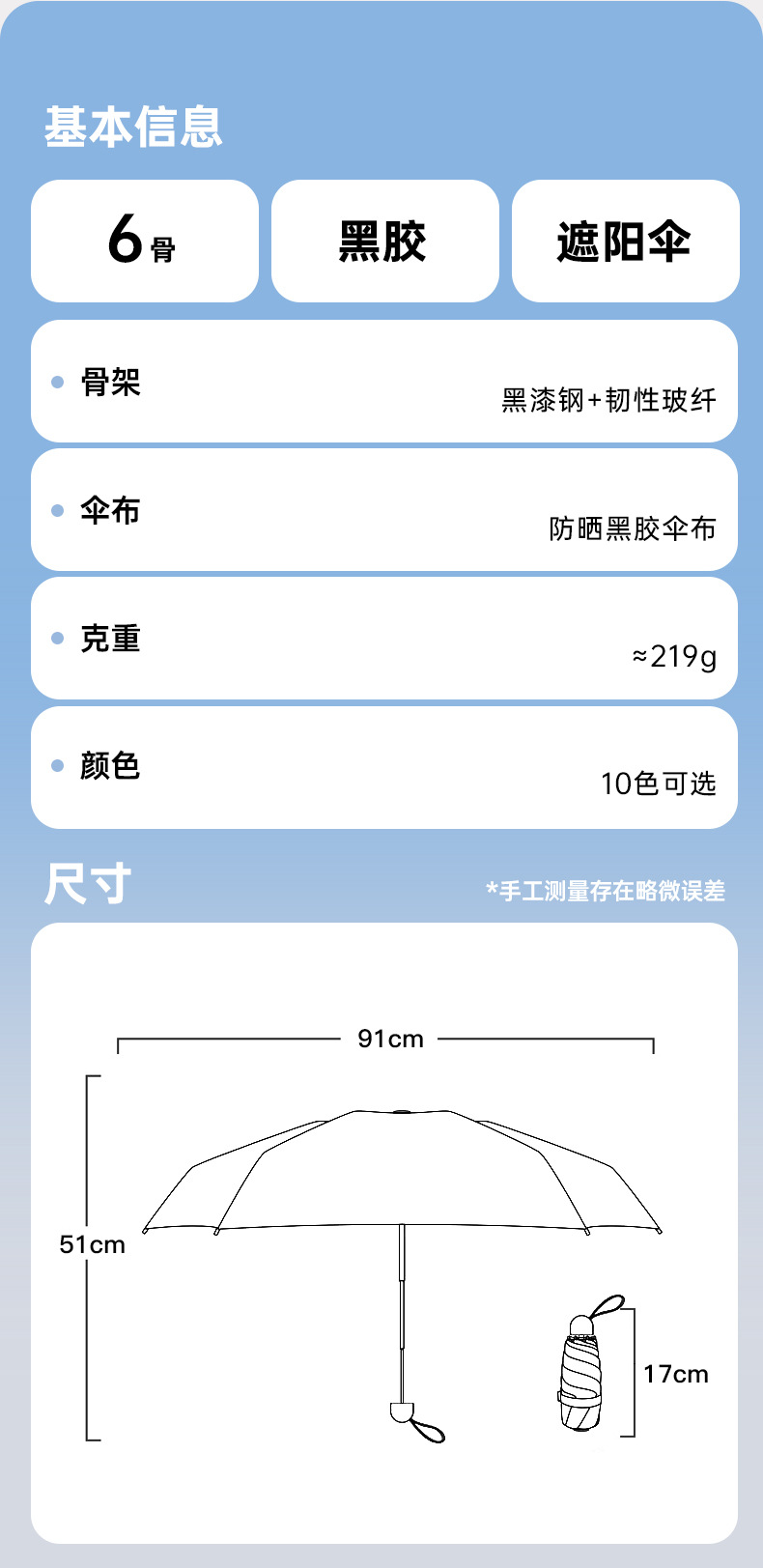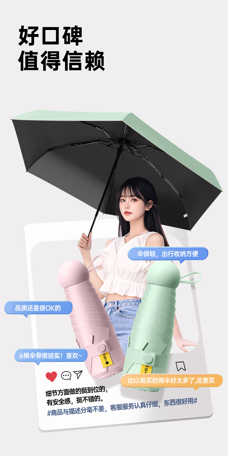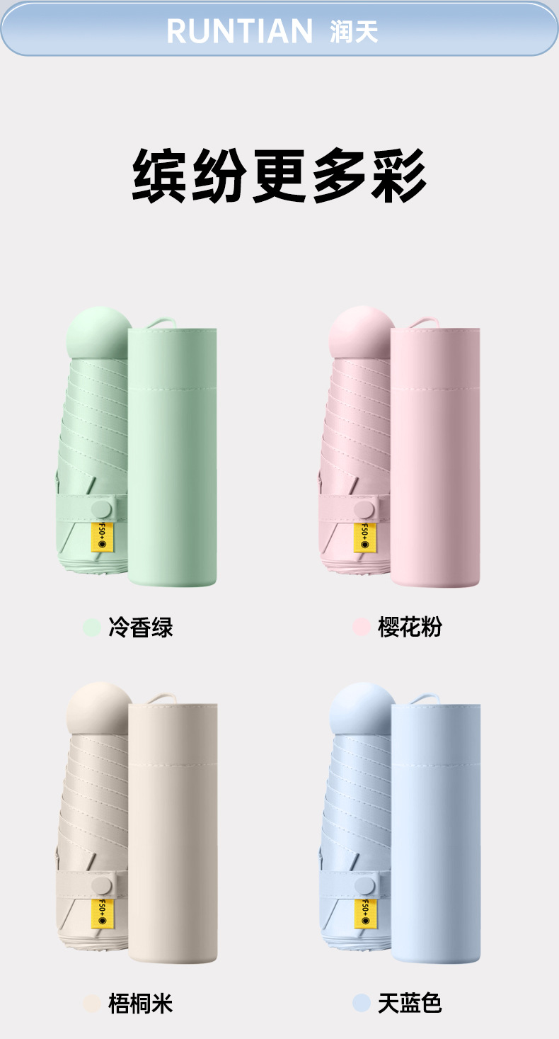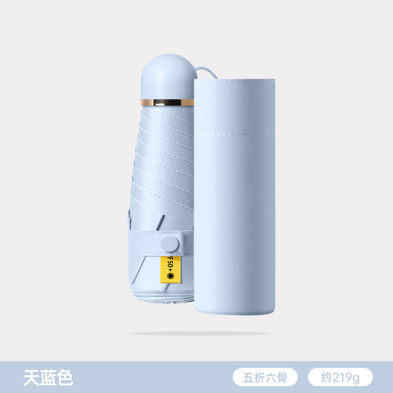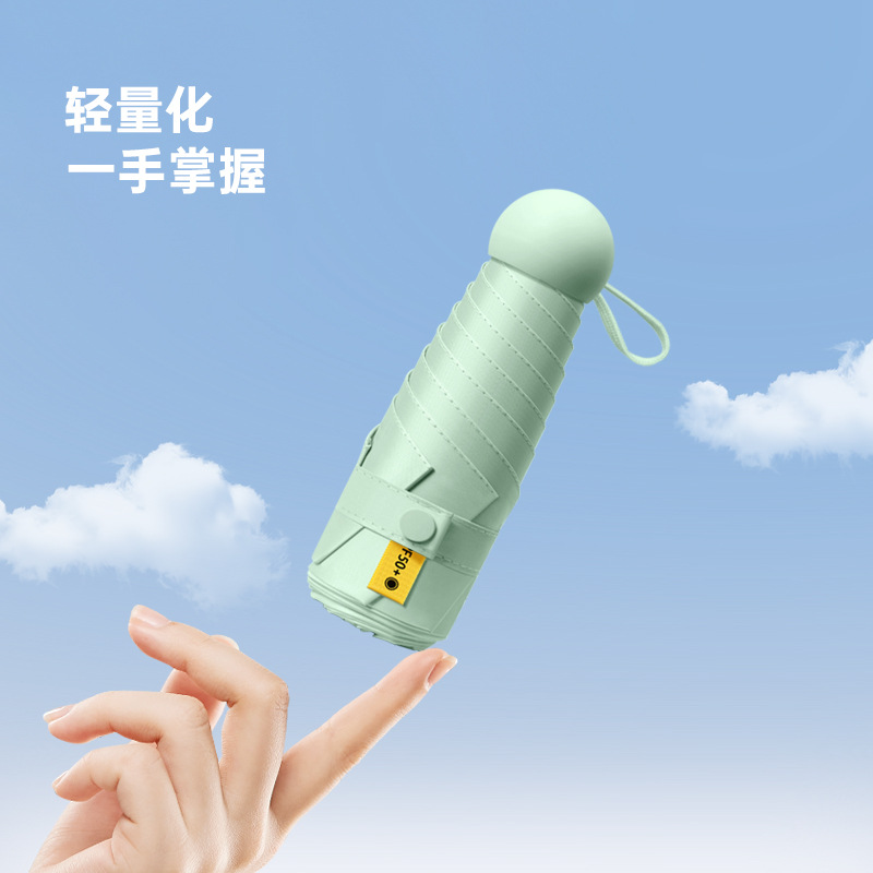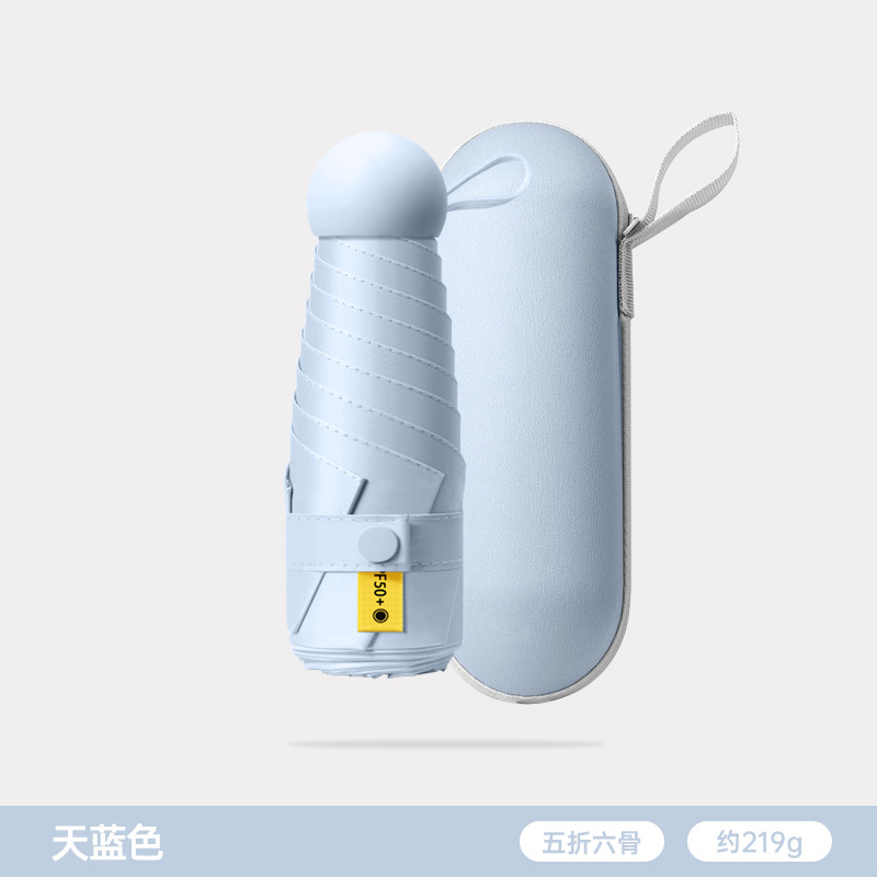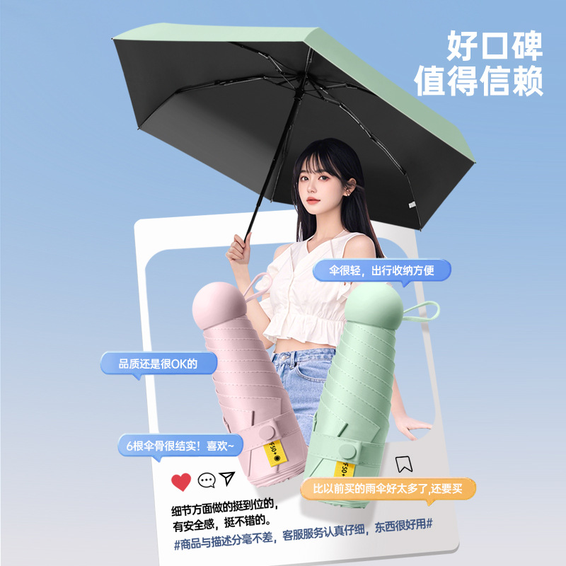 五折6骨胶囊太阳伞迷你便携口袋伞女晴雨两用防晒遮阳伞黑胶折叠