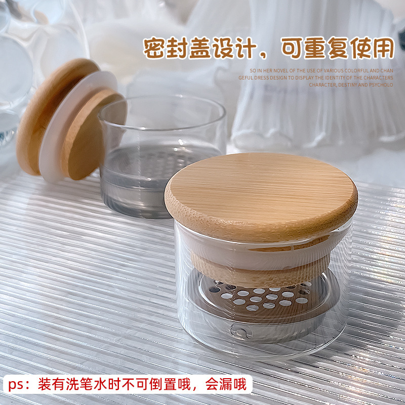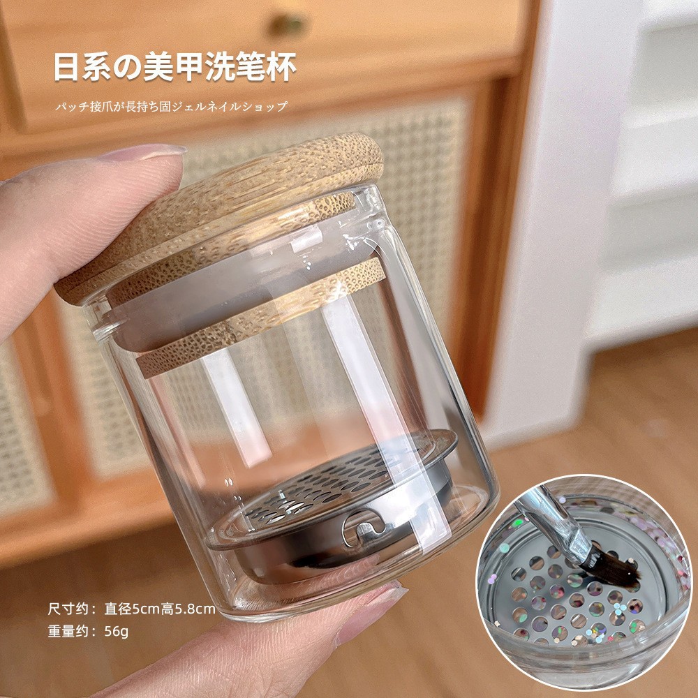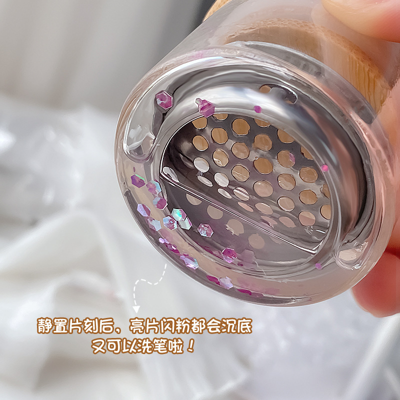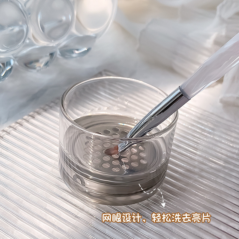 新美甲亮片洗笔杯锈钢网隔分层水晶杯笔刷洗润笔具盒带滤网清洁