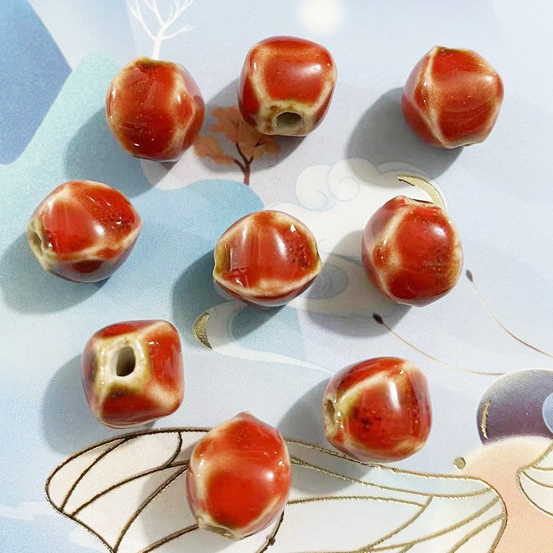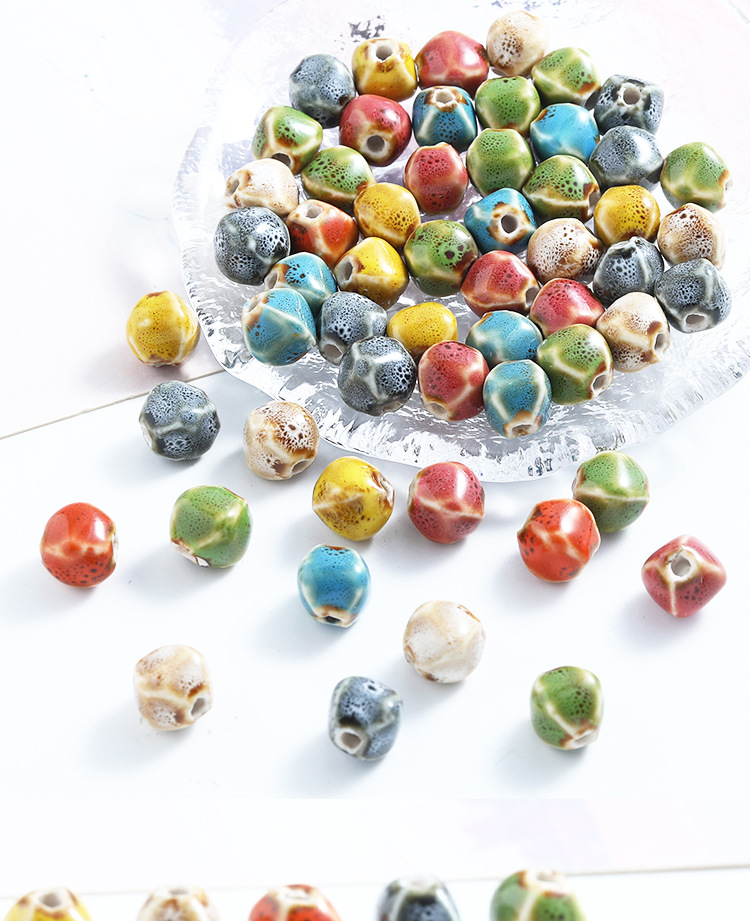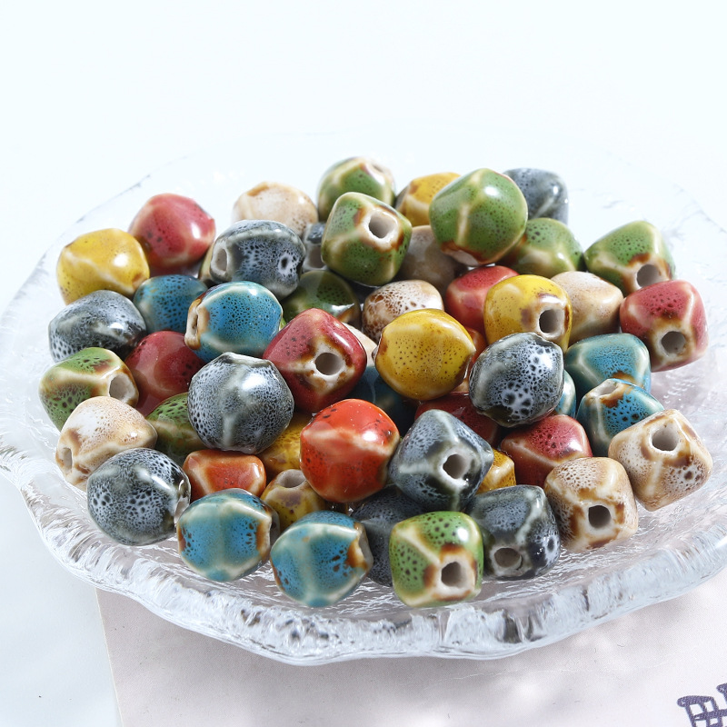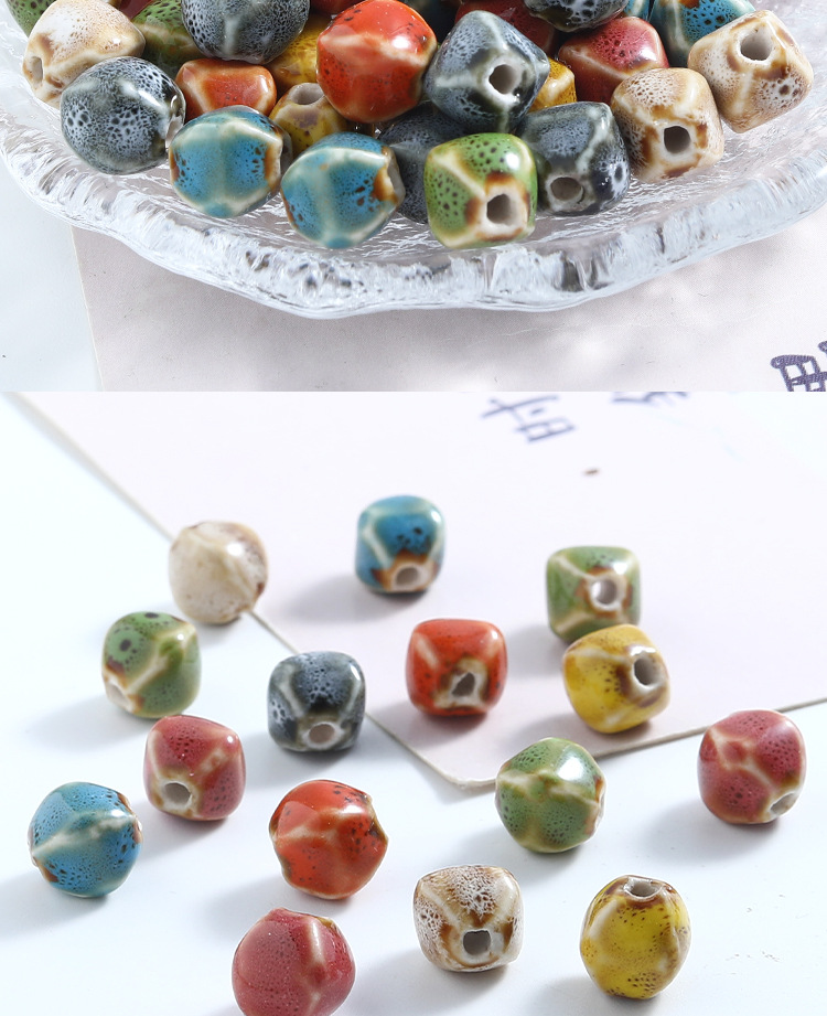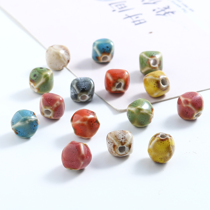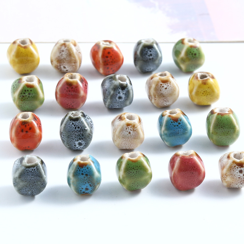 半成品直孔陶瓷珠复古多面异形珠子手串配件串珠子的材料diy饰品