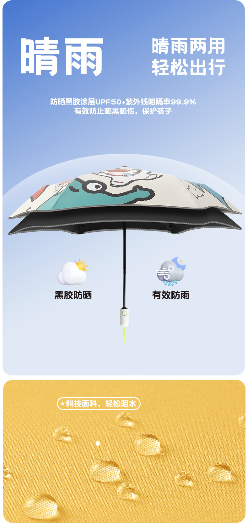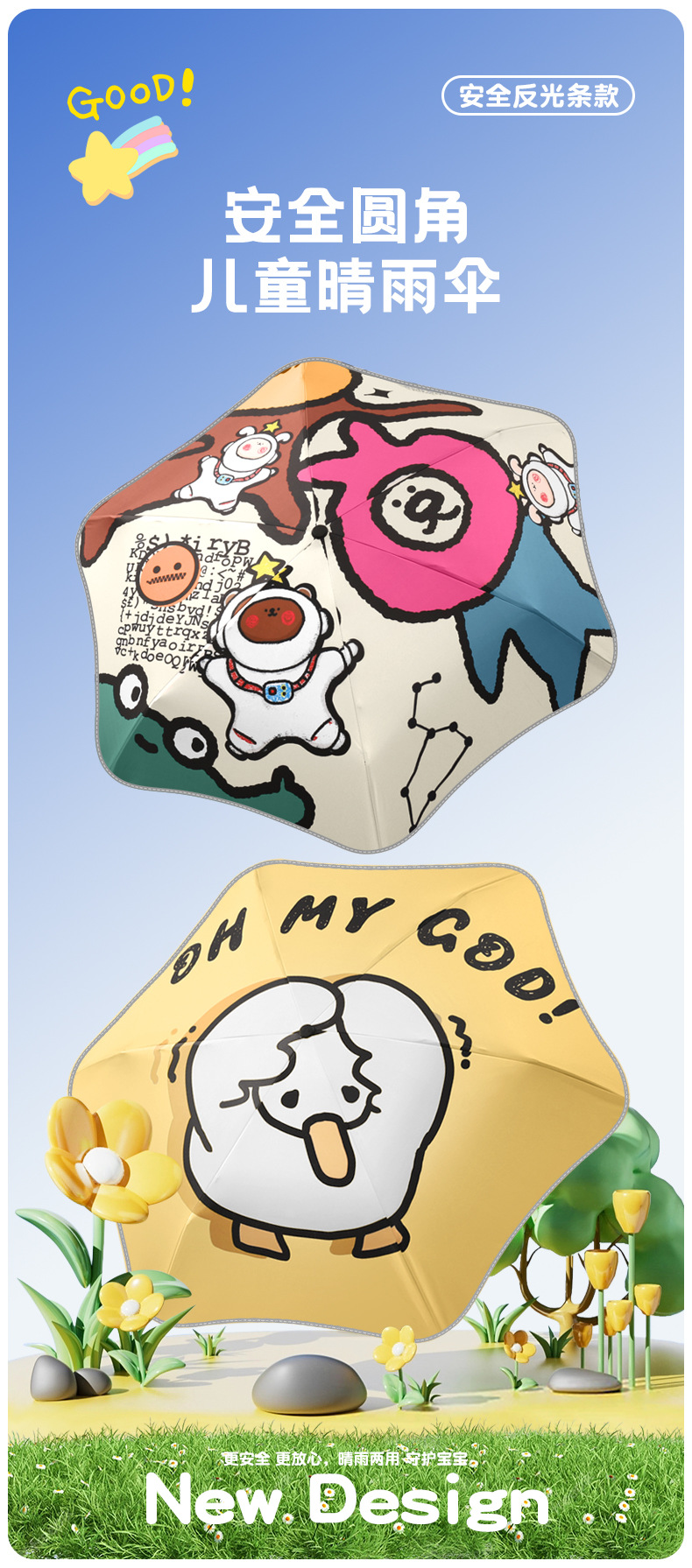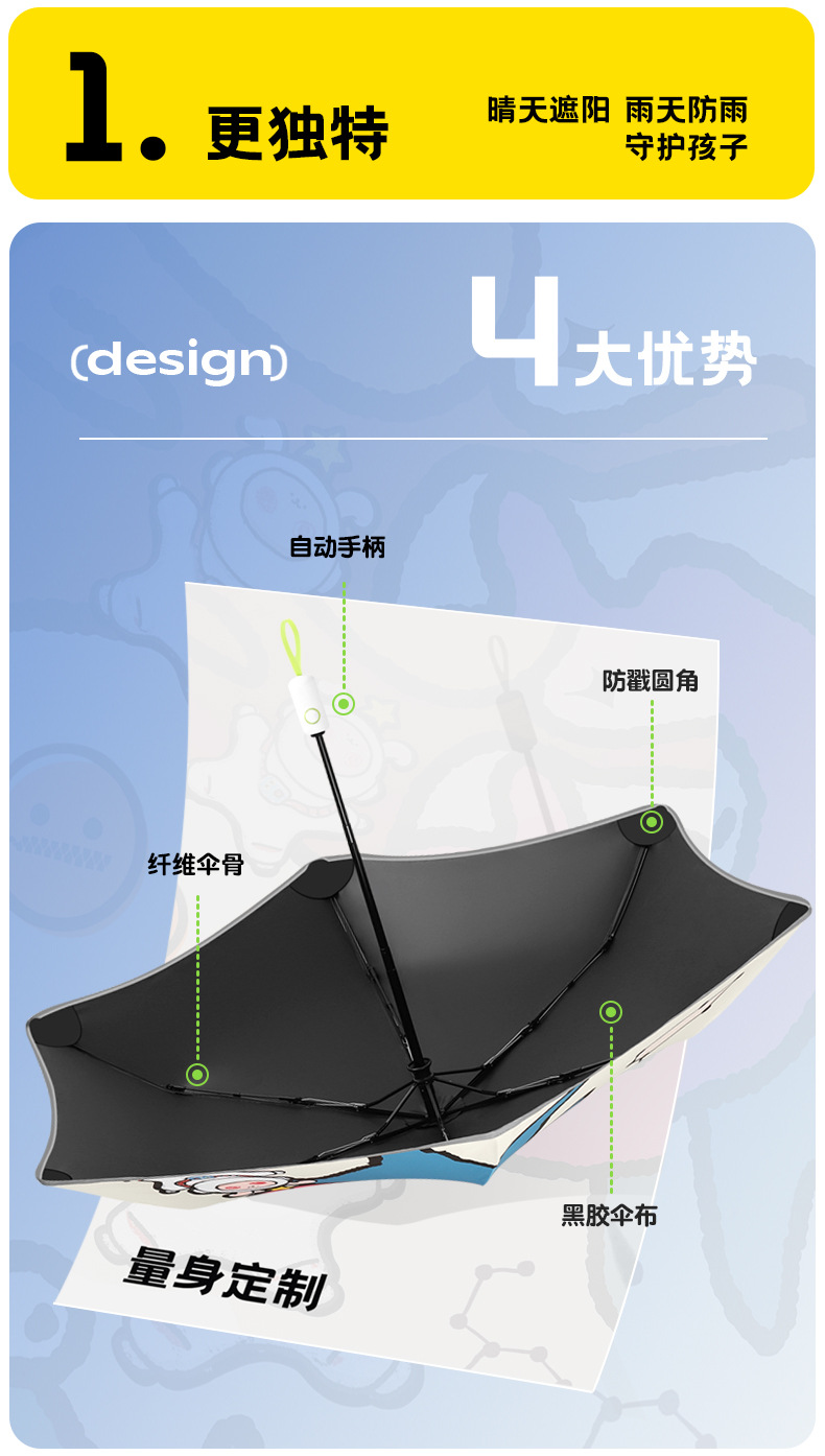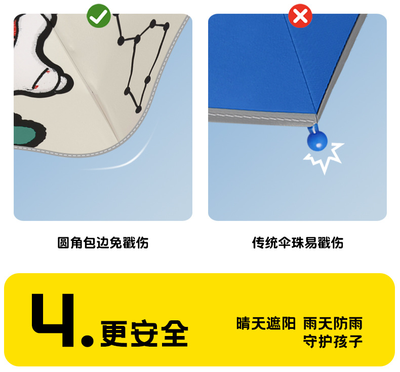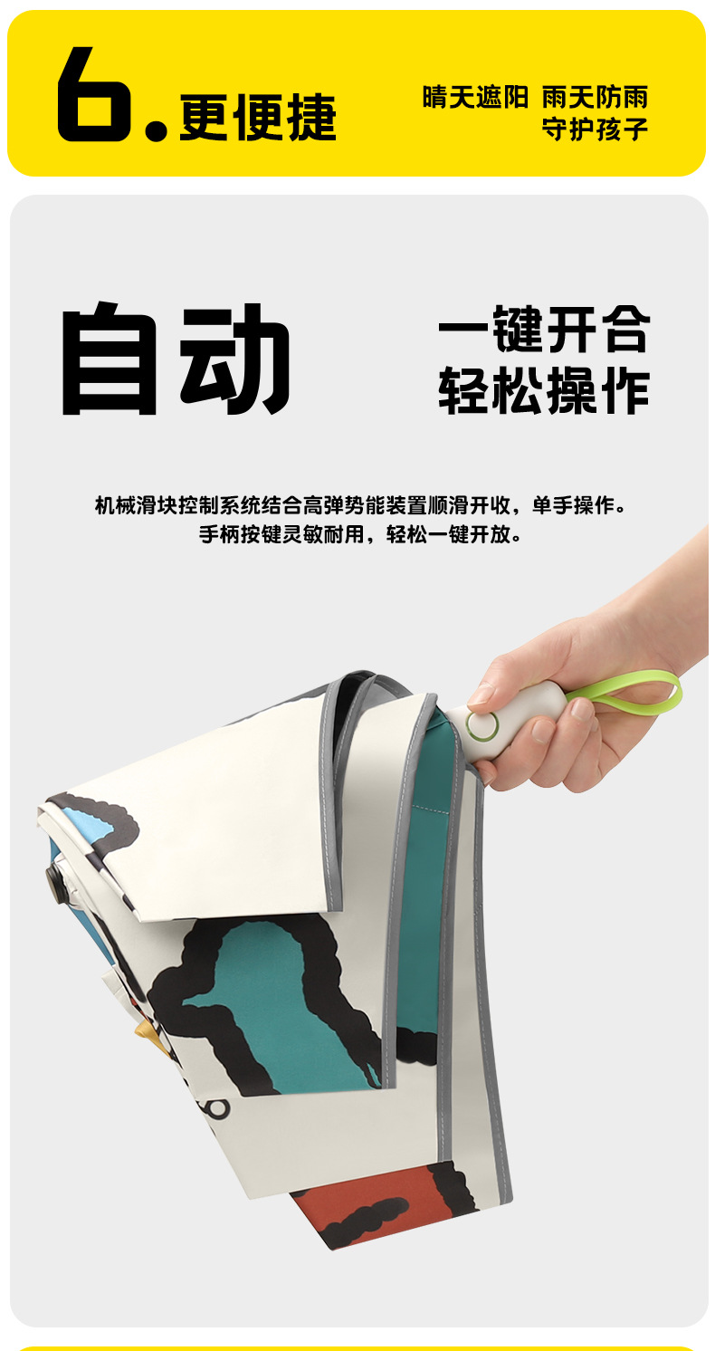 6骨全自动安全式防回弹圆角儿童雨伞男女孩晴雨两用遮阳伞防晒