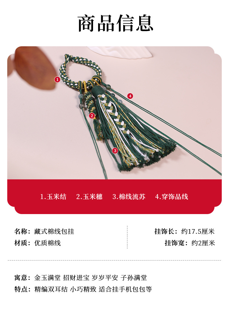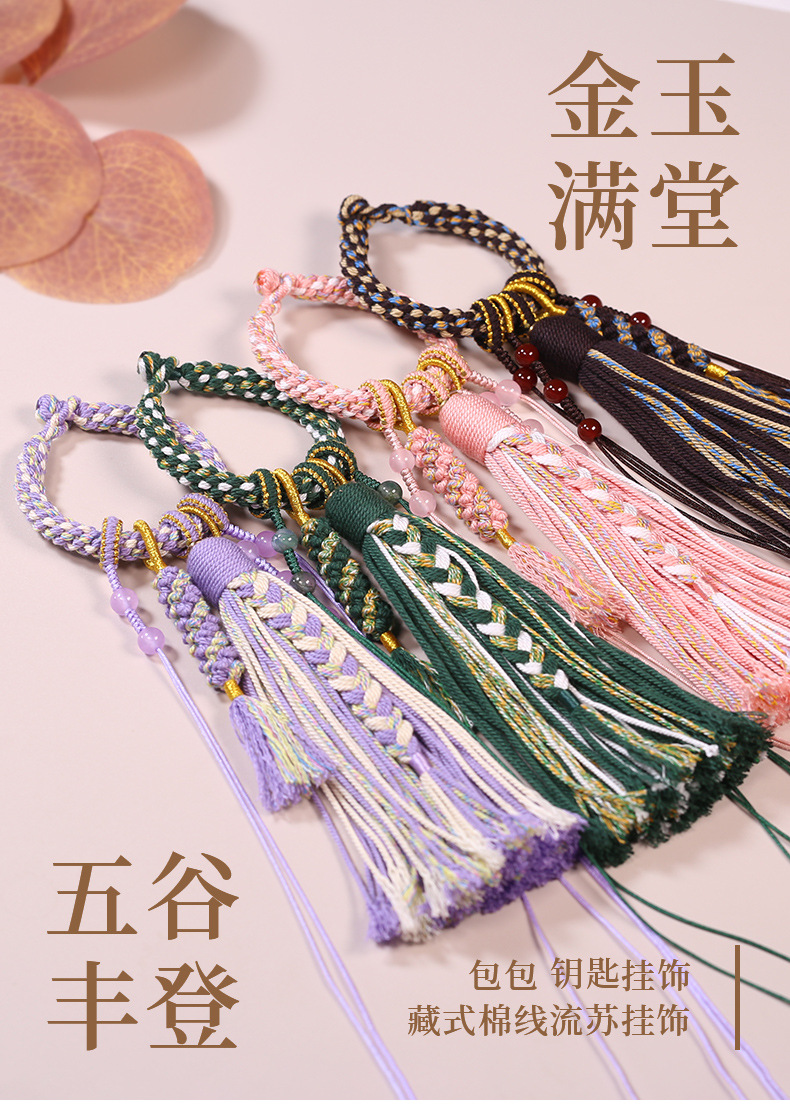 纯手工编织diy包包挂件配件棉线玉米结唐卡流苏绳包挂半成品挂饰