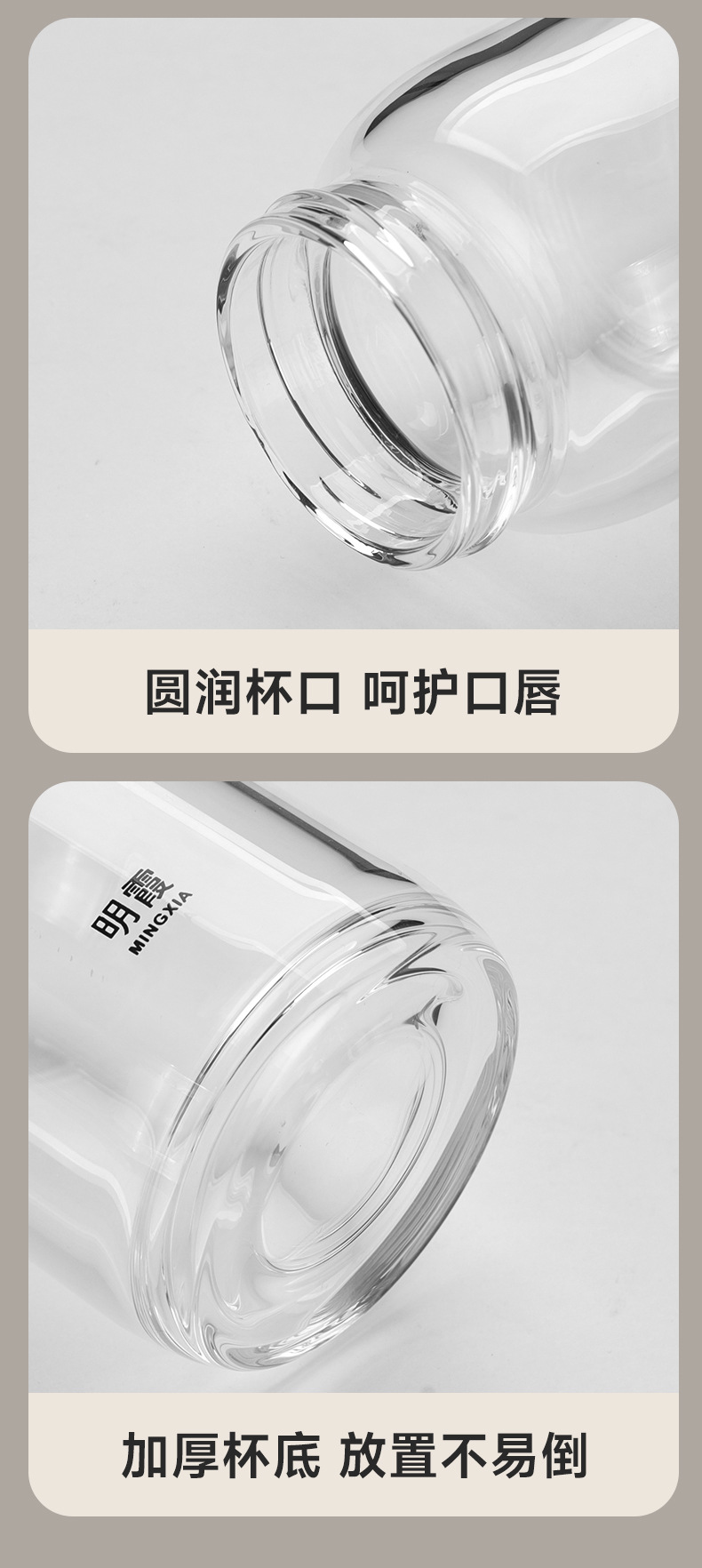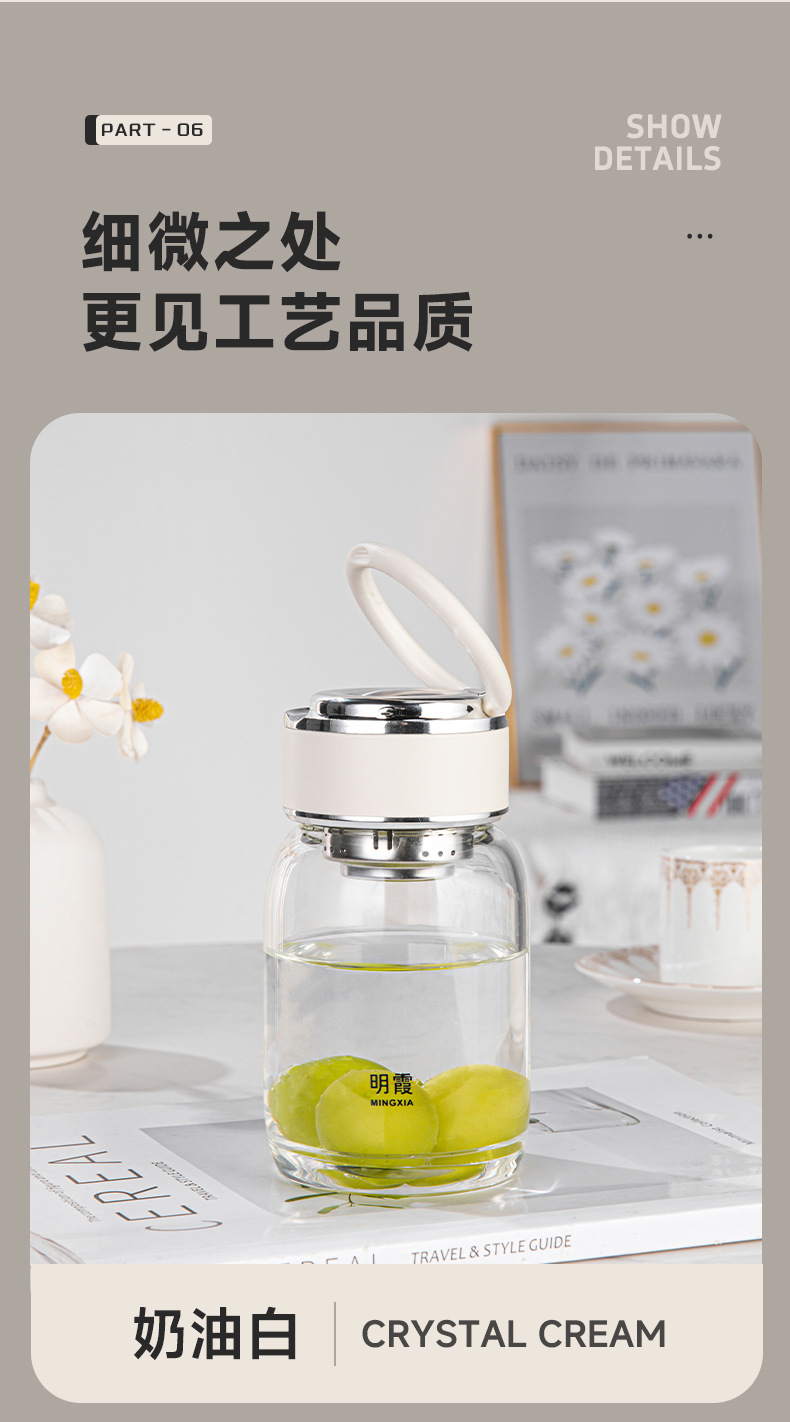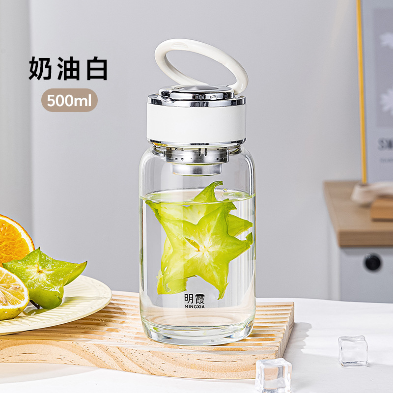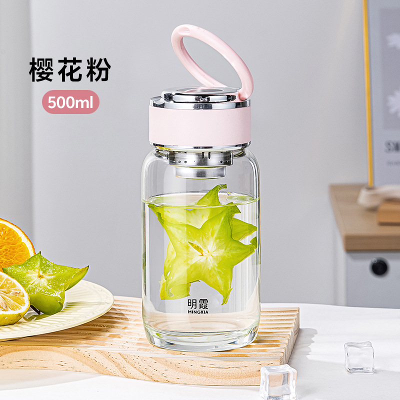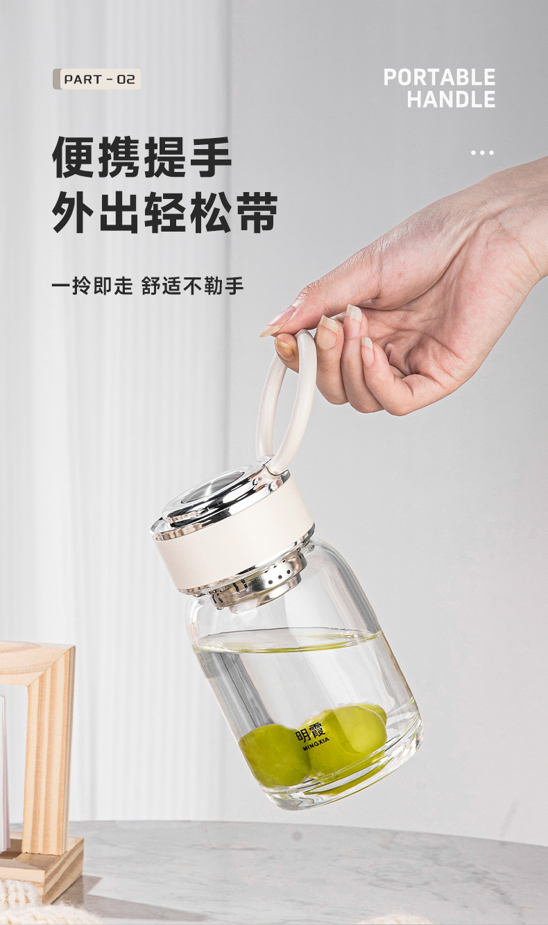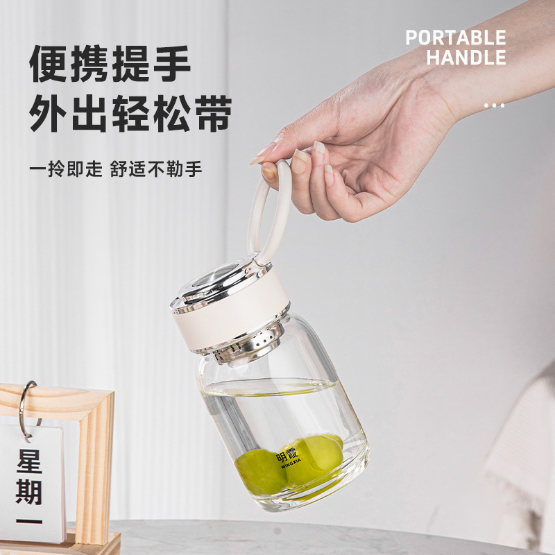明霞单层高硼硅INS风玻璃杯迷你泡茶杯家用带提环水杯子批发定制