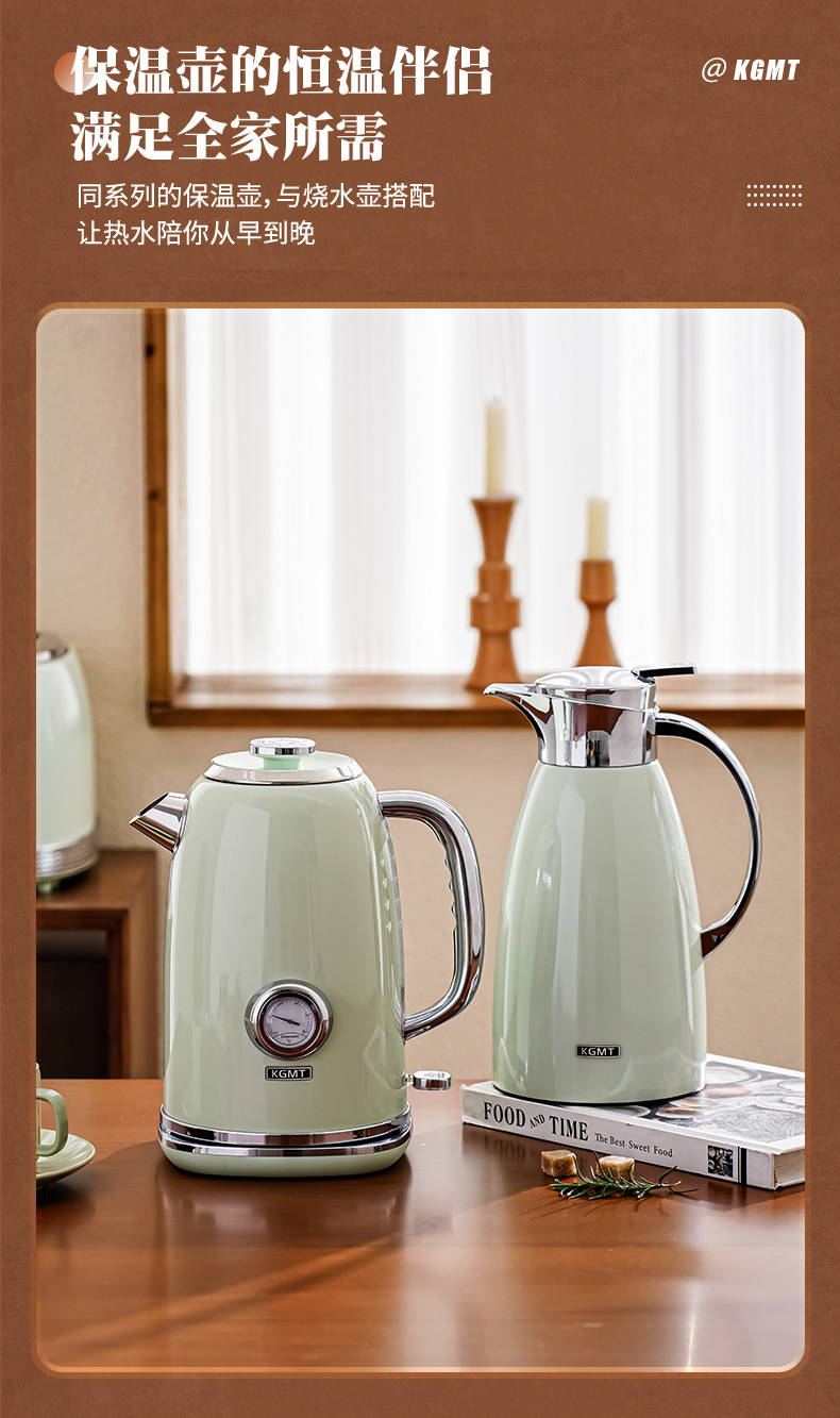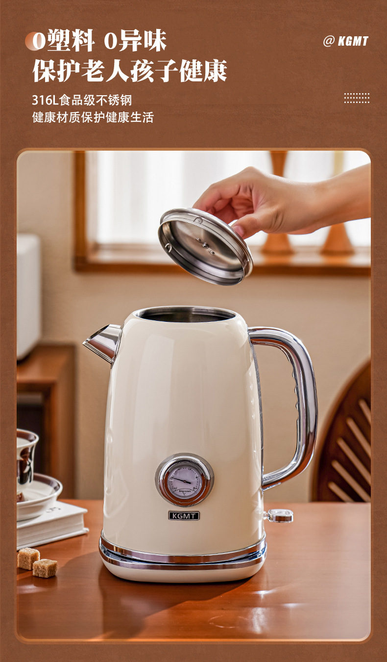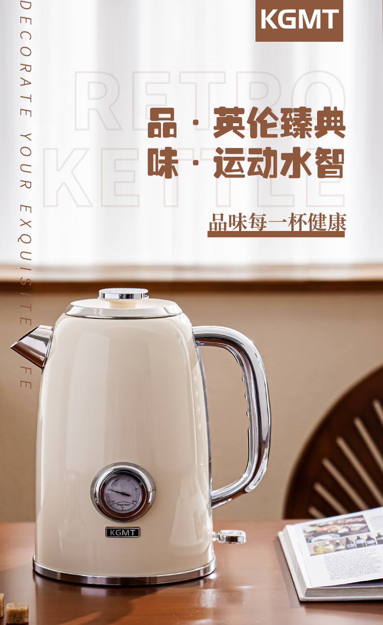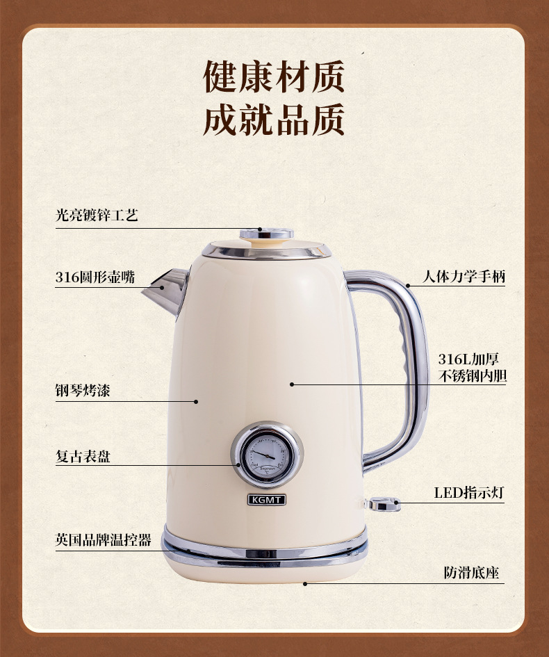 英国KGMT电热水壶复古家用316不锈钢内胆1.8升烧水壶开水壶电水壶