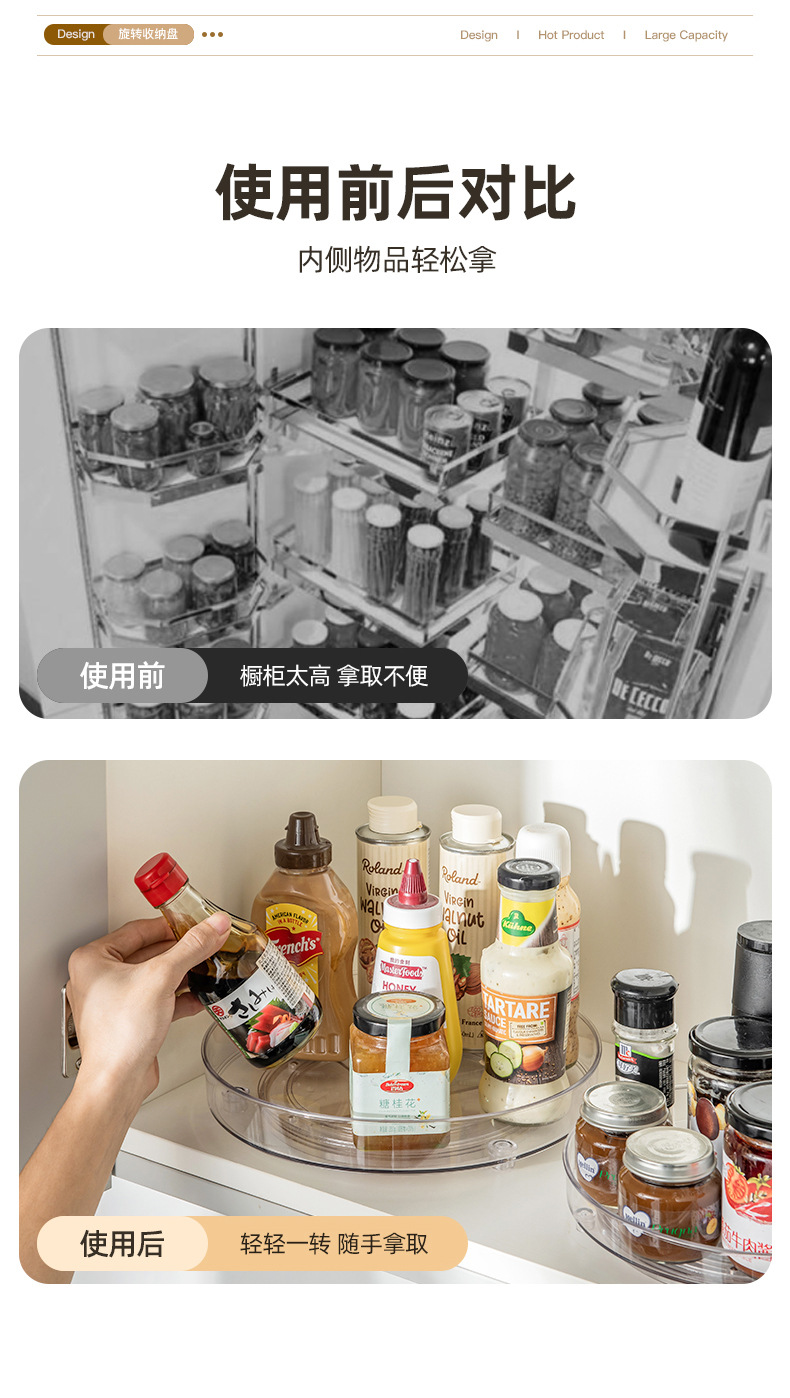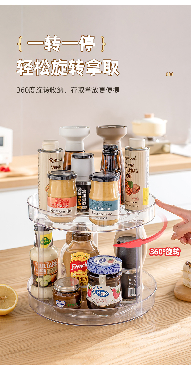 透明旋转调料置物架PET厨房调料收纳架多功能旋转盘收纳置物架