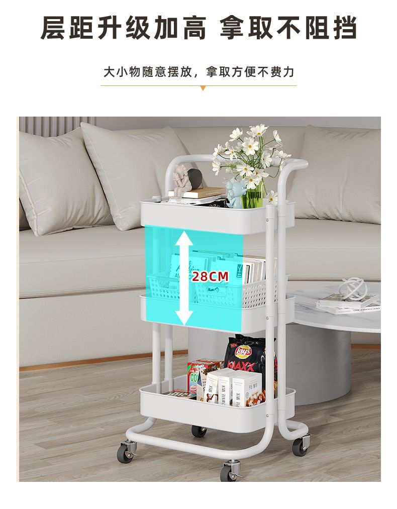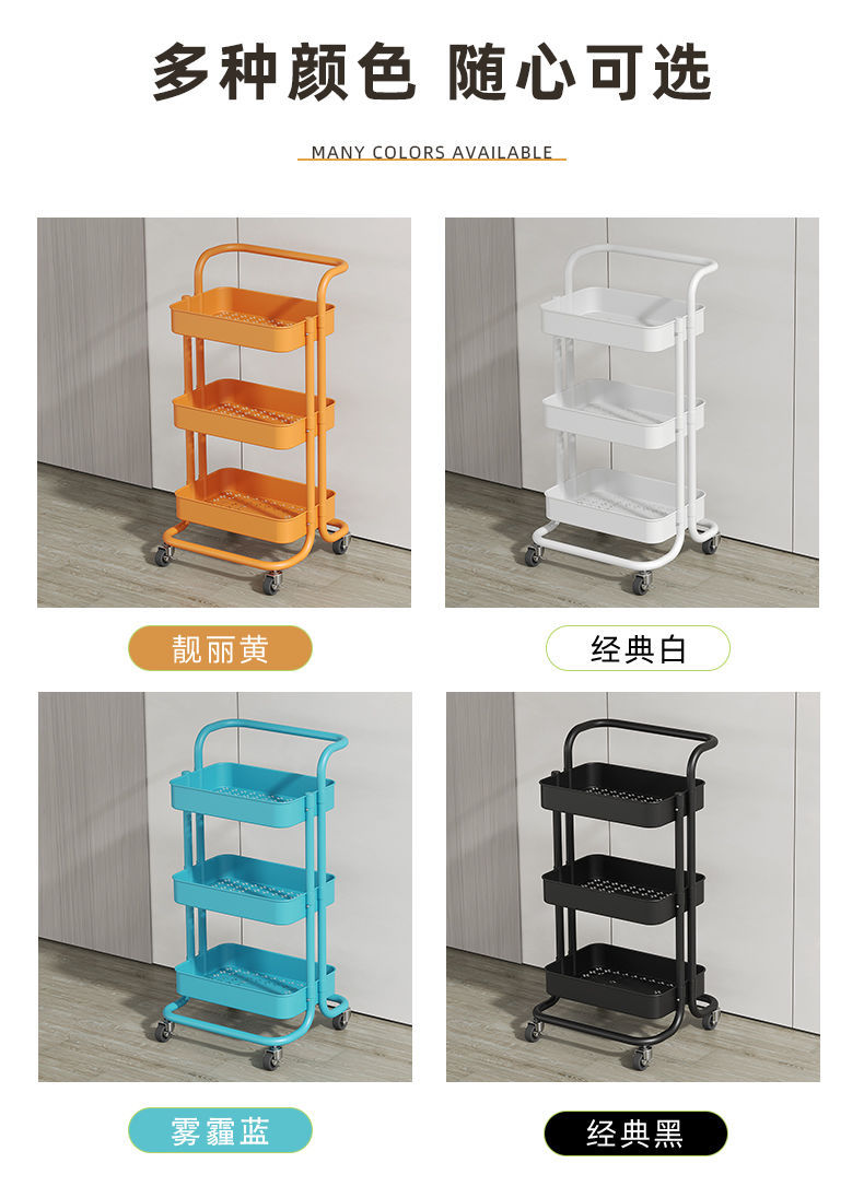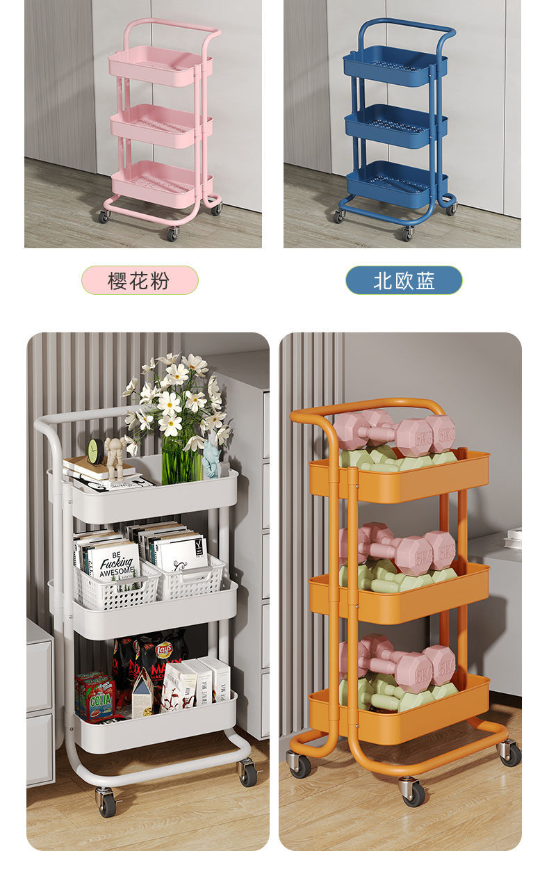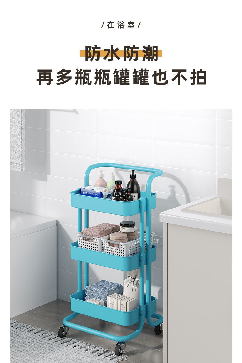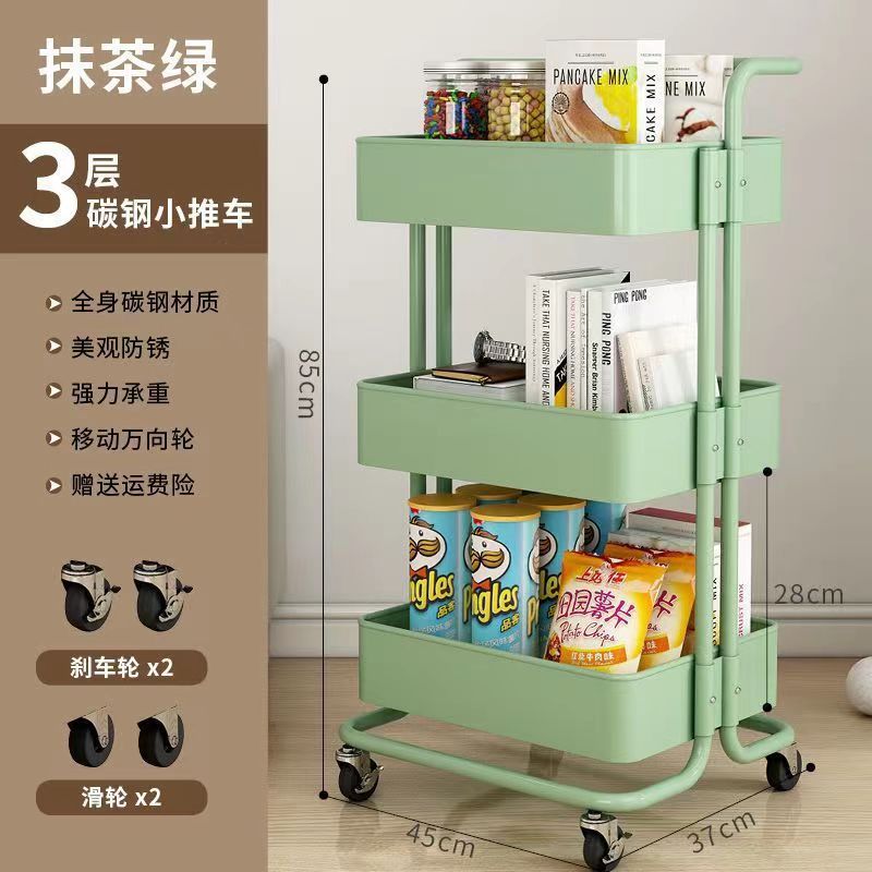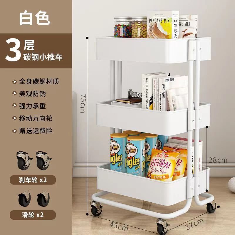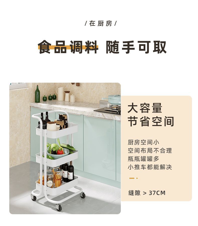 拉斯克手推车置物架客厅零食收纳架厨房储物浴室多层小推车全碳钢