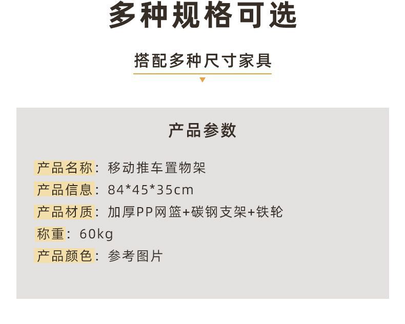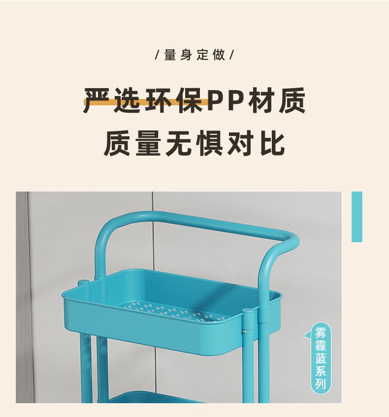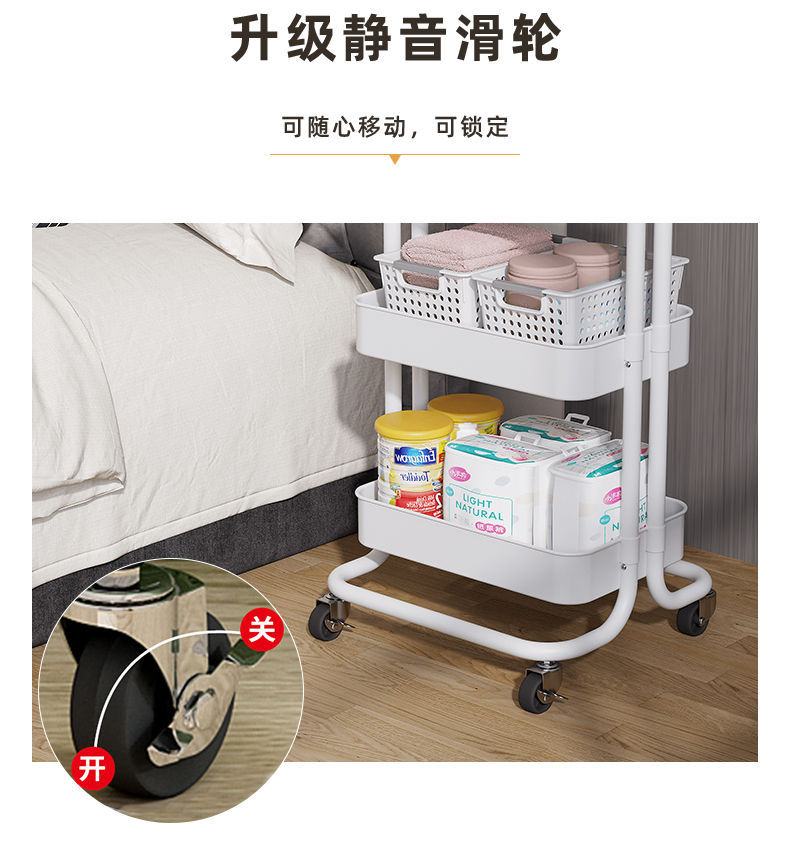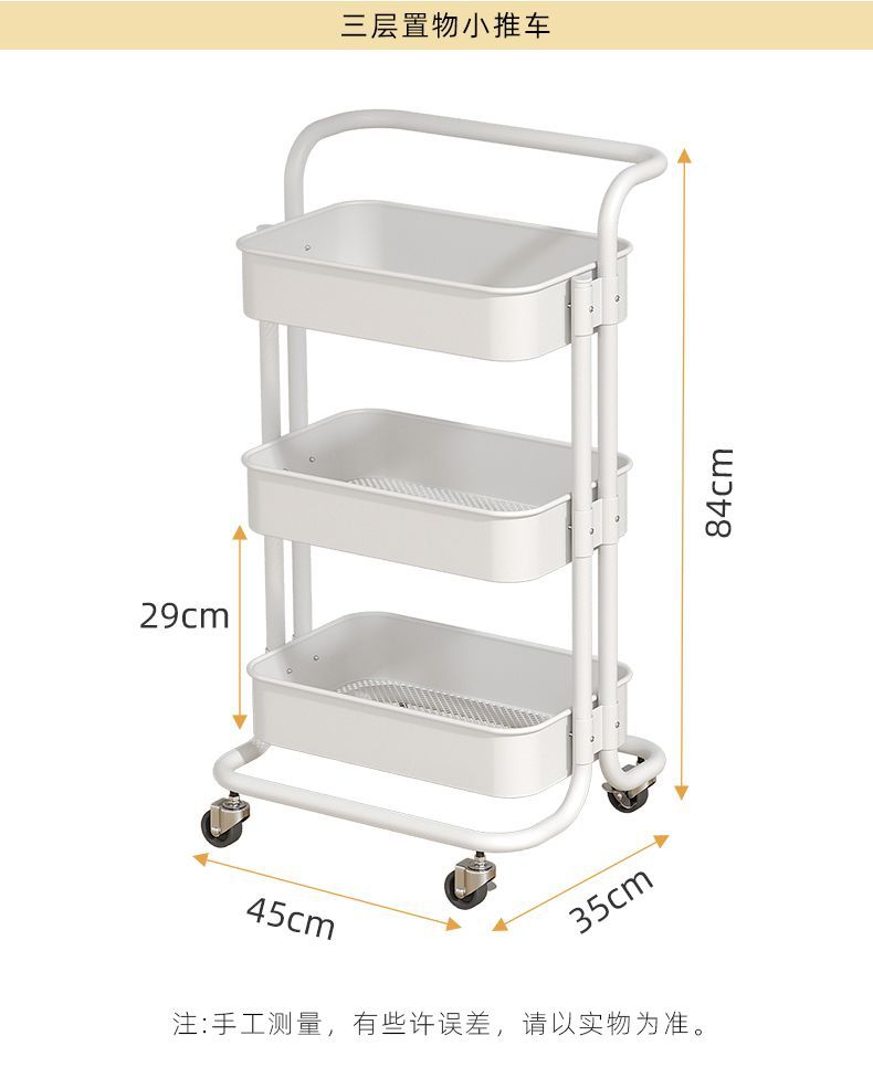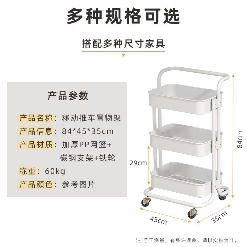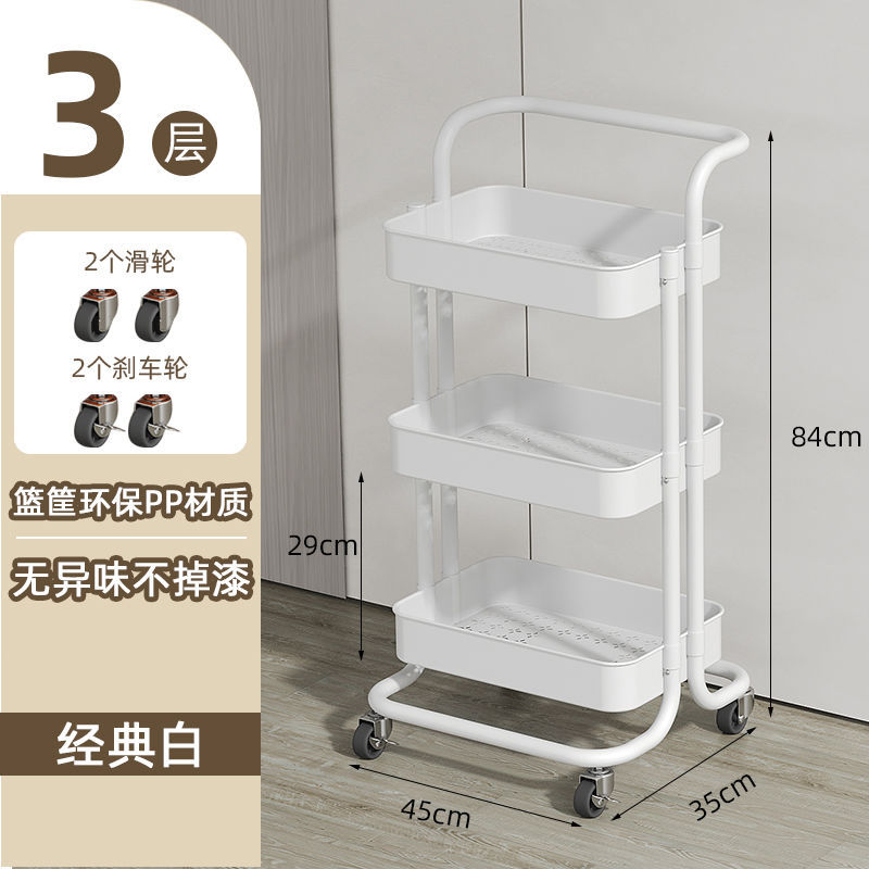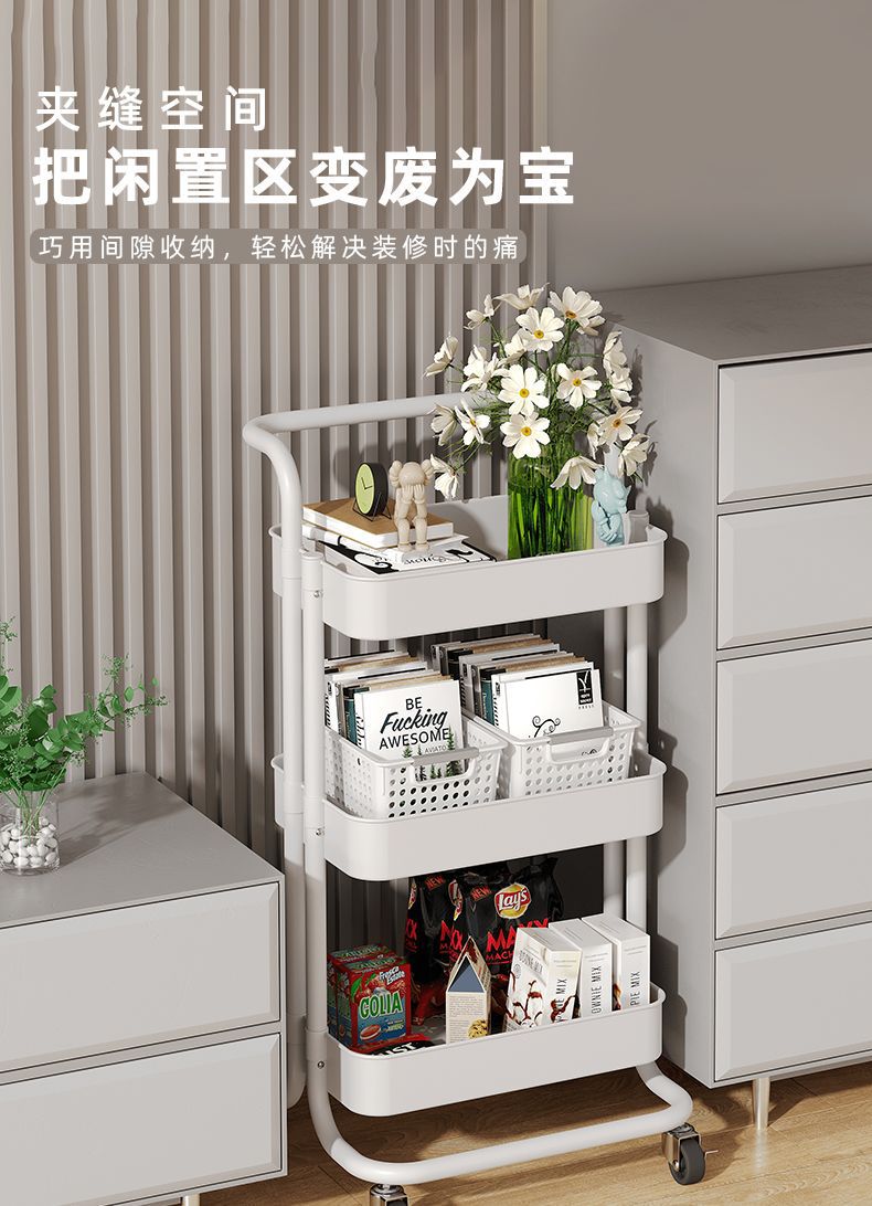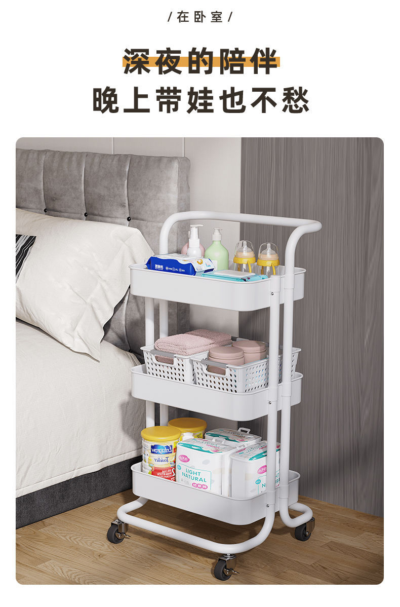 拉斯克手推车置物架客厅零食收纳架厨房储物浴室多层小推车全碳钢