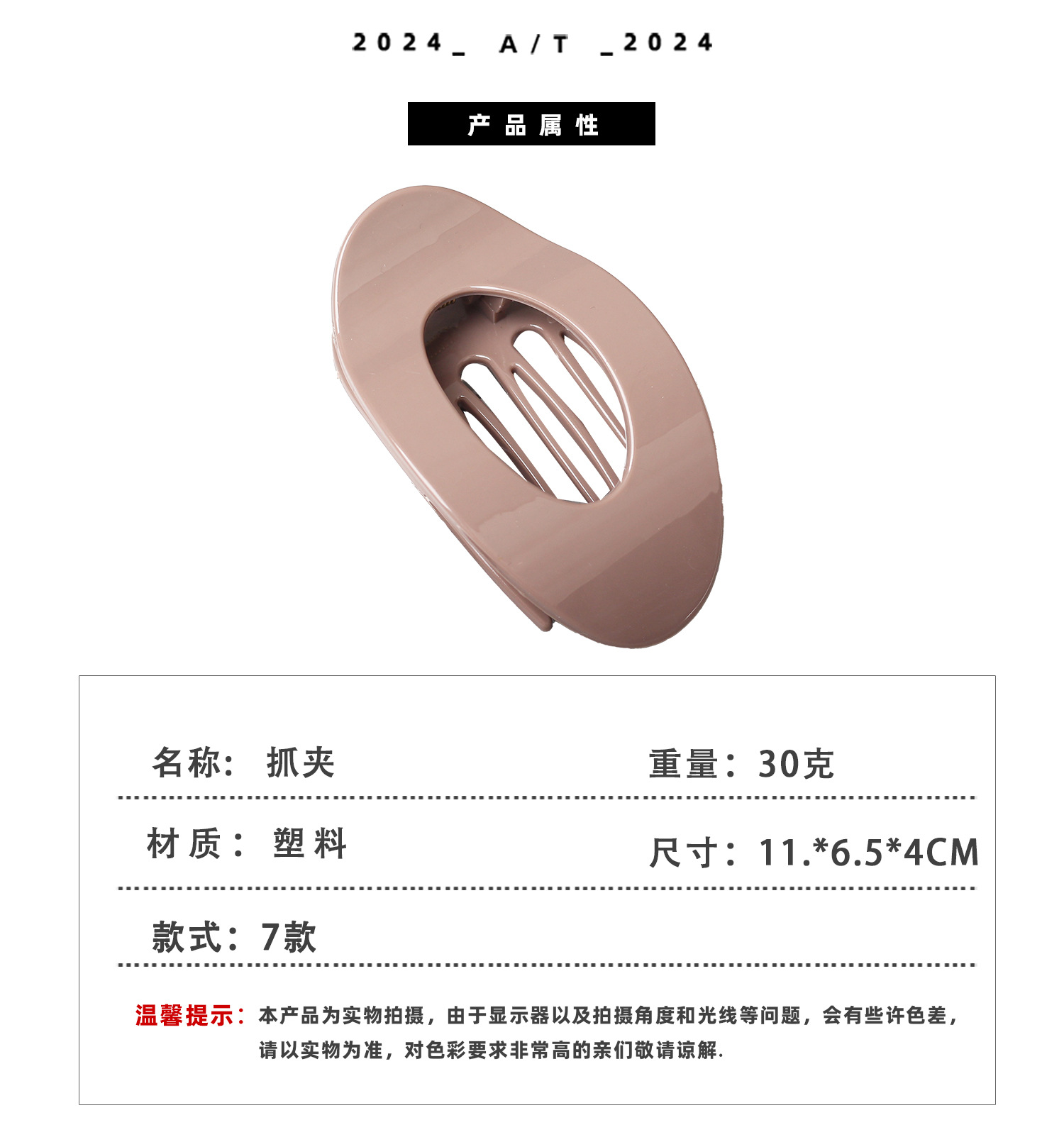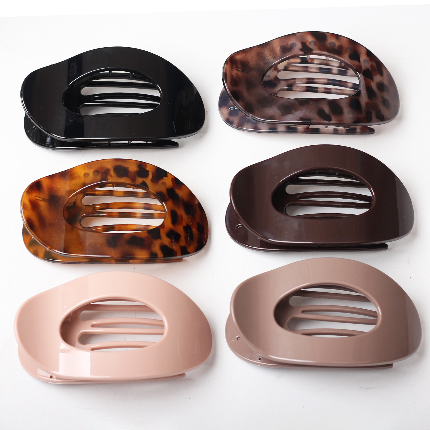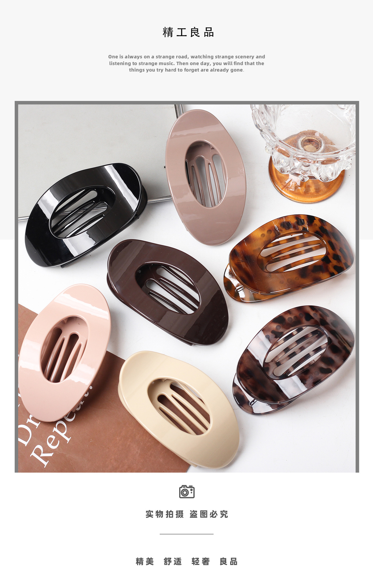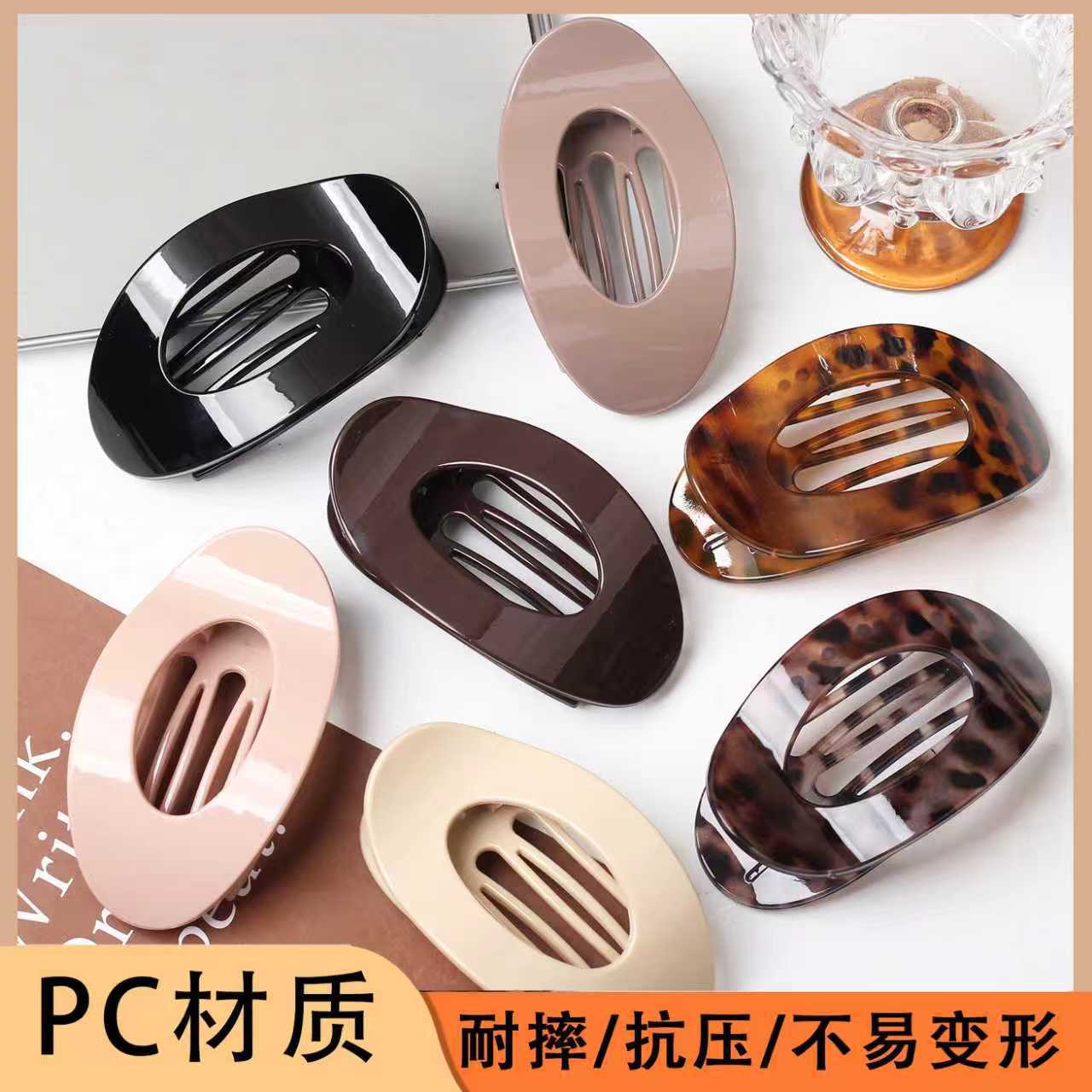 PC跨境新款大号扁平椭圆发夹女气质抓夹弧形设计强抓力鲨鱼夹