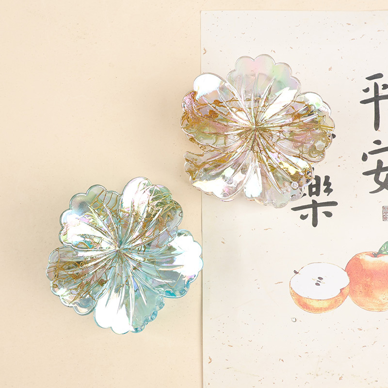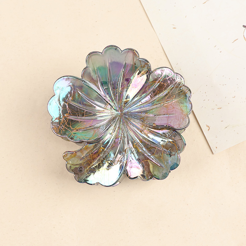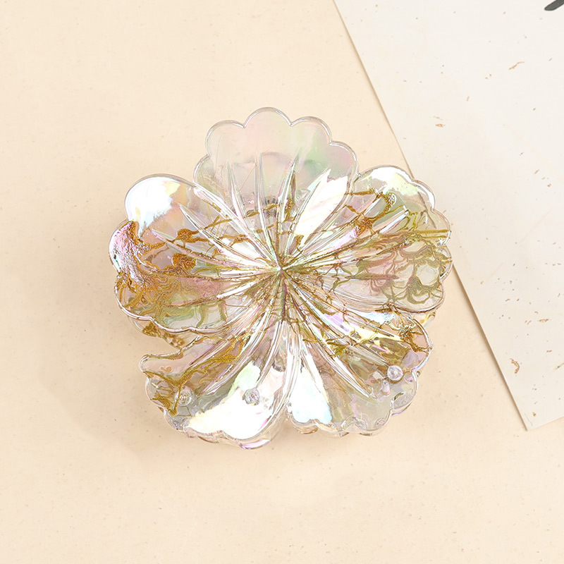跨境热销渐变花朵抓夹后脑勺甜美时尚百搭发饰透明卷心花鲨鱼夹