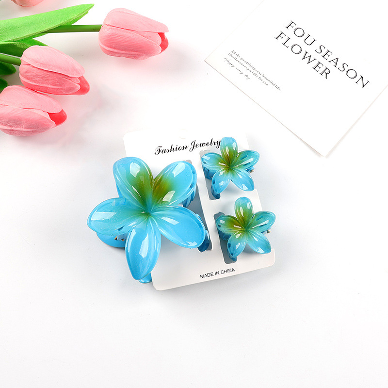 新款亚马逊鸡蛋花朵发夹三件套紫荆花后脑勺抓夹气质鲨鱼夹发饰